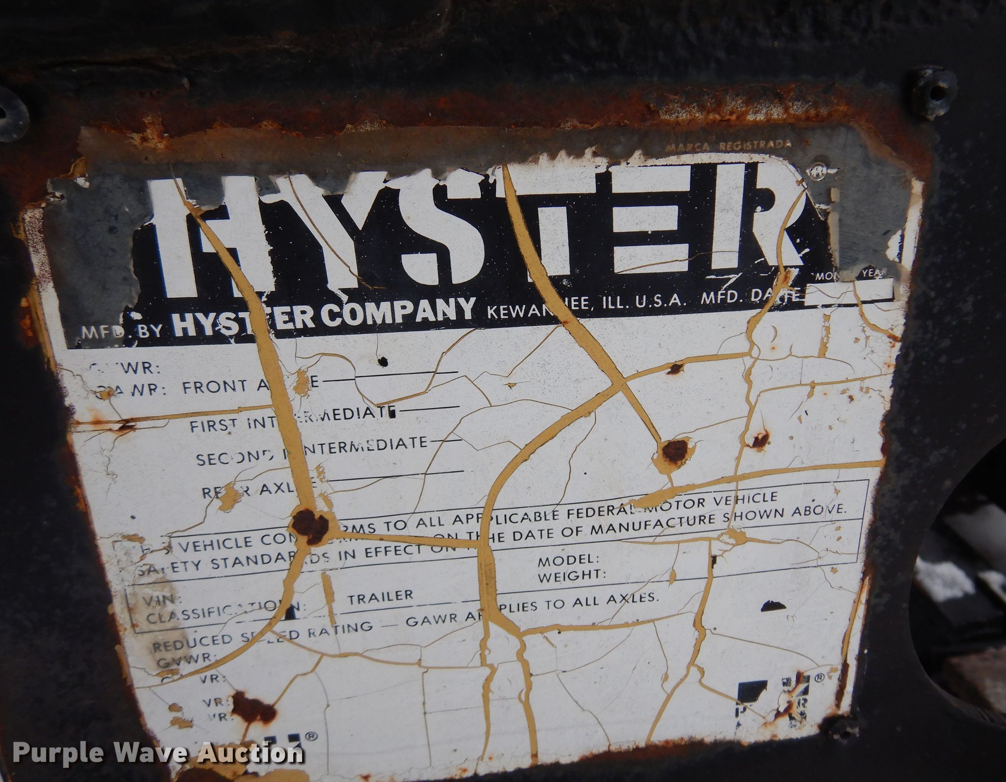 Purple Wave is selling a used Equip. Trailer in Kansas. This item is a 1985 Hyster lowboy equipment trailer with the following: VIN: 1HKX1GJA6FC023003