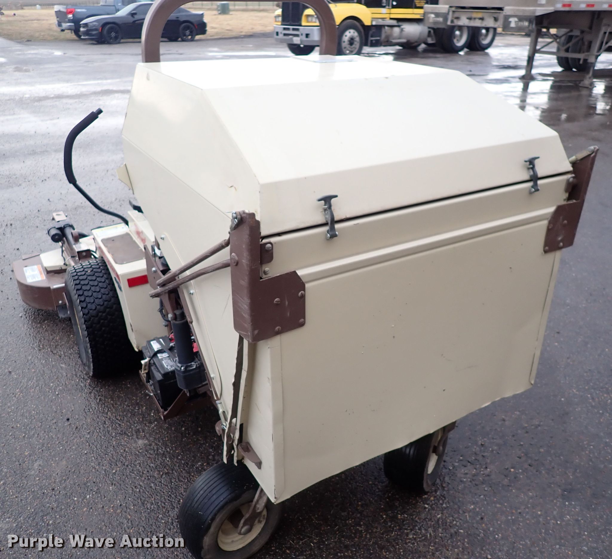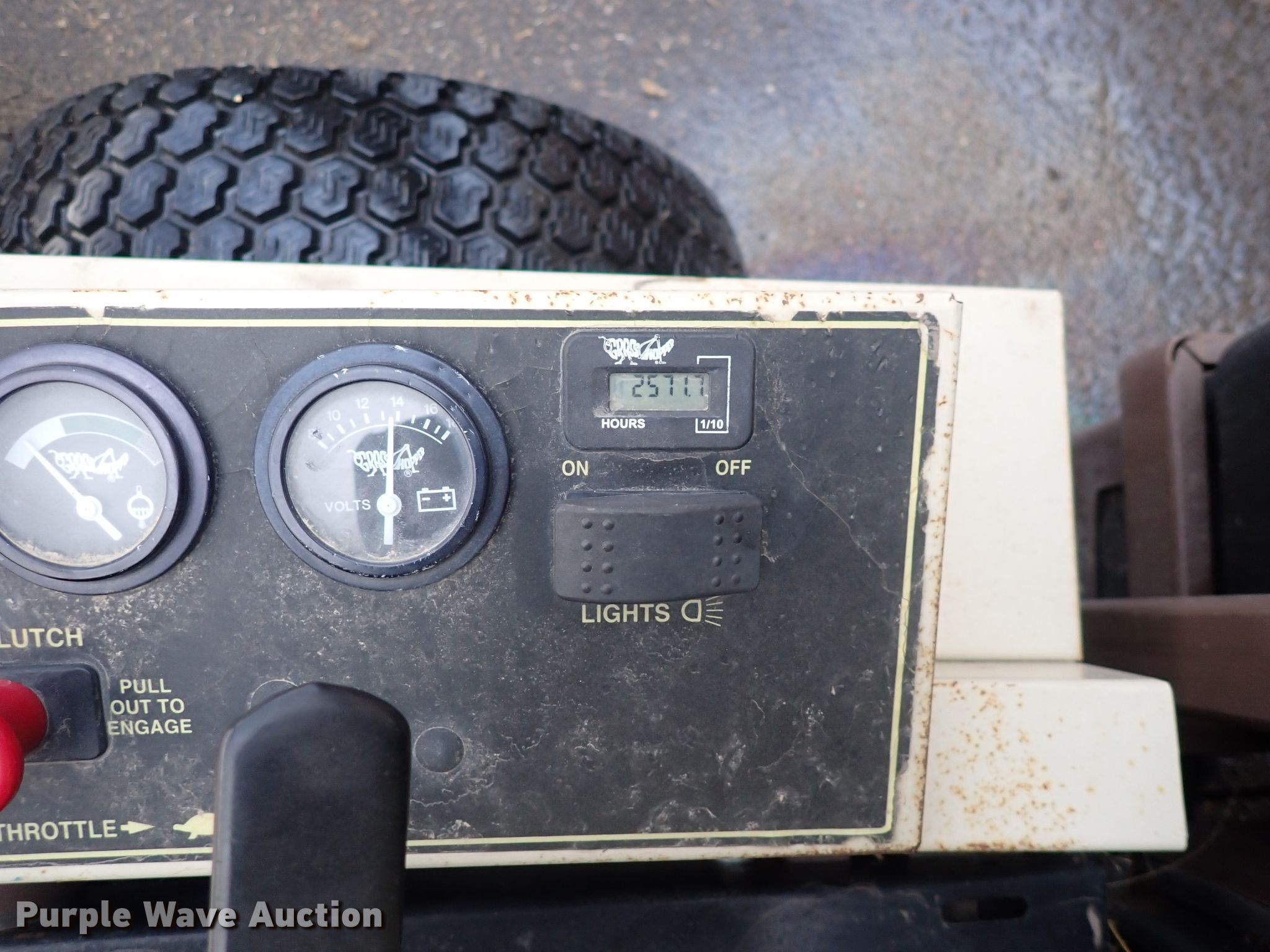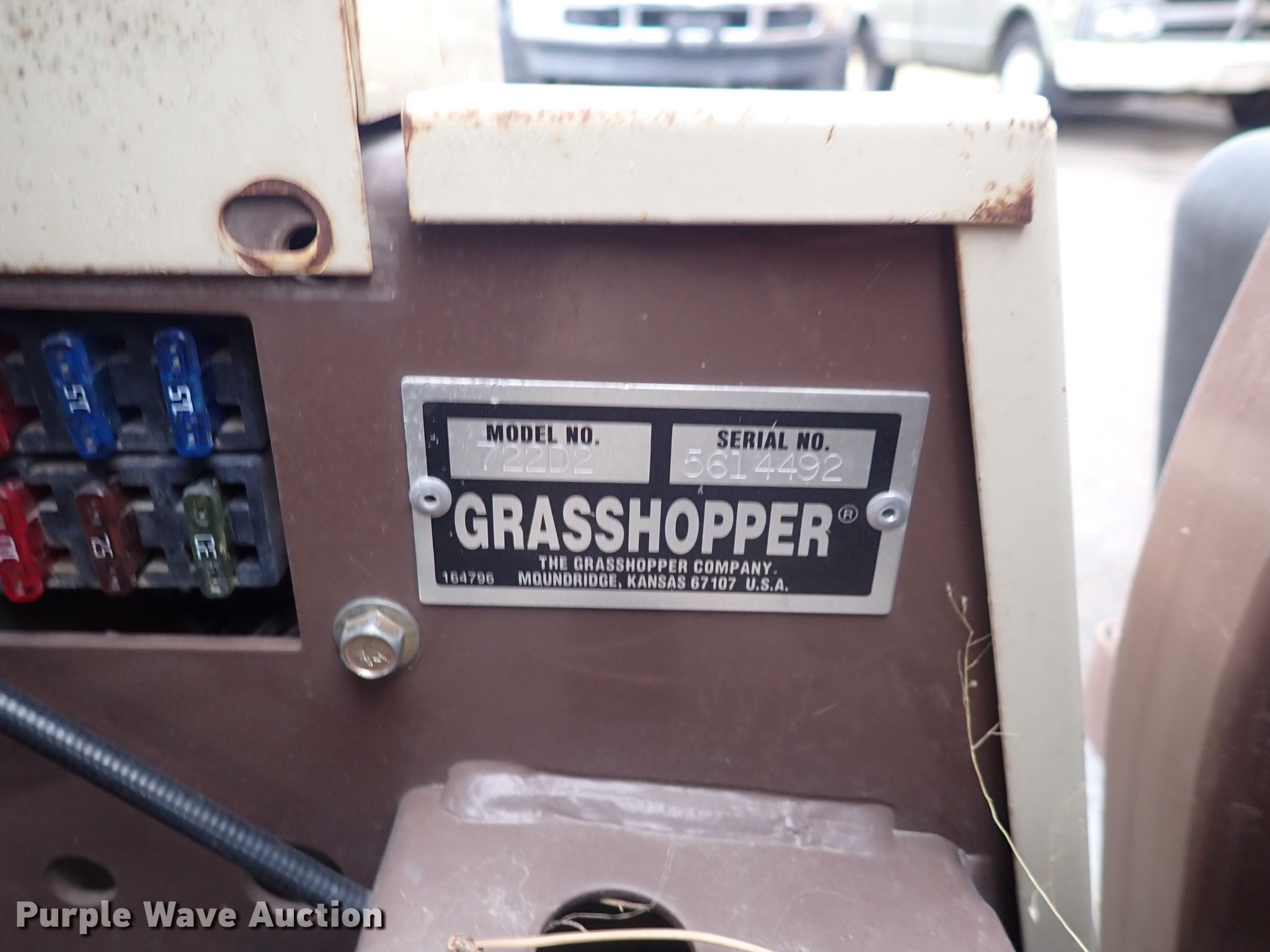 Purple Wave is selling a used Commercial Turf Mower in Kansas. This item is a Grasshopper 722D ZTR lawn mower with the following: Hours: 2,571 on meter, Cutting width: 61", Serial: 5614492