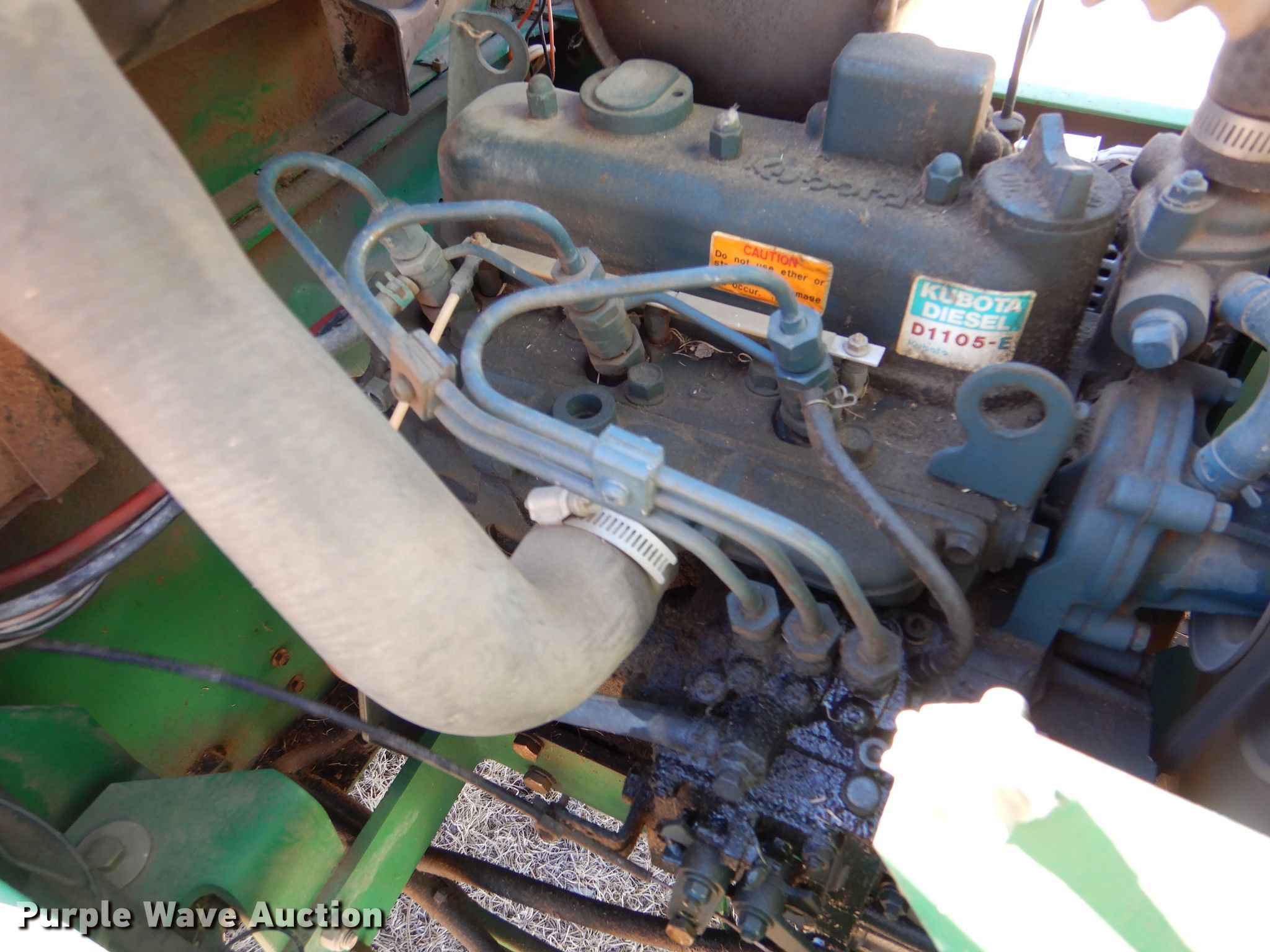 Ransomes Frontline 728D lawn mower. Hours: 1,160 on meter, Cutting width: 72", Serial: 9467020522. Engine Kubota D1105-E, Cylinders: 3, Fuel type: Diesel. Transmission Hydrostatic. Operational Hydraulic front deck lift. Tires Front: 23x10.5-12, Rear: 16x6.50-8. Notes Possible gearbox issues, bolts sheared off, Hydraulic fluid leak, Unknown operating condition. Luray Golf Association. Luray, KS 67649