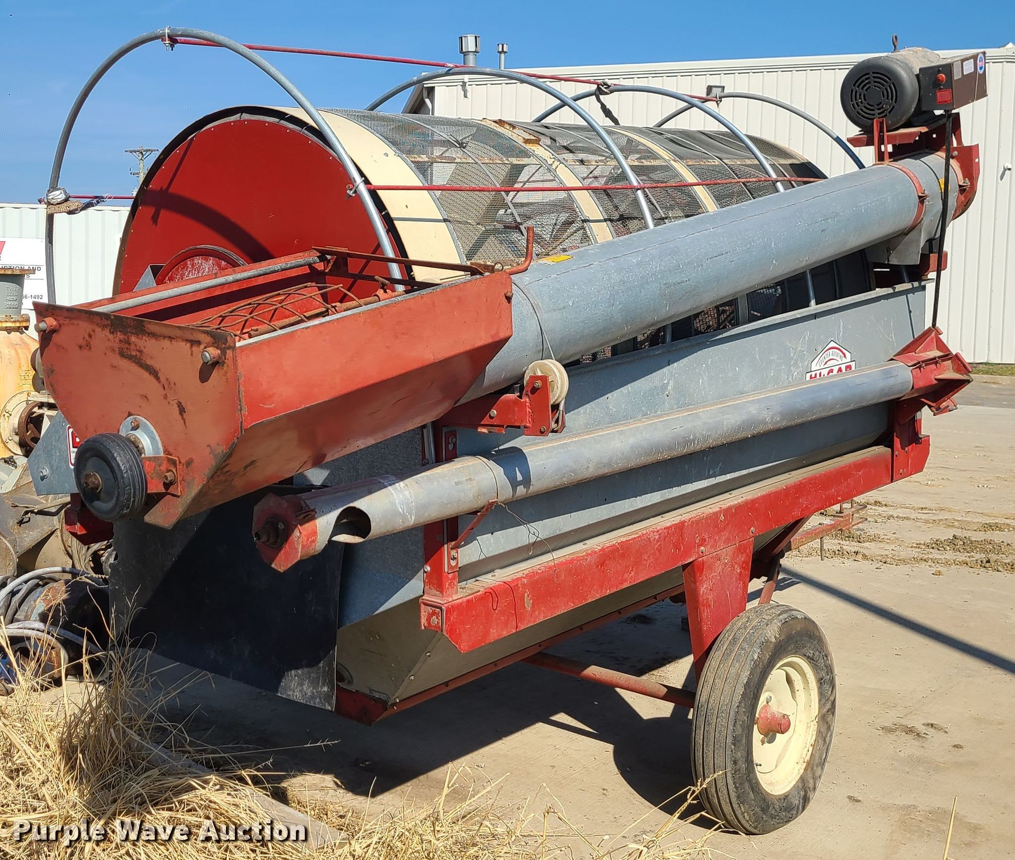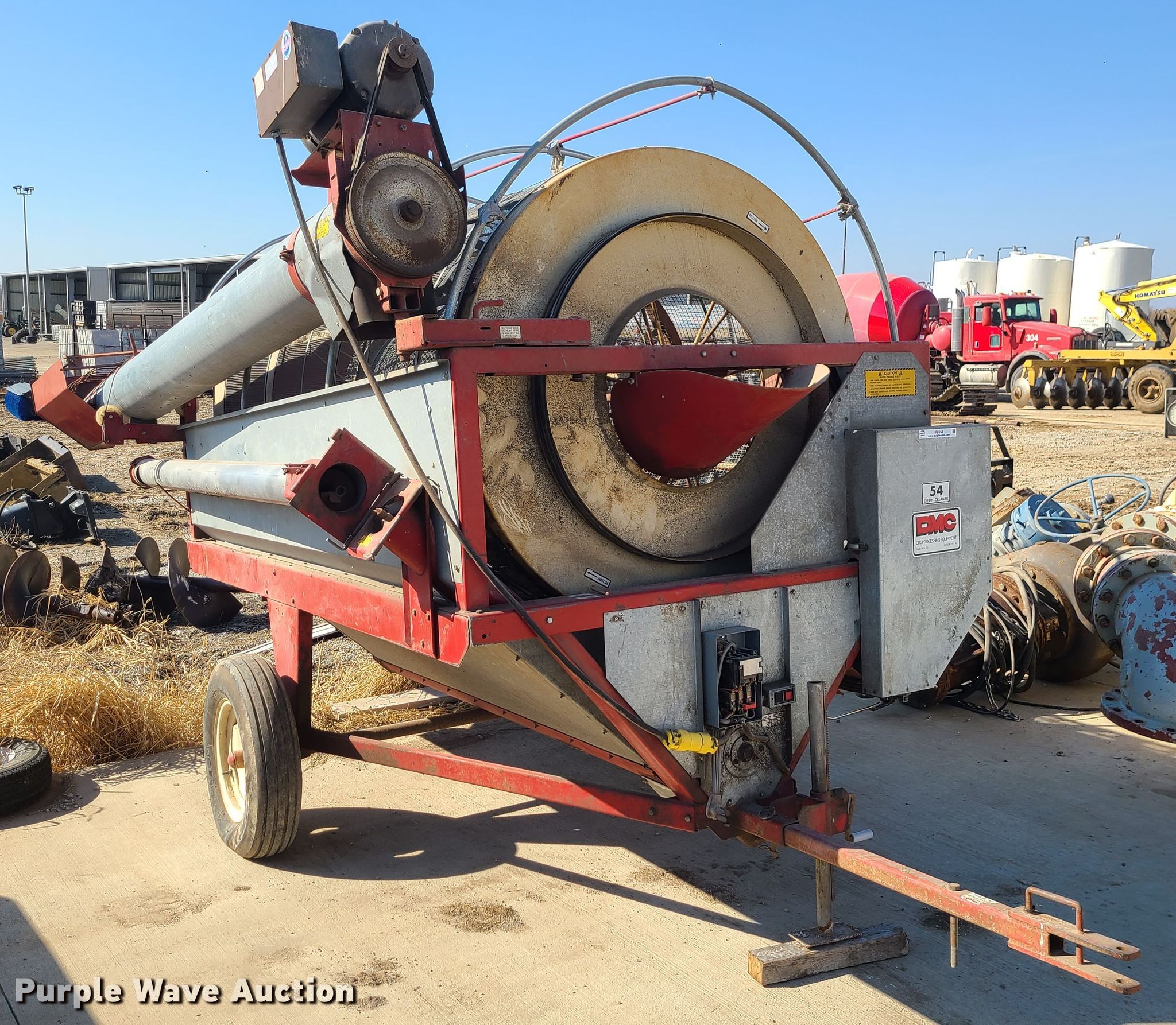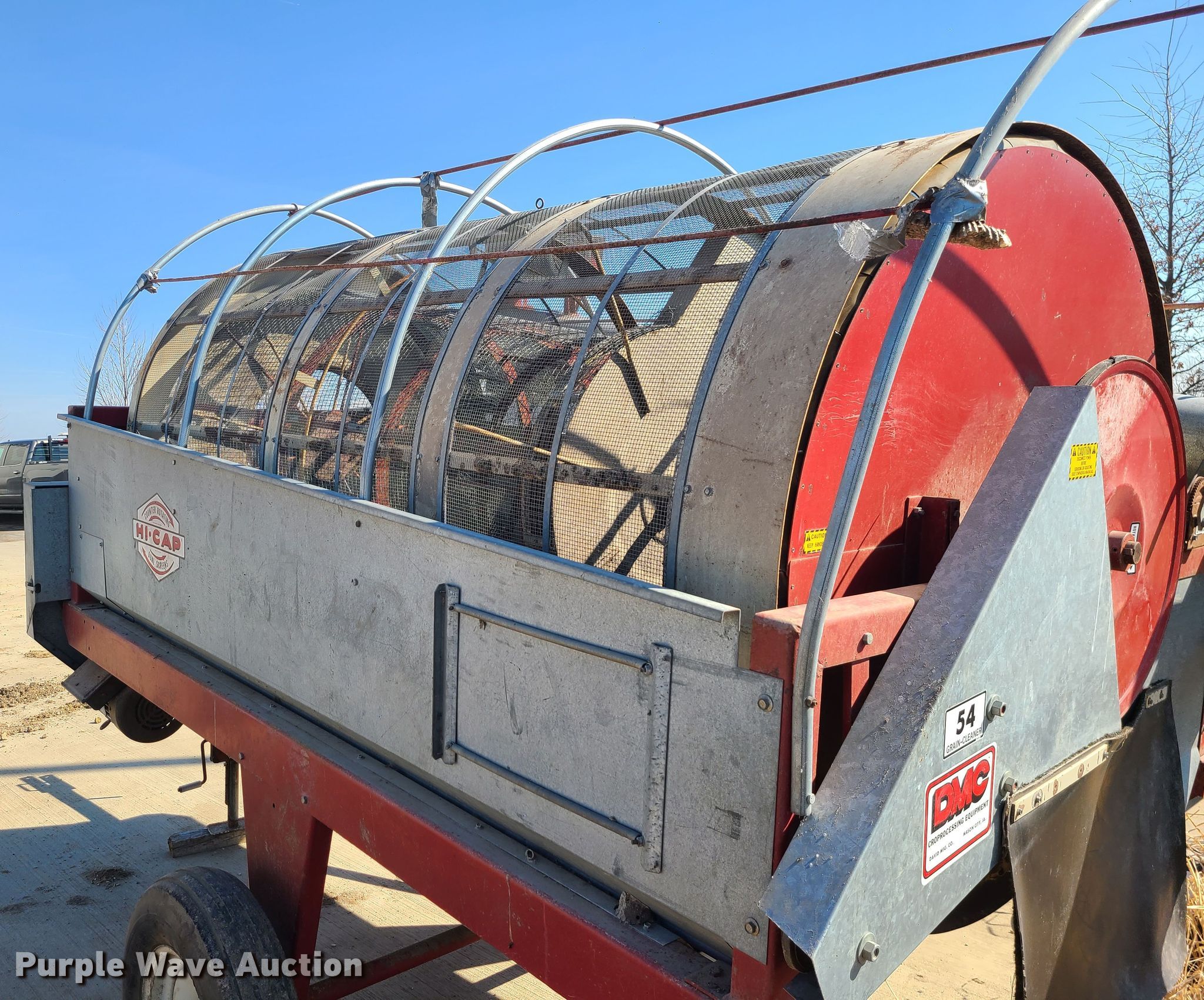 Purple Wave is selling a used Other Grain or Fertilizer Handling in Missouri. This item is a DMC 54 Hi-Cap grain cleaner with the following: Electric motor, Single phase, (2) discharge augers, 10'L x 5" diameter, 10'L x 10" diameter, 6.7-15 tires, Serial: 54-83-0142