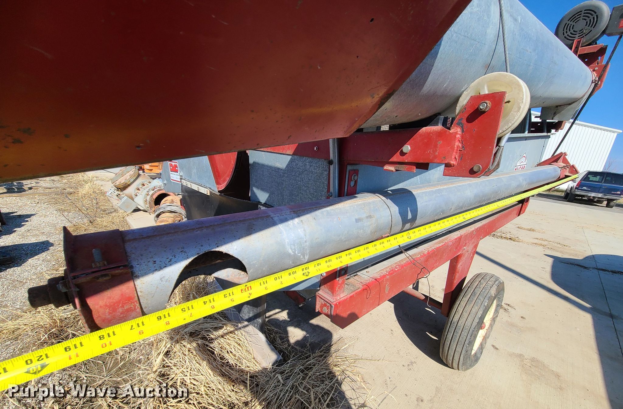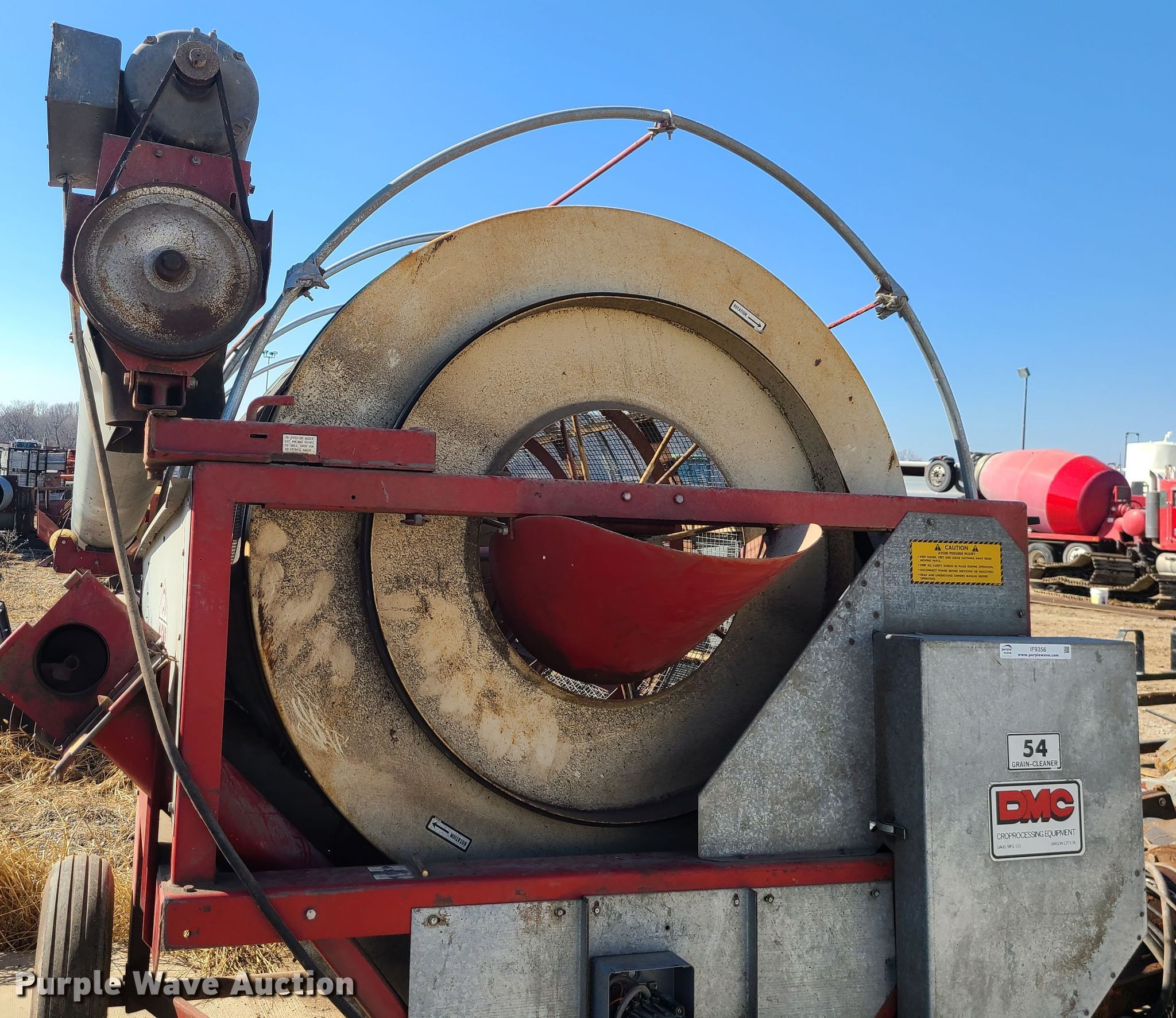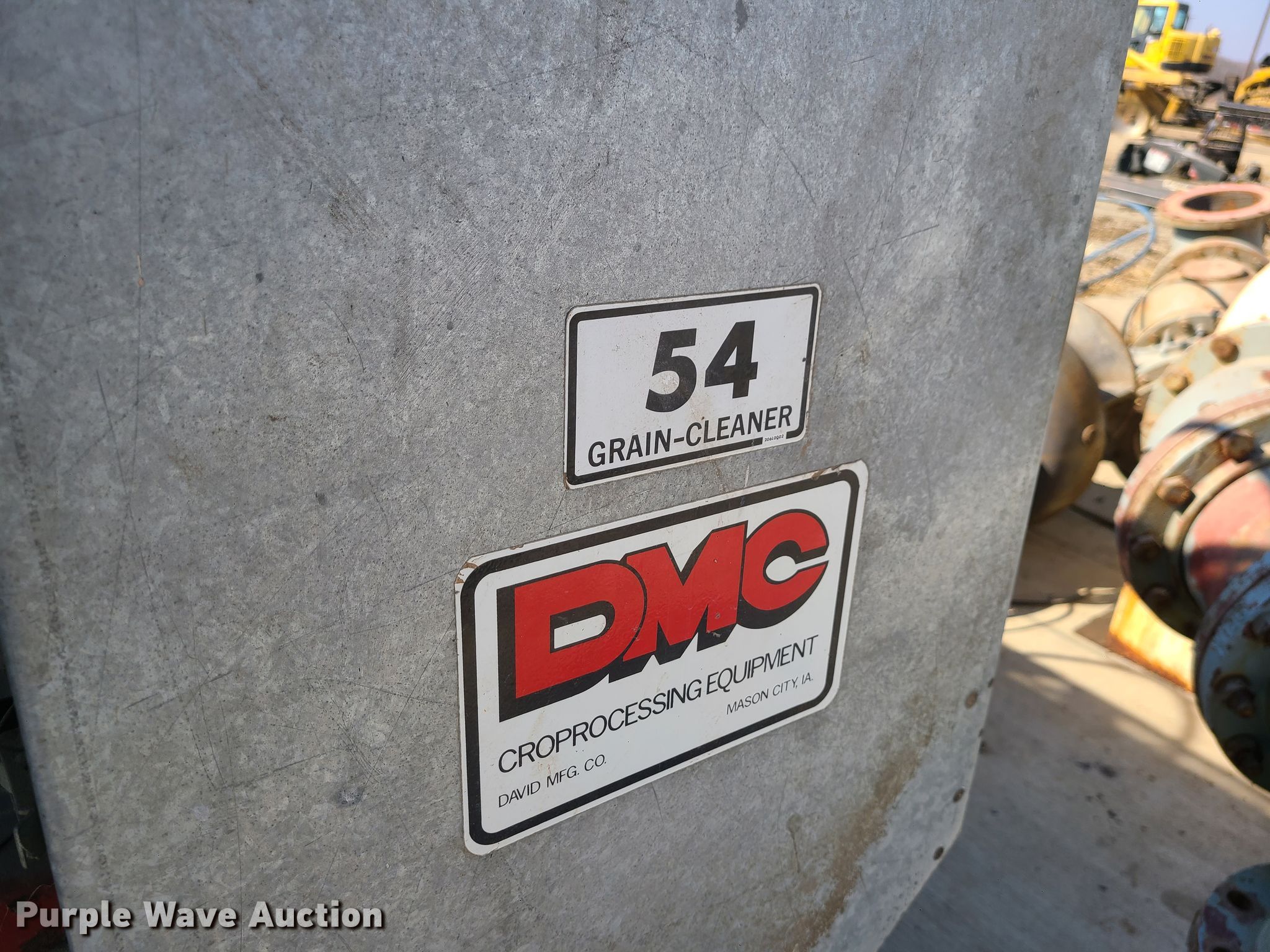 Purple Wave is selling a used Other Grain or Fertilizer Handling in Missouri. This item is a DMC 54 Hi-Cap grain cleaner with the following: Electric motor, Single phase, (2) discharge augers, 10'L x 5" diameter, 10'L x 10" diameter, 6.7-15 tires, Serial: 54-83-0142
