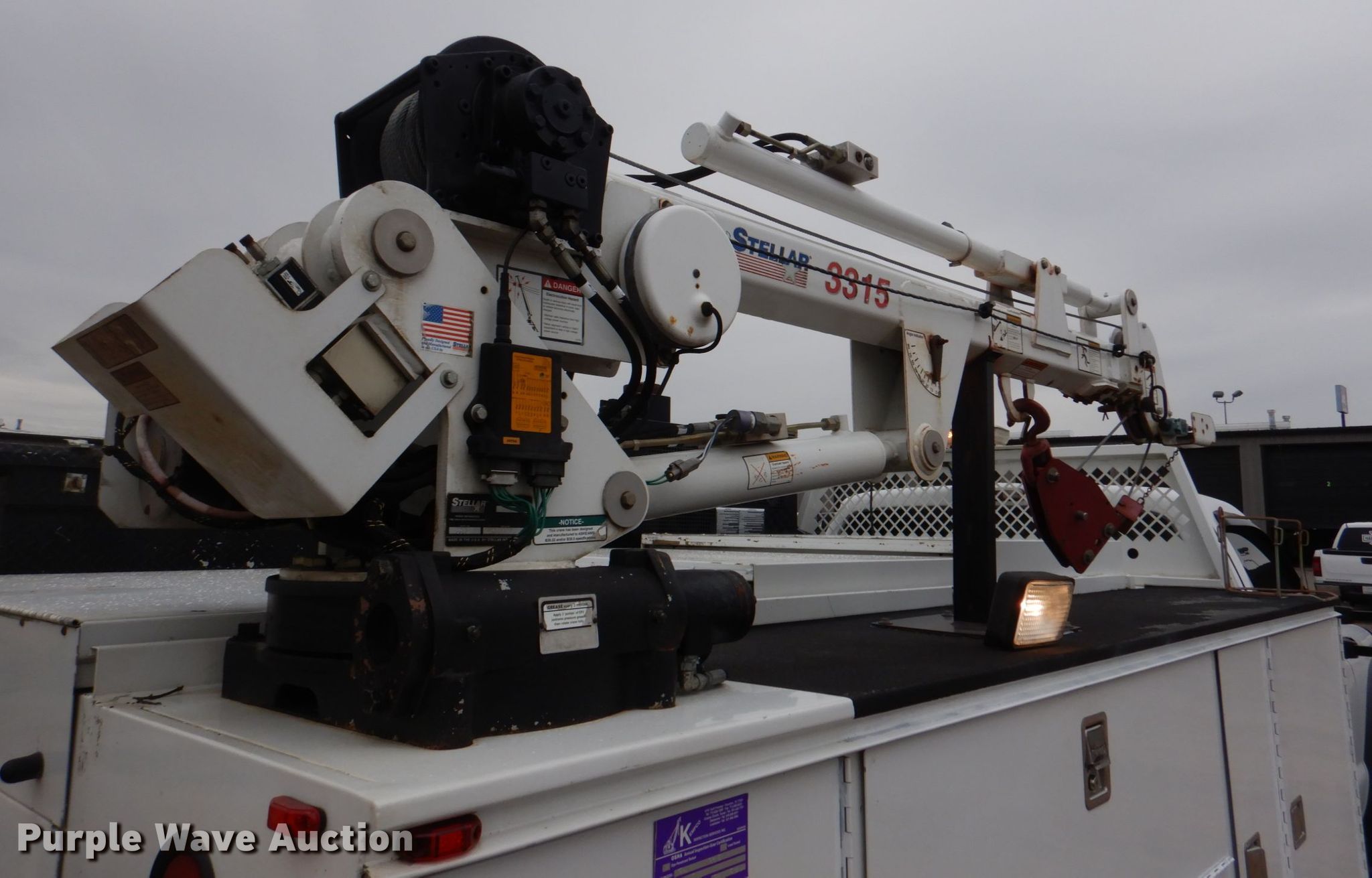 2014 Ford F550 Super Duty utility / service truck. Miles: 162,462 on odometer, VIN: 1FDUF5HY3EEB69491. Engine Displacement: 6.8L, Cylinders: 10, Fuel type: Gas. Transmission Automatic. Chassis Four wheel drive, Axles: Single, Suspension: Spring, Brakes: Hydraulic. Interior AC, Heat, Heated mirrors, Power windows, Power locks, Cruise control, Auxiliary controls, Brake controller. Operational Bed 13' L x 8' W, Welder/generator Mi-T-M, Fuel type: Gas, 120V outlets: 4, Air compressor, Crane Stellar 3315, Boom length: 15', Maximum lift capacity: 11,500 lbs. Tires Size: 225/70R19.5. Notes Dash warning indicator: Check engine, Windshield chipped or cracked. Texas title. Title distribution may be delayed up to 30 days from verification of funds. Cavender Auto Sales & Leasing. 2005 W Main St. Durant, OK 74701