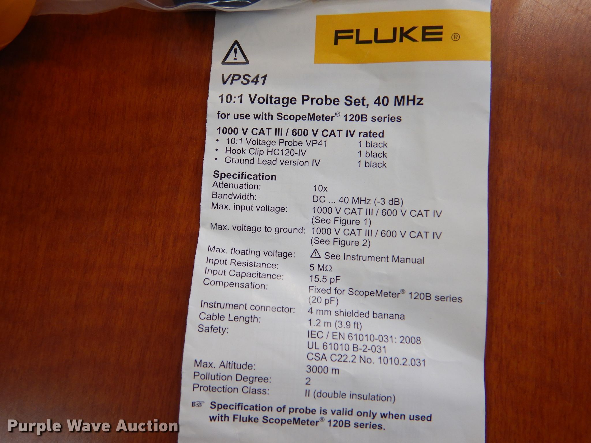 Purple Wave is selling a used Tools in Kansas. This item is a Fluke 125B scopemeter with the following: 40 MHz, Fluke i400s AC current clamp, Fluke VPS41 10:1 voltage probe set