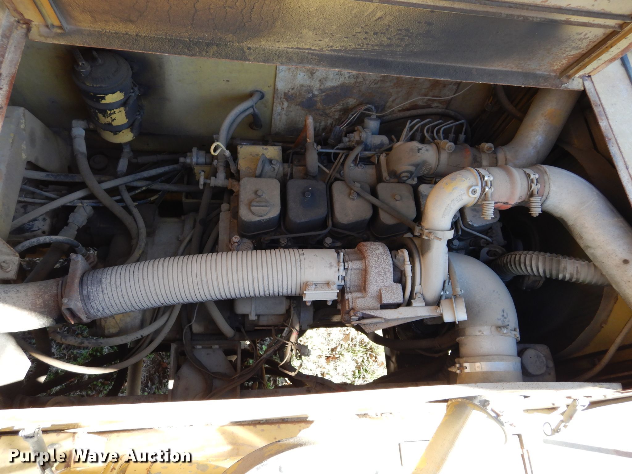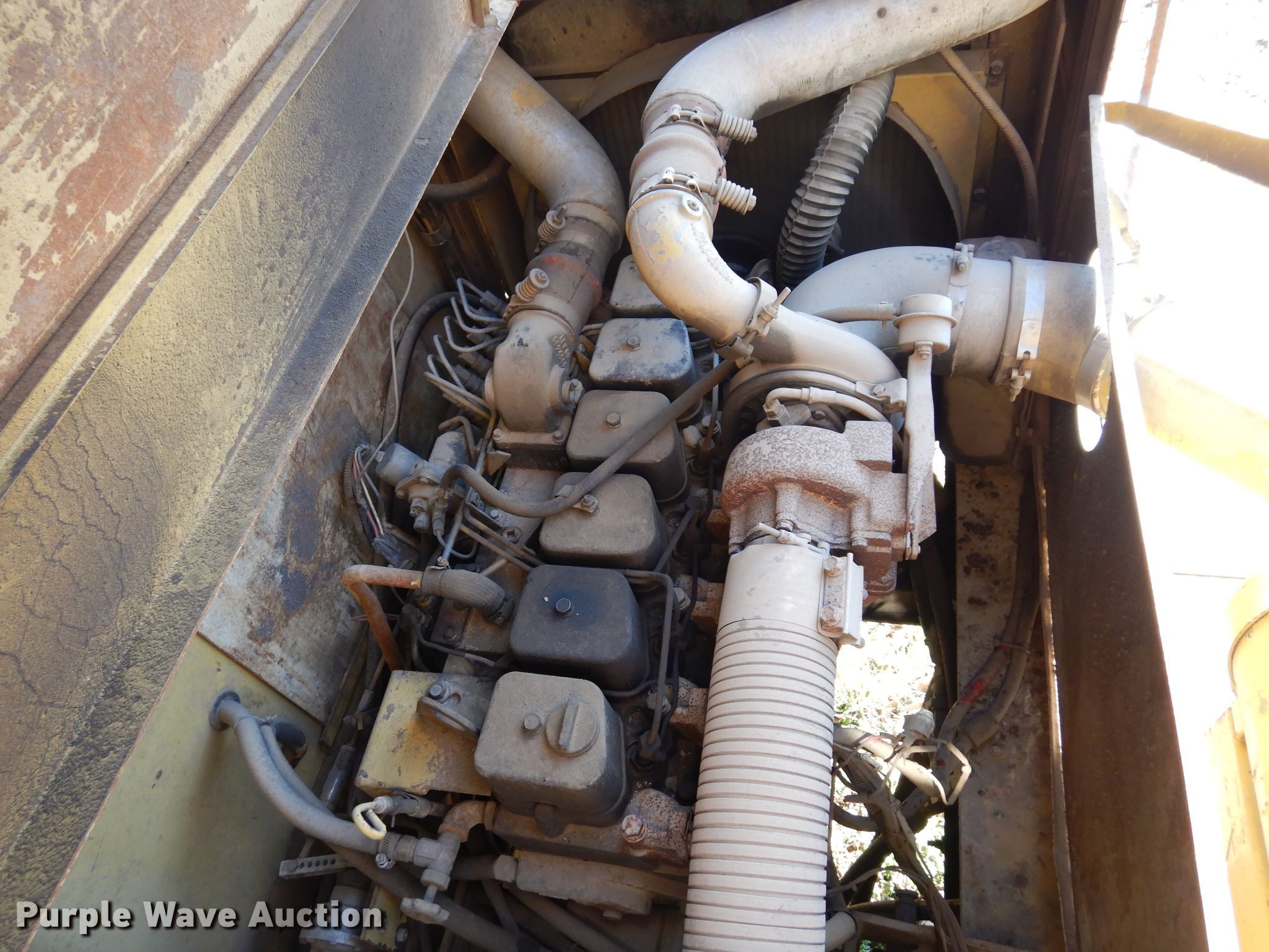 1993 Gradall G3WD wheeled excavator. Miles: 38,691 on odometer, Hours: 6,764 on meter, Serial: 0135313. Engine Cummins, Displacement: 5.8L, Cylinders: 6, Fuel type: Diesel. Transmission Powershift, 6F - 3R. Operators station Enclosed cab, Heat. Features Boom Standard, Stick Stick length: 12' 2", Bucket Width: 60", Cutting edge: Weld on. Tires Size: 385/65/R22.5, Size: 425/65R22.5, Size: 11.00-20. Notes Missing front drive shaft, Unit will not move, Non-operational unit. 811 E Pine. Edgewood, TX 75117