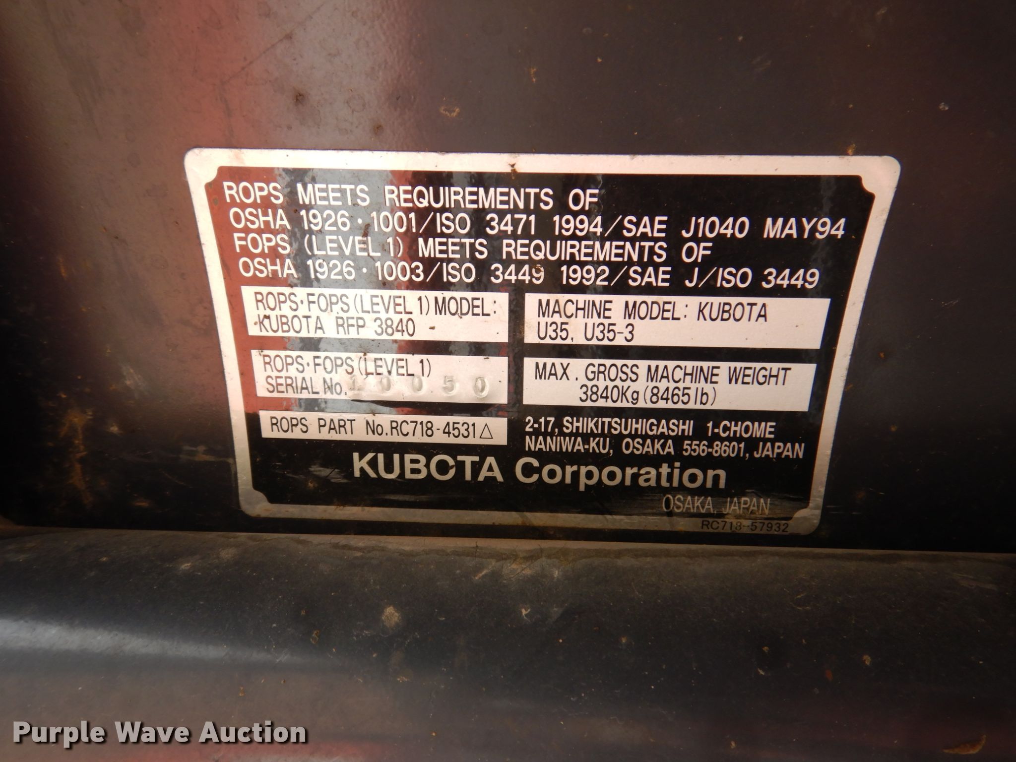 Purple Wave is selling a used Mini Excavator in Wisconsin. This item is a 2003 Kubota U35 mini excavator with the following: Hours: 2,705 on meter, Serial: 20073