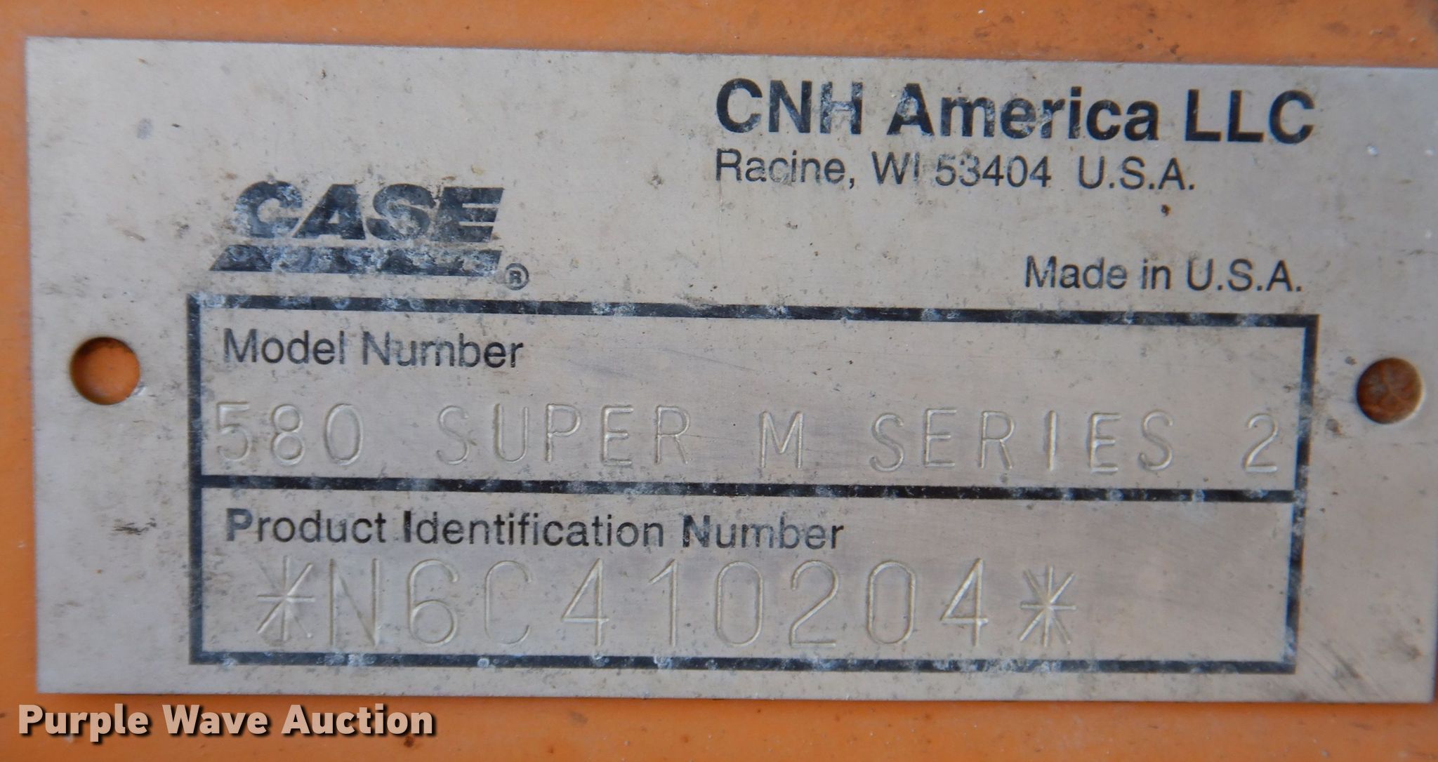 2006 Case 580 Super M Series 2 backhoe. Hours: 5,806 on meter, Serial: N6C410204. Engine Cylinders: 4, Fuel type: Diesel. Transmission Powershift, 4F - 4R. Chassis Four wheel drive. Operators station EROPS AC, Heat, Backhoe controls: Pilot control, Pattern changer. Features Loader Auxiliary hydraulics, Bucket Model: 141473A1, Width: 82", Cutting edge: Bolt-on, Backhoe Extendable stick, Quick coupler: Hydraulic, Auxiliary hydraulics, Bucket Width: 24", Cutting edge: Weld-on, Teeth: 5.. Tires Front: 12-16.5, Rear: 520/65R24. Larry Fleck & Son Trucking. 1455 S Pleasant Hill Blvd. Pleasant Hill, IA 50327