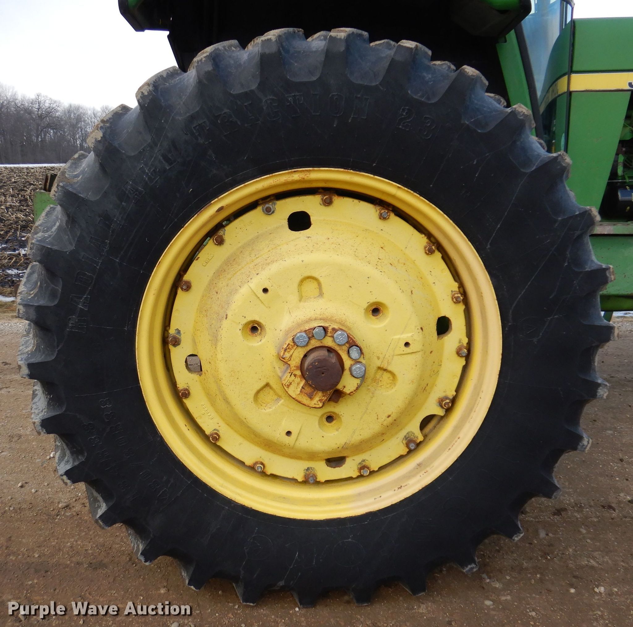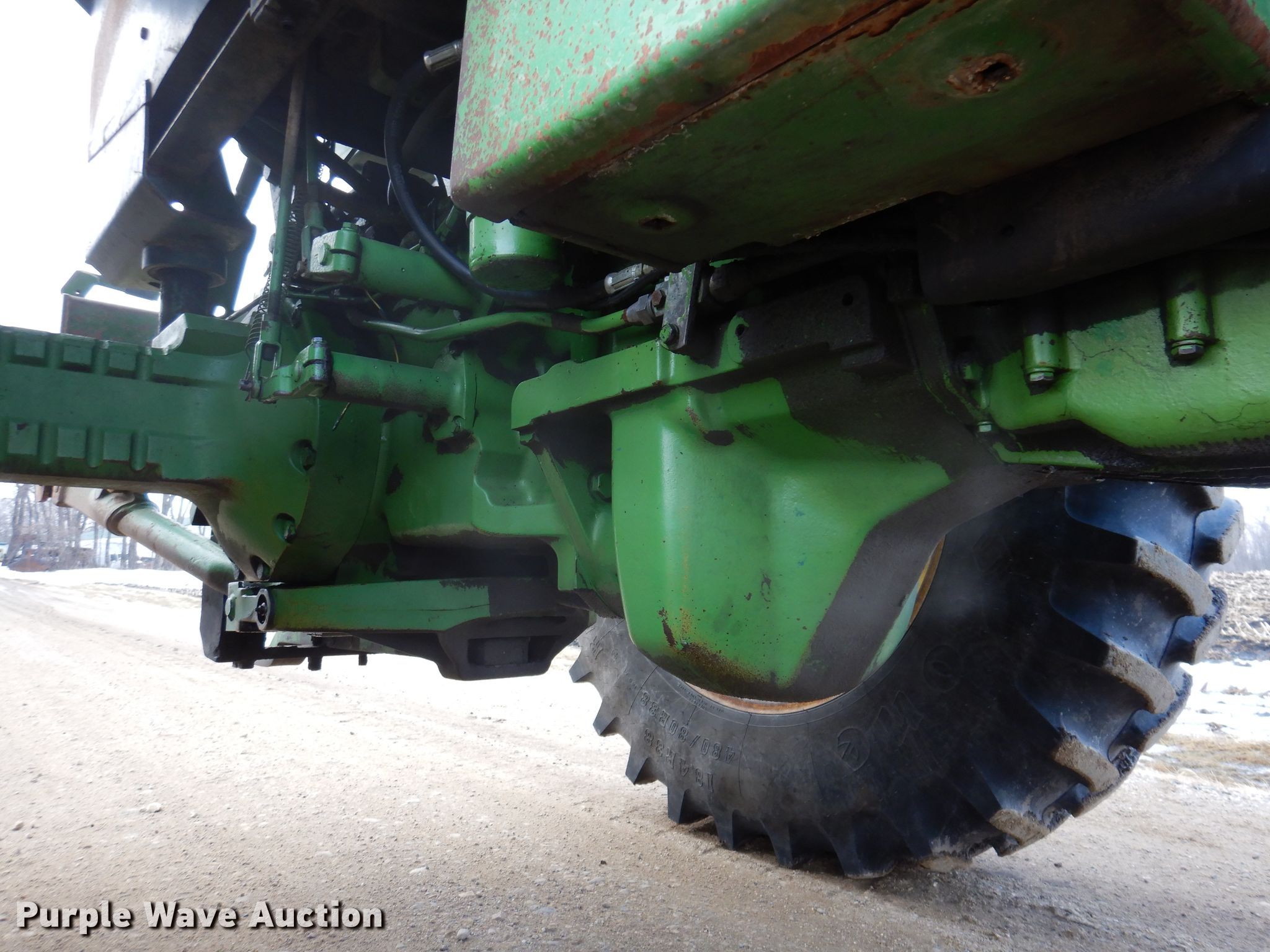 John Deere 4440 tractor. Hours: 2,330 on meter, Serial: 036639R. Engine Cylinders: 6, Fuel type: Diesel. Transmission Quad-range, 16F - 8R, Differential lock. Operators station AC, Heat. Features PTO: 540, 1000, Three point Top link, Quick attach, Seven pin outlet, Hydraulic remote sets Rear: 2. Tires Front: 11-16SL, Rear: 18.4/80R38, Wheelbase: 108". Hutchinson, MN 55350