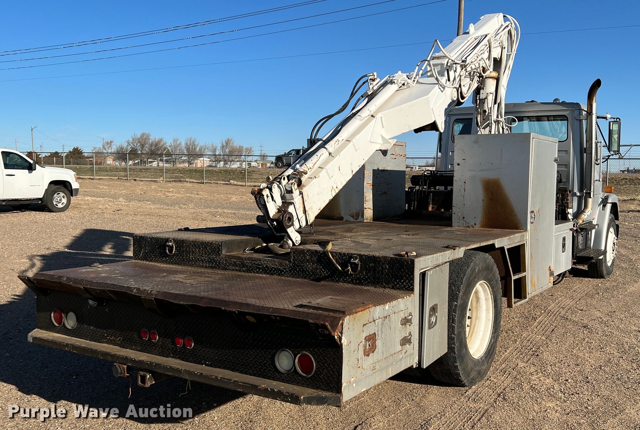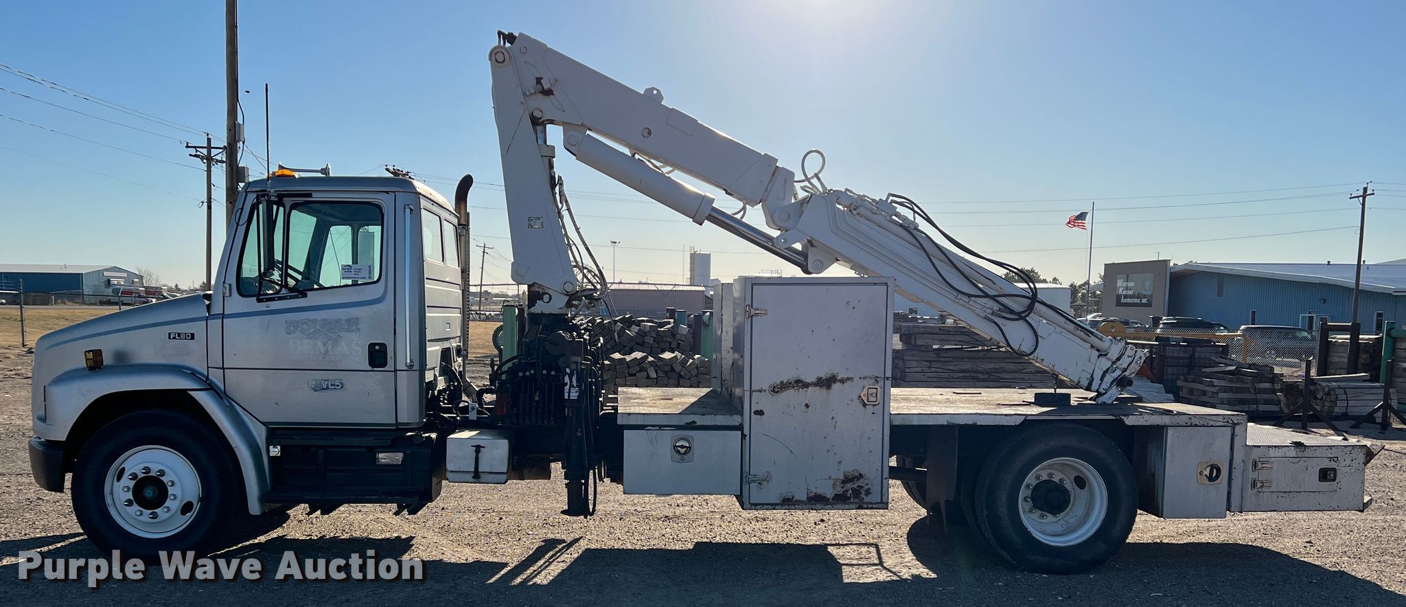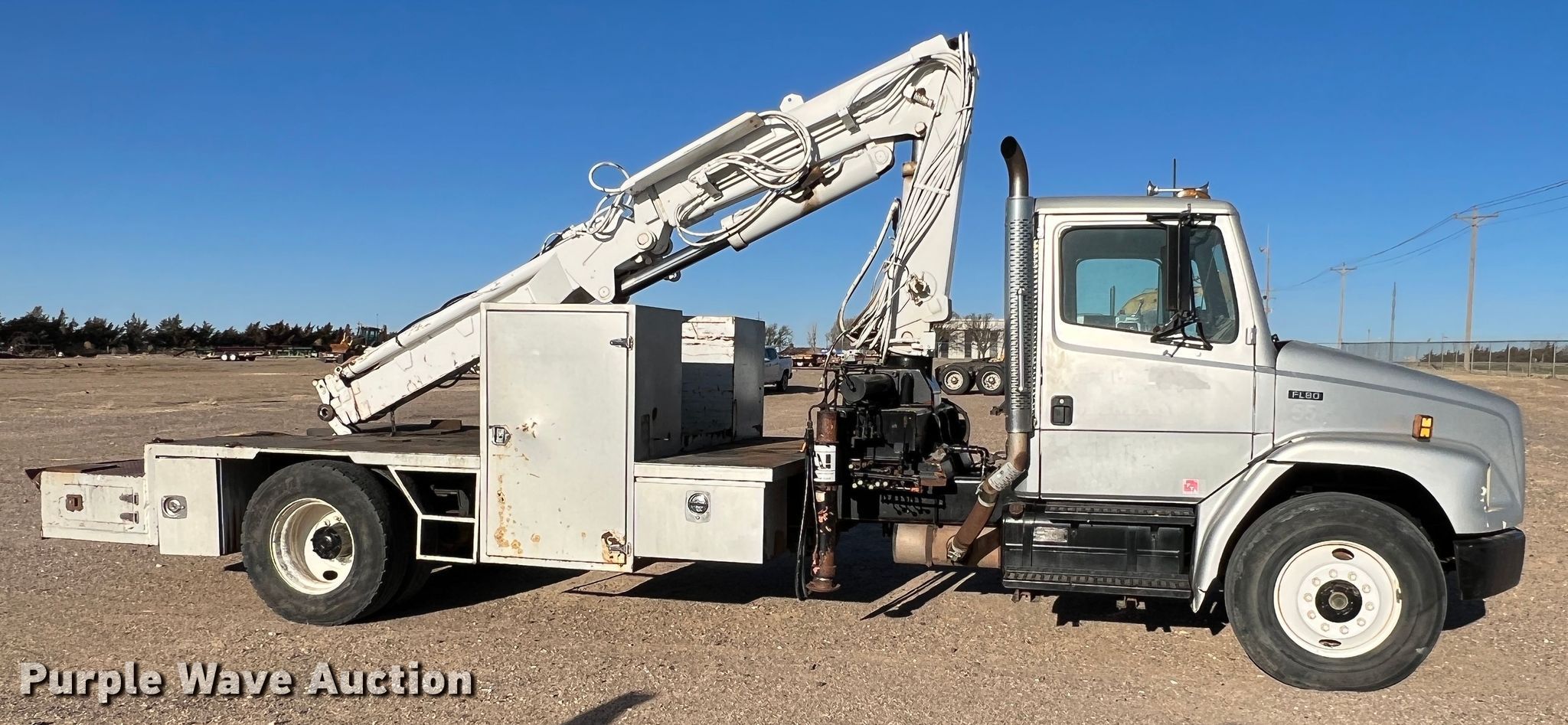 Purple Wave is selling a used Crane Truck in Kansas. This item is a 1997 Freightliner FL80 crane truck with the following: Miles: 51,506 on odometer, Hours: 4,005 on meter, VIN: 1FV6JJBB7VL572995