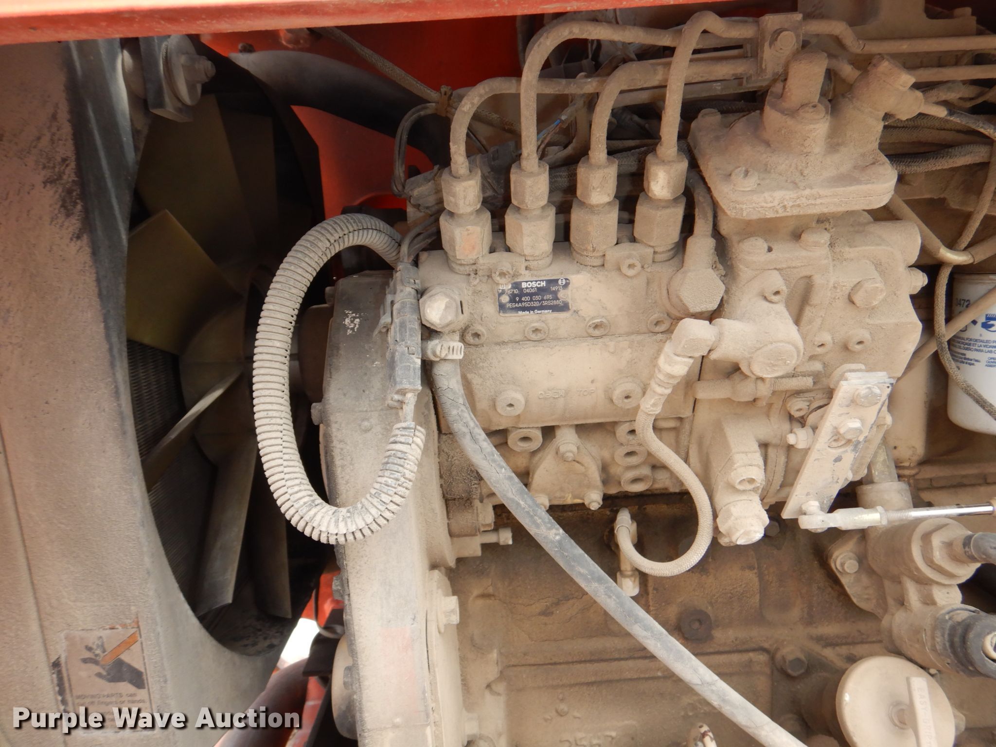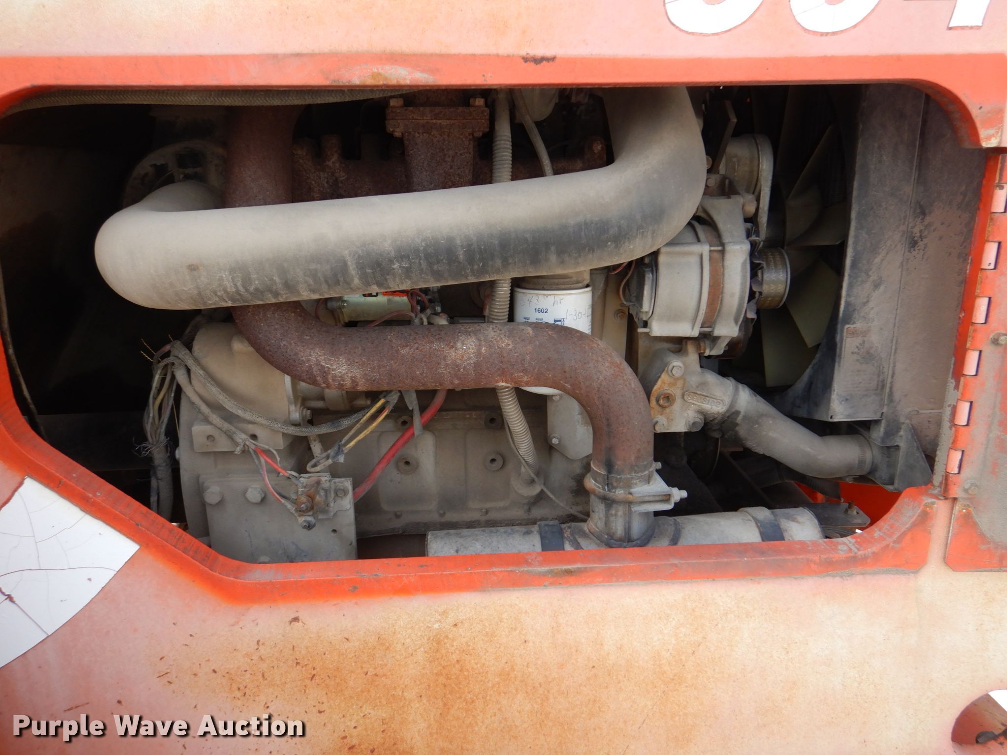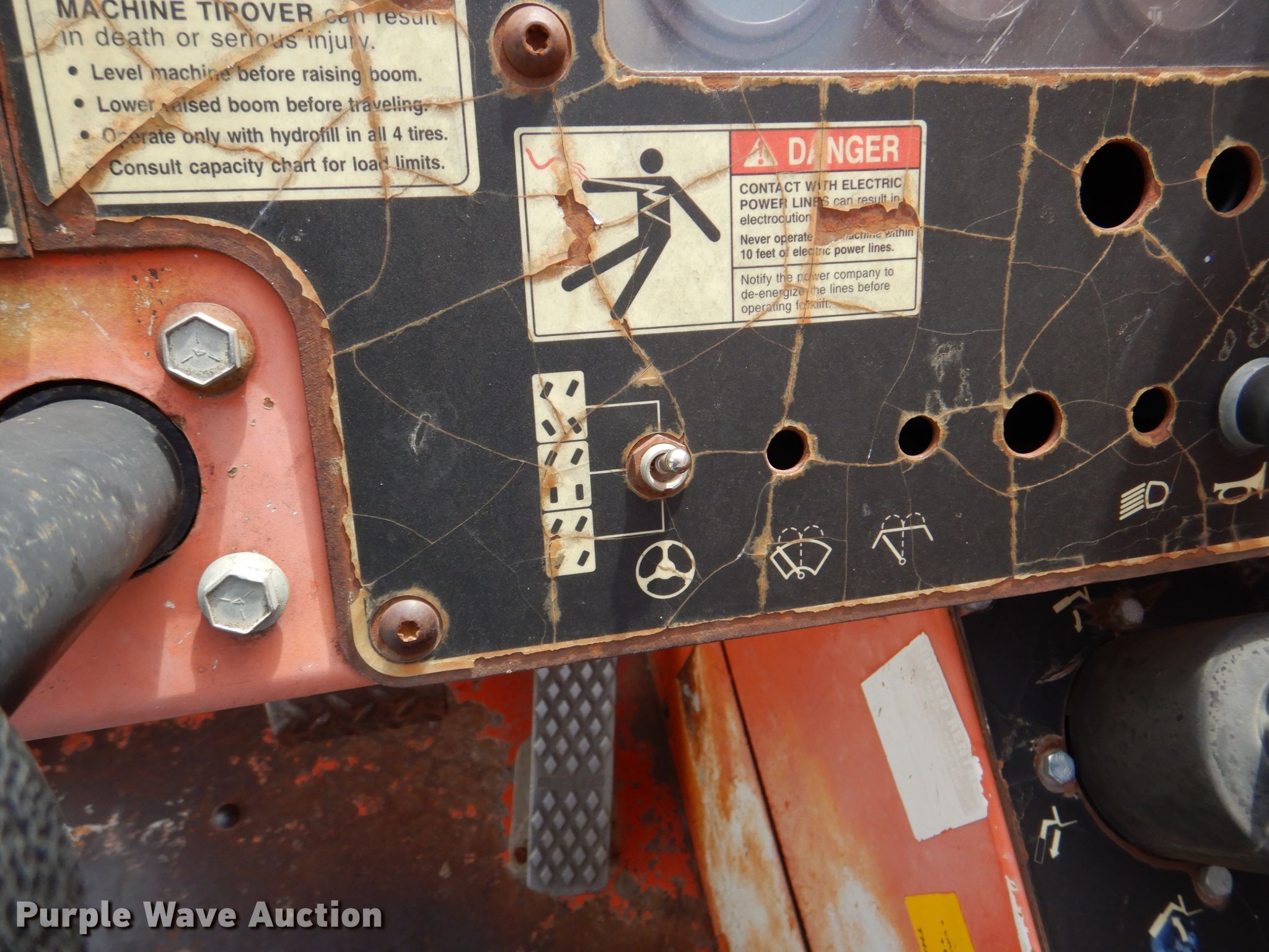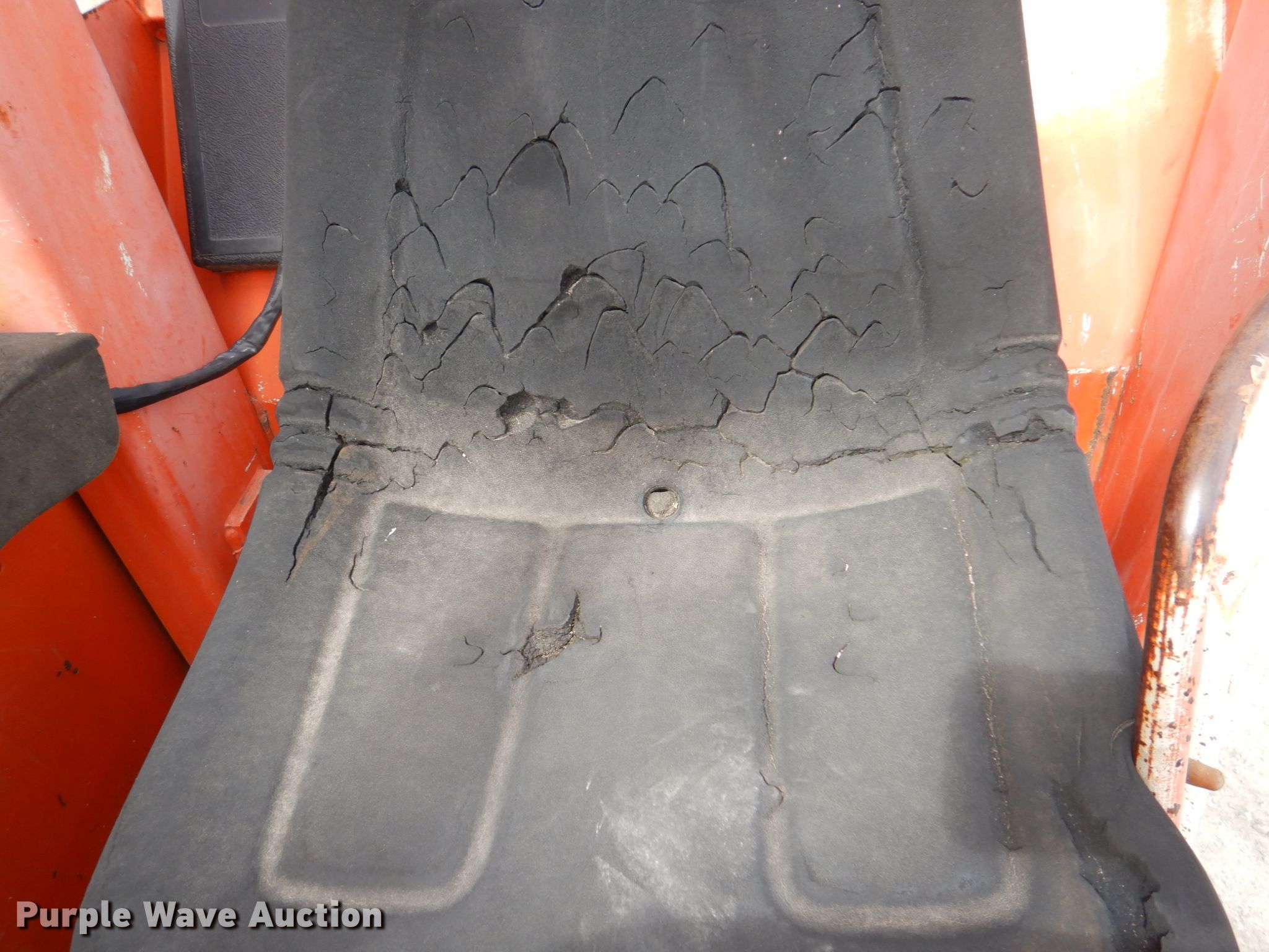 1996 SkyTrak 8042 telehandler. Hours: 5,581 on meter, Serial: P7138B1583. Engine Cylinders: 4, Fuel type: Diesel. Transmission Powershift, 3F - 3R, Four wheel drive. Operators station OROPS, Steering: Crab, Four wheel. Features Maximum lift capacity: 8,000 lbs, Maximum lift height: 42', Boom stages: 3, Fork length: 47", Hydraulic leveling. Tires Size: 13.00-24, Foam filled. Notes Hydraulic leak. Jade Millwrights, Inc.. 2583 Prairie Rd. Hiawatha, KS 66434