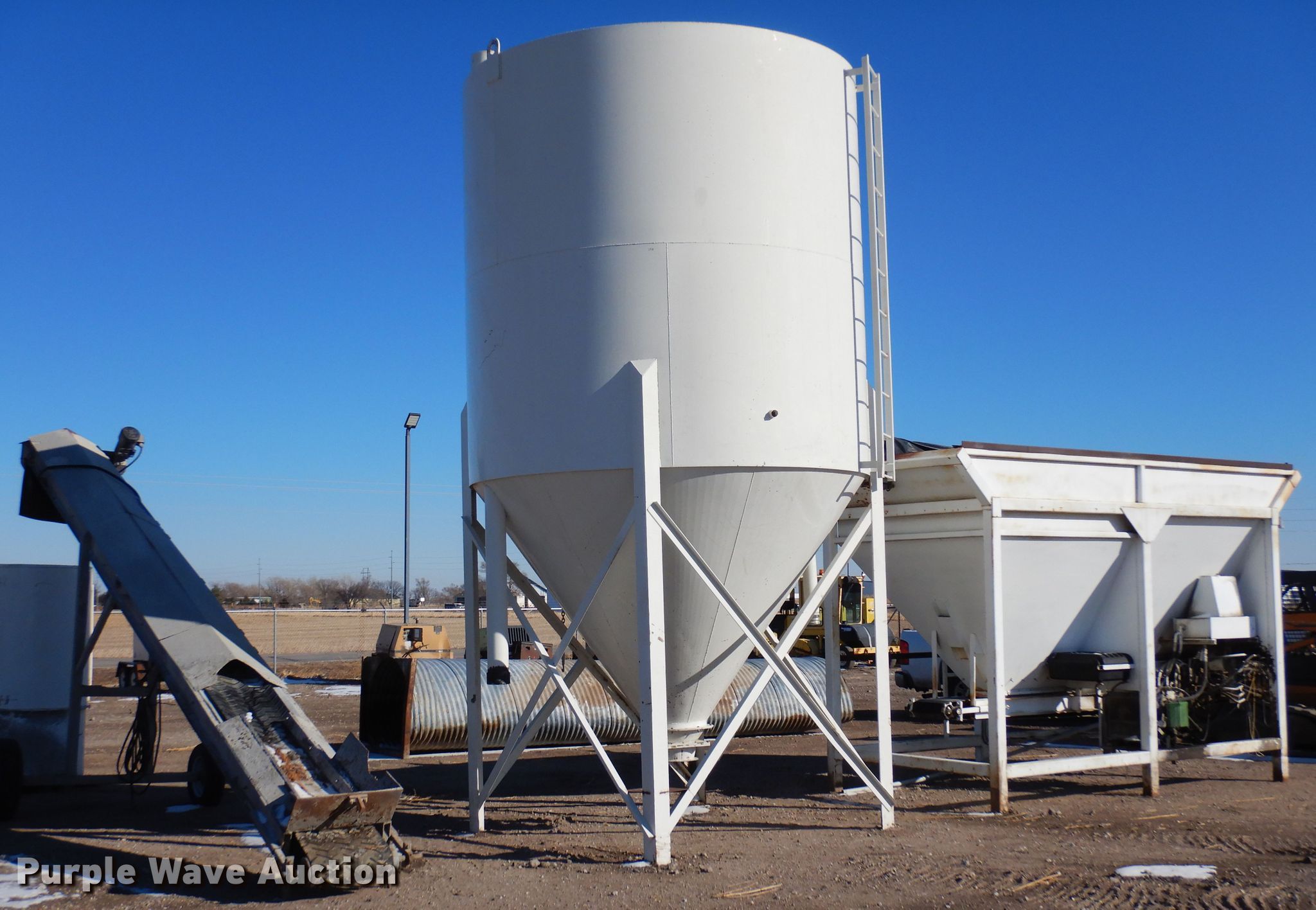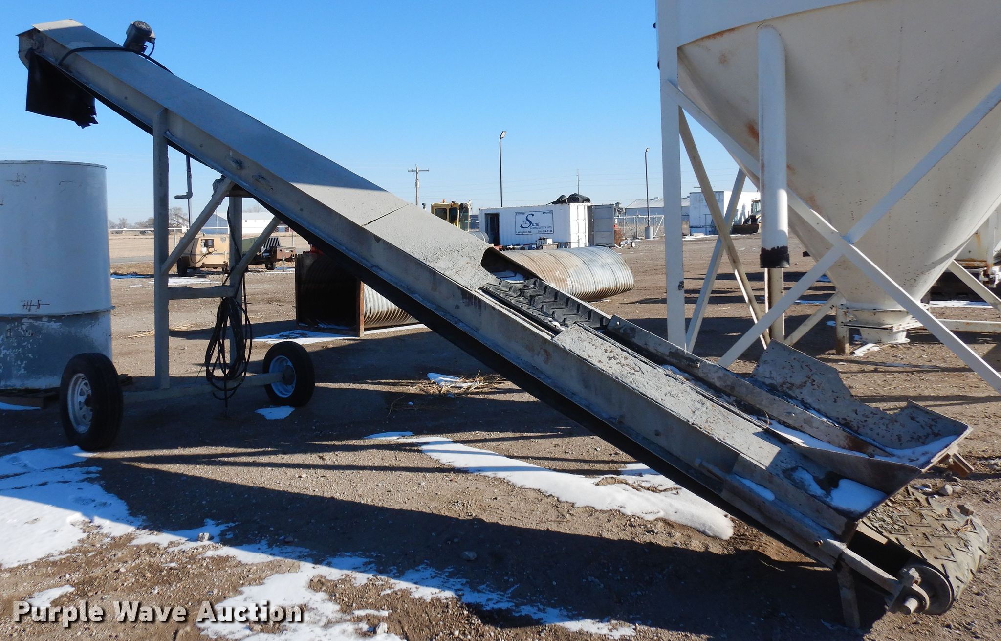 Purple Wave is selling a used Concrete Plant in Nebraska. This item is a Concrete batch plant with the following: (2) 72 x 70" hoppers, (2) 13" conveyors, Lombardi FOCS engine, Cylinders: 2, Fuel type: Diesel, Bulk tank, 19" x 25' covered conveyor, Belgrade dust house, Auger: 10" x 10'