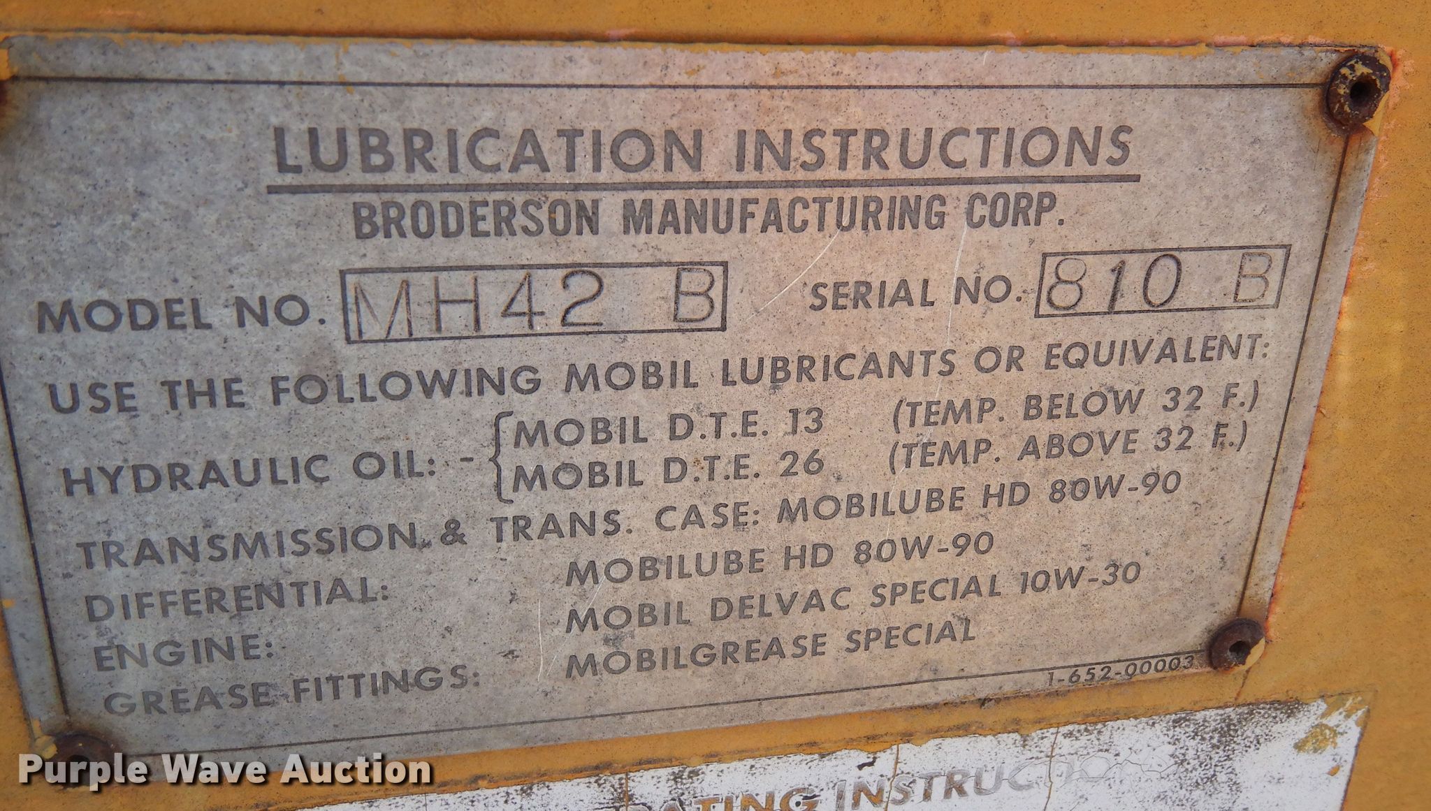 BMC MH42 B concrete breaker. Hours: 232 on meter, Serial: 810 B. Engine Cylinders: 6, Fuel type: Gas. Transmission Manual, 2F - 1R. Operational Breaker head: 4.5" diameter. Tires Front: 9.50-16LT, Rear: 7.50-16LT. Notes Unknown operating condition. T.L. Sund Constructors, Inc.. 707 N Ontario St. Lexington, NE 68850