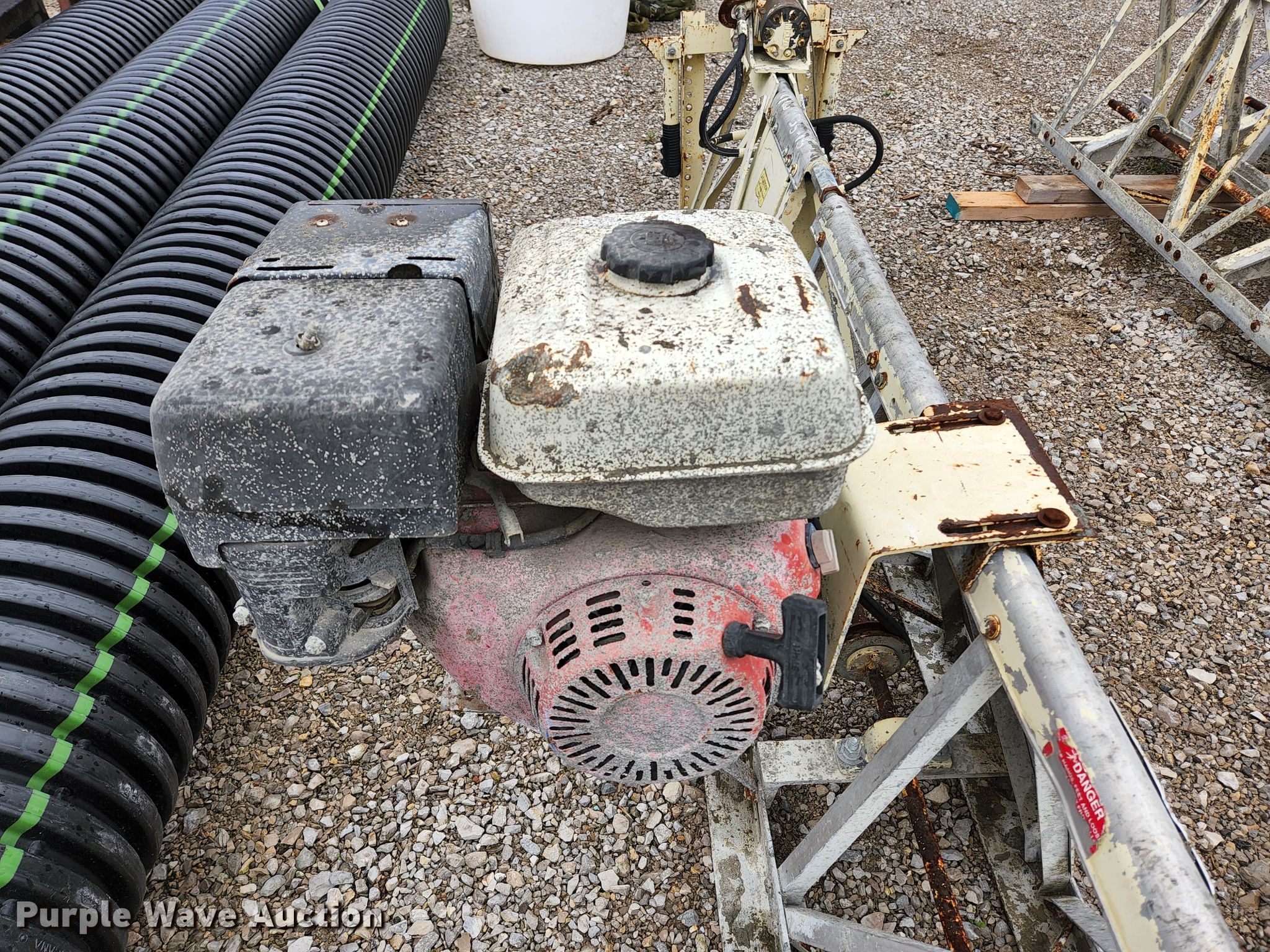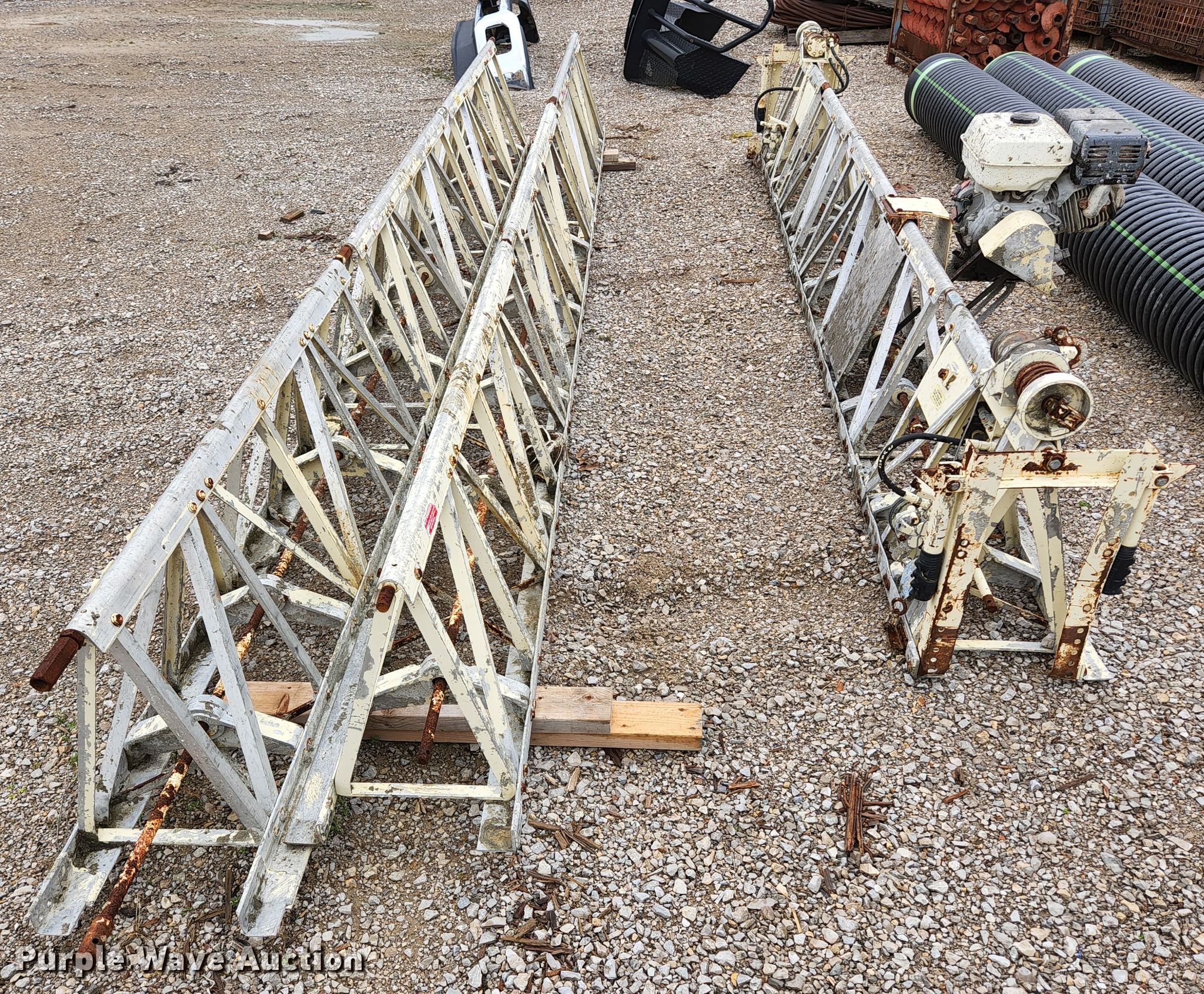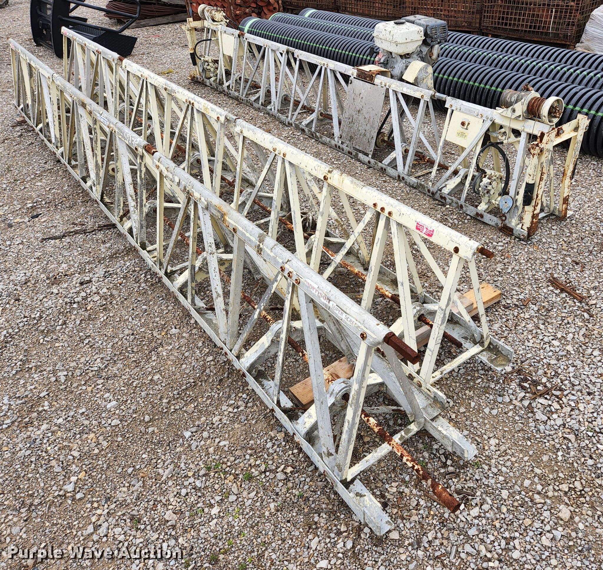 Morrison OMS2-0121 screed. Serial: 9601-33420. Engine Honda, Cylinders: 1, Fuel type: Gas. Features Screed 12' section, (2) 15' sections. ACI X. 3981 State Rte 3. Chester, IL 62233
