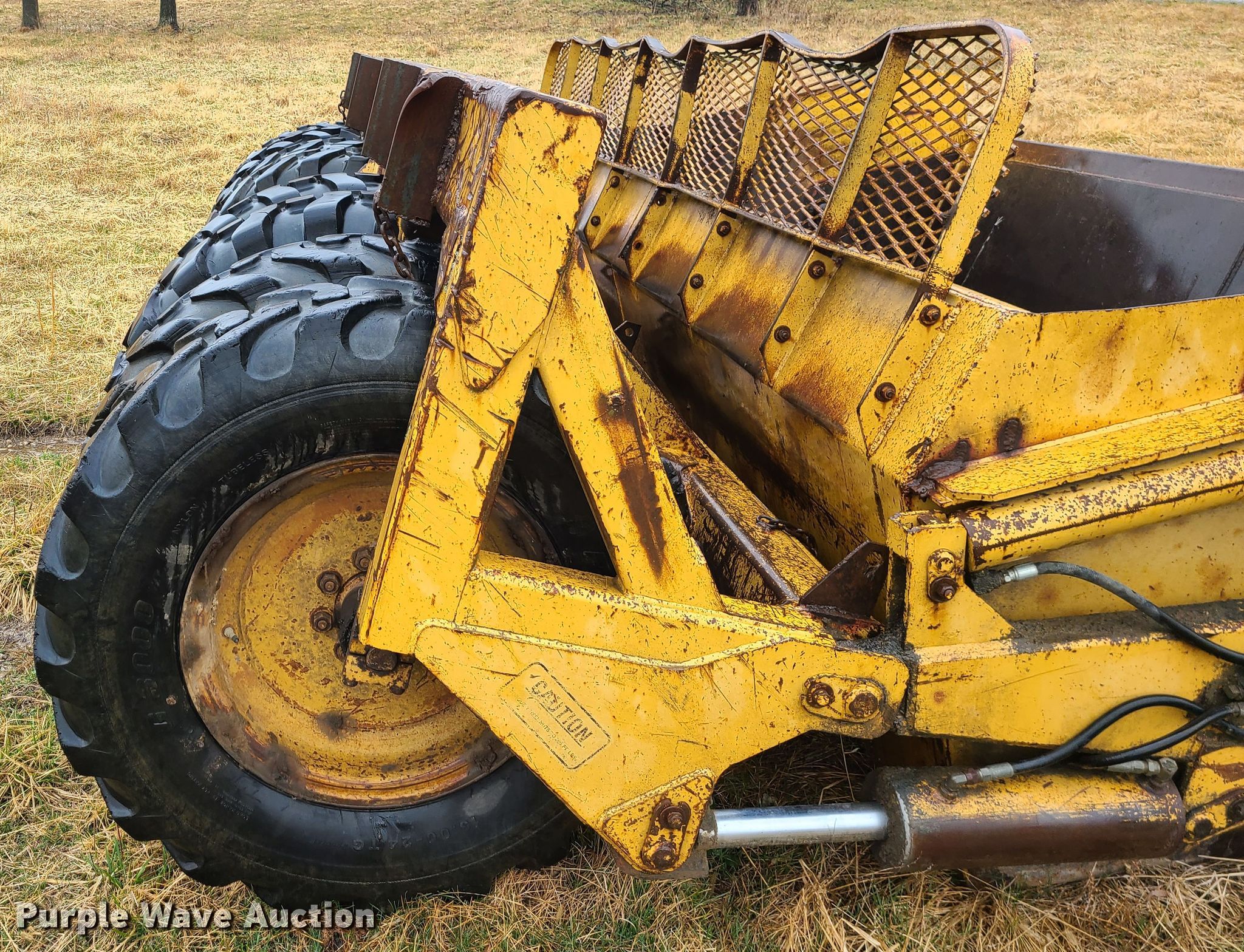 Purple Wave is selling a used Pull Type Scraper in Missouri. This item is a Reynolds 18C scraper with the following: Bowl capacity: 18 cu.yd., Hydraulic lift, Hitch: Scraper