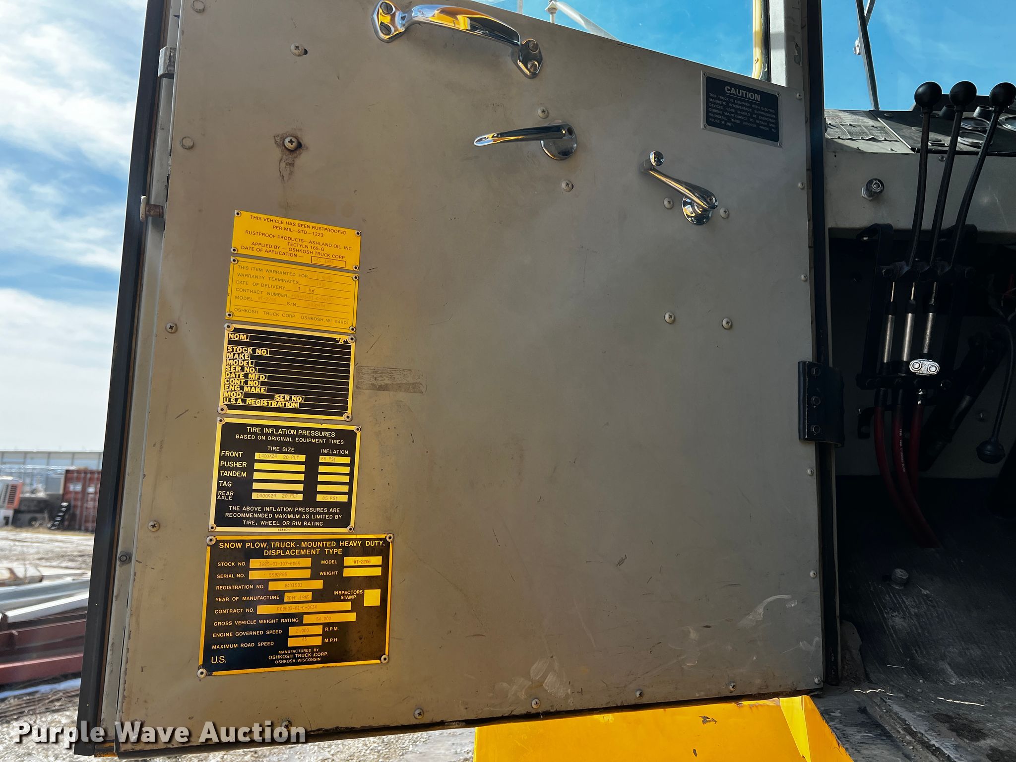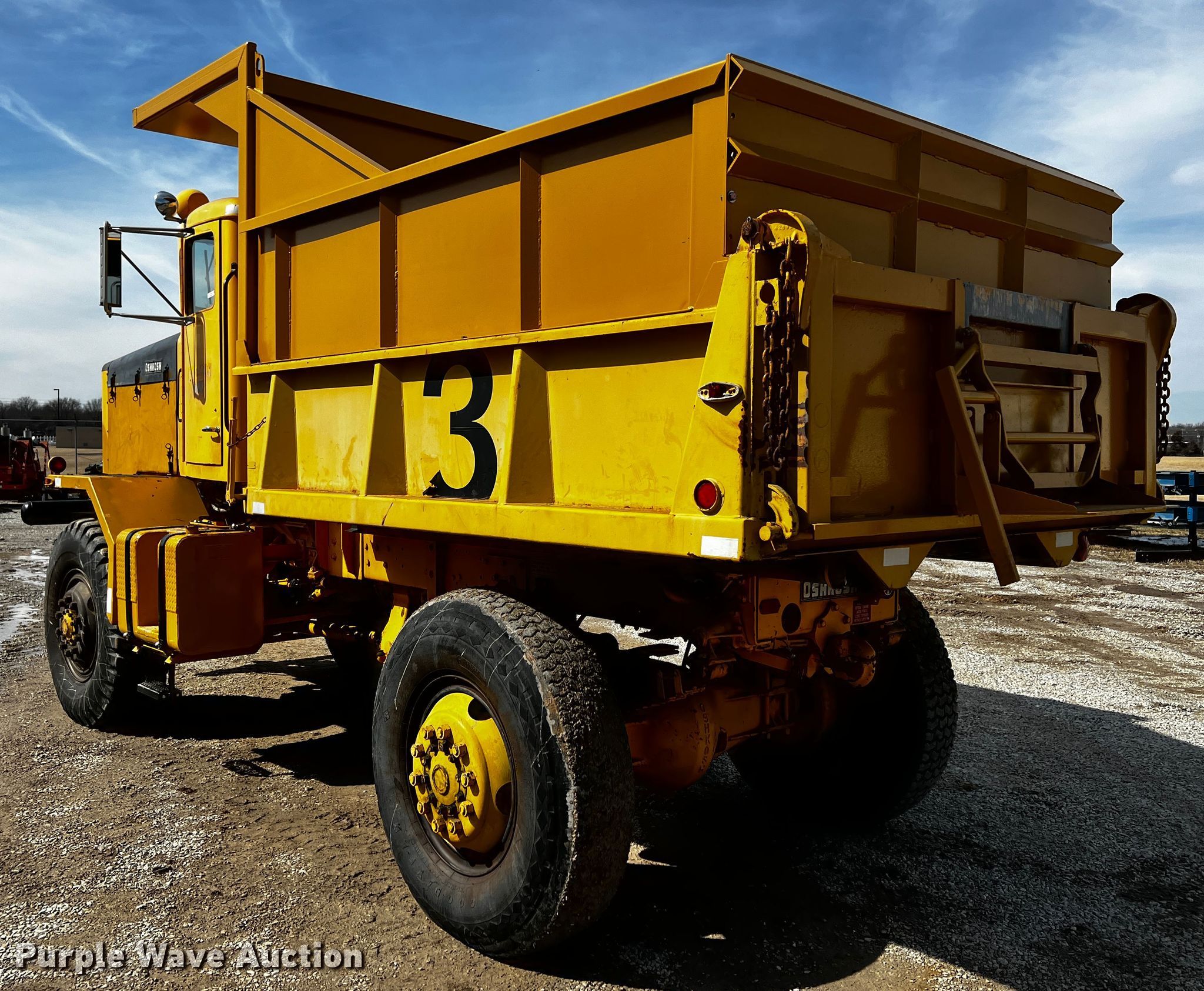 Purple Wave is selling a used Construction Dump Truck in Missouri. This item is a 1985 Oshkosh WT-2206 dump truck with the following: Miles: 7,502 on odometer, Hours: 990 on meter, VIN: 5992R85
