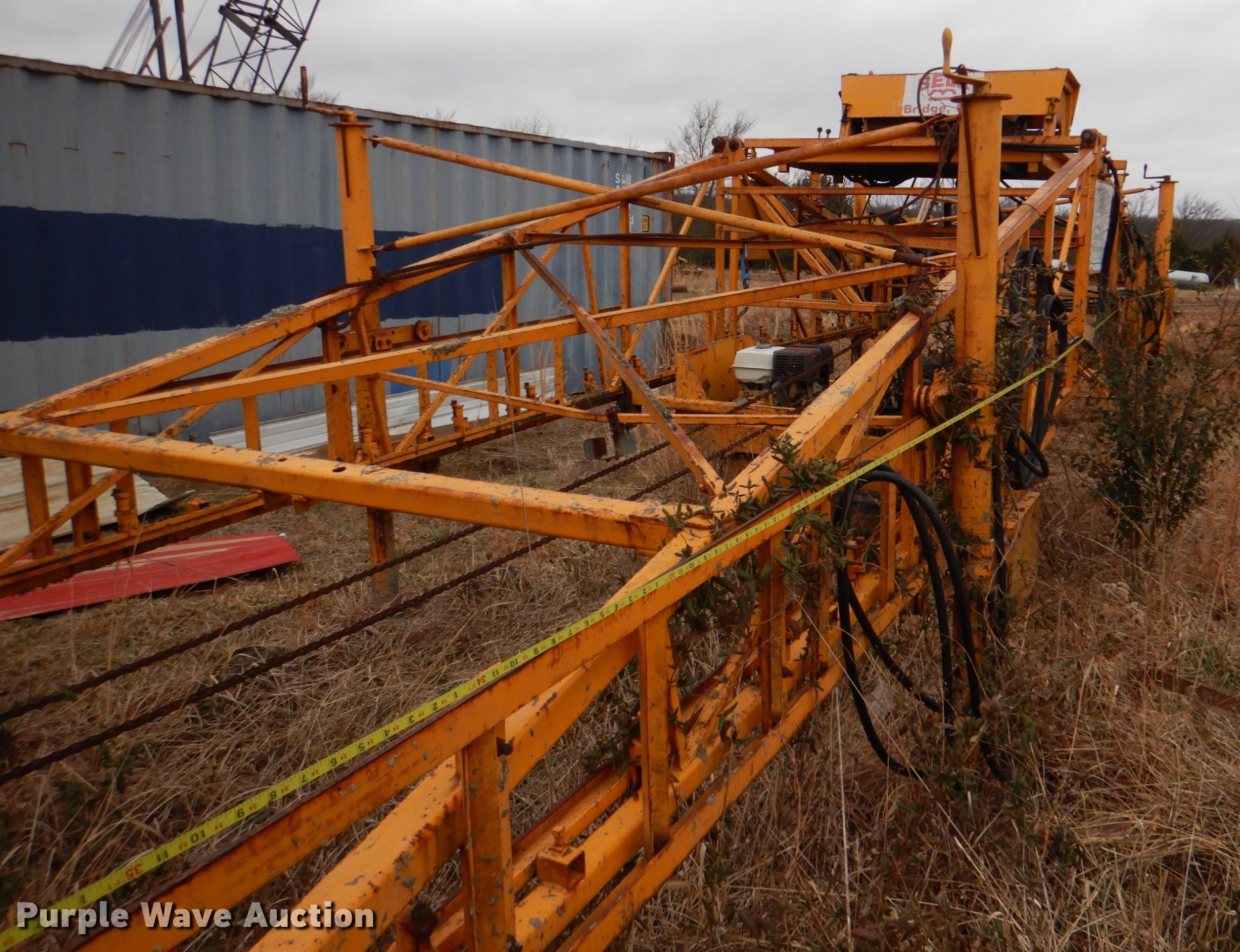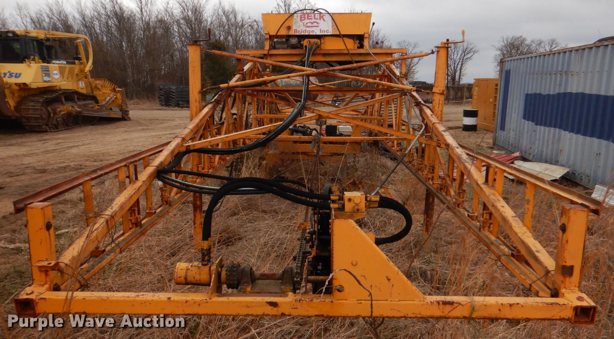 Purple Wave is selling a used Texturing Curing Machine in Oklahoma. This item is a Bidwell BR201 bridge deck finish machine with the following: 37' L x 7' W, (2) engines, Honda GX240, Honda GX340, Extension: 24' L, Tracks: 3" W, Serial: BR-75216-2
