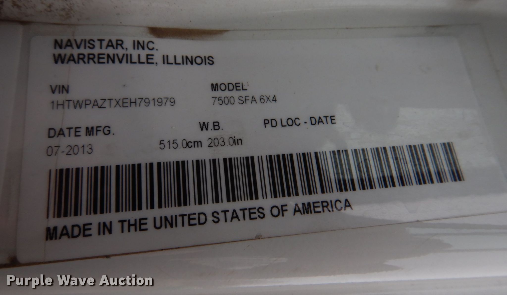 Purple Wave is selling a used Construction Dump Truck in Missouri. This item is a 2014 International WorkStar 7500 dump truck with the following: Miles: 65,443 on odometer, VIN: 1HTWPAZTXEH791979