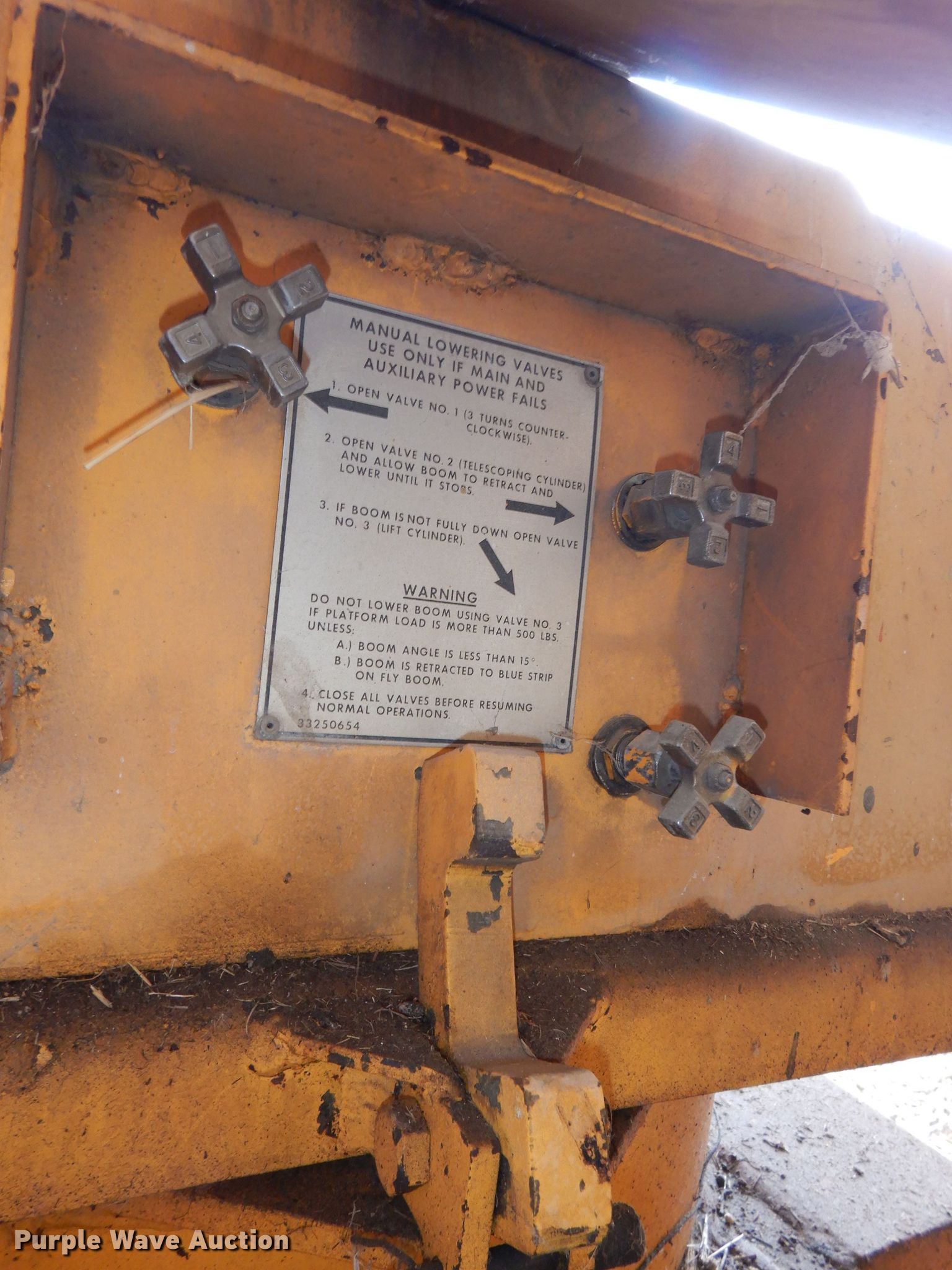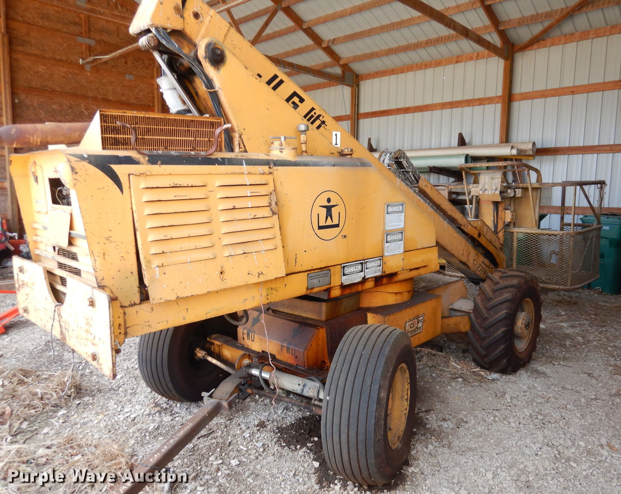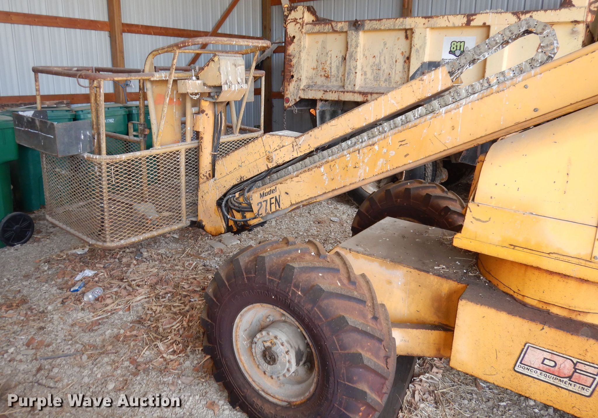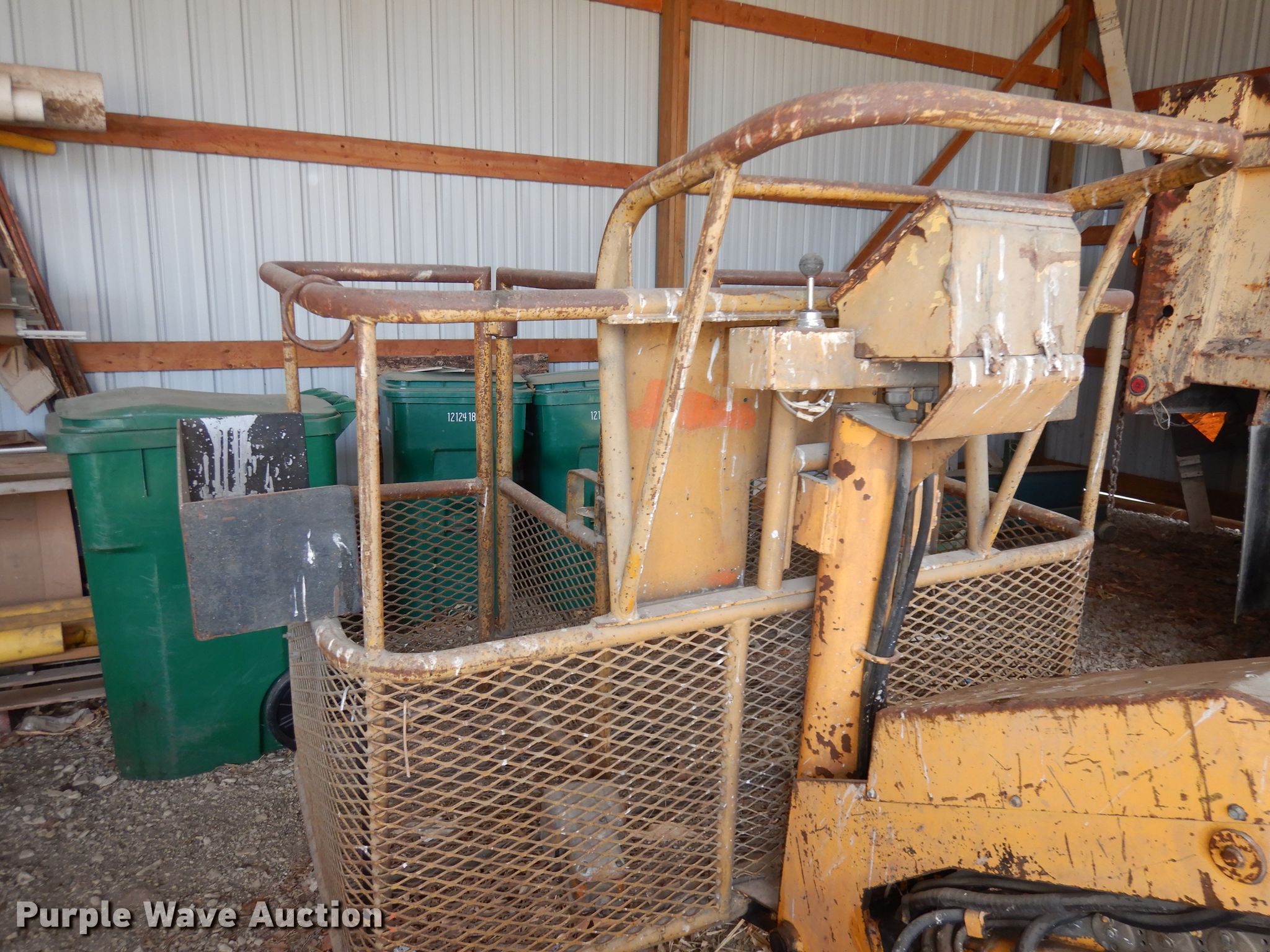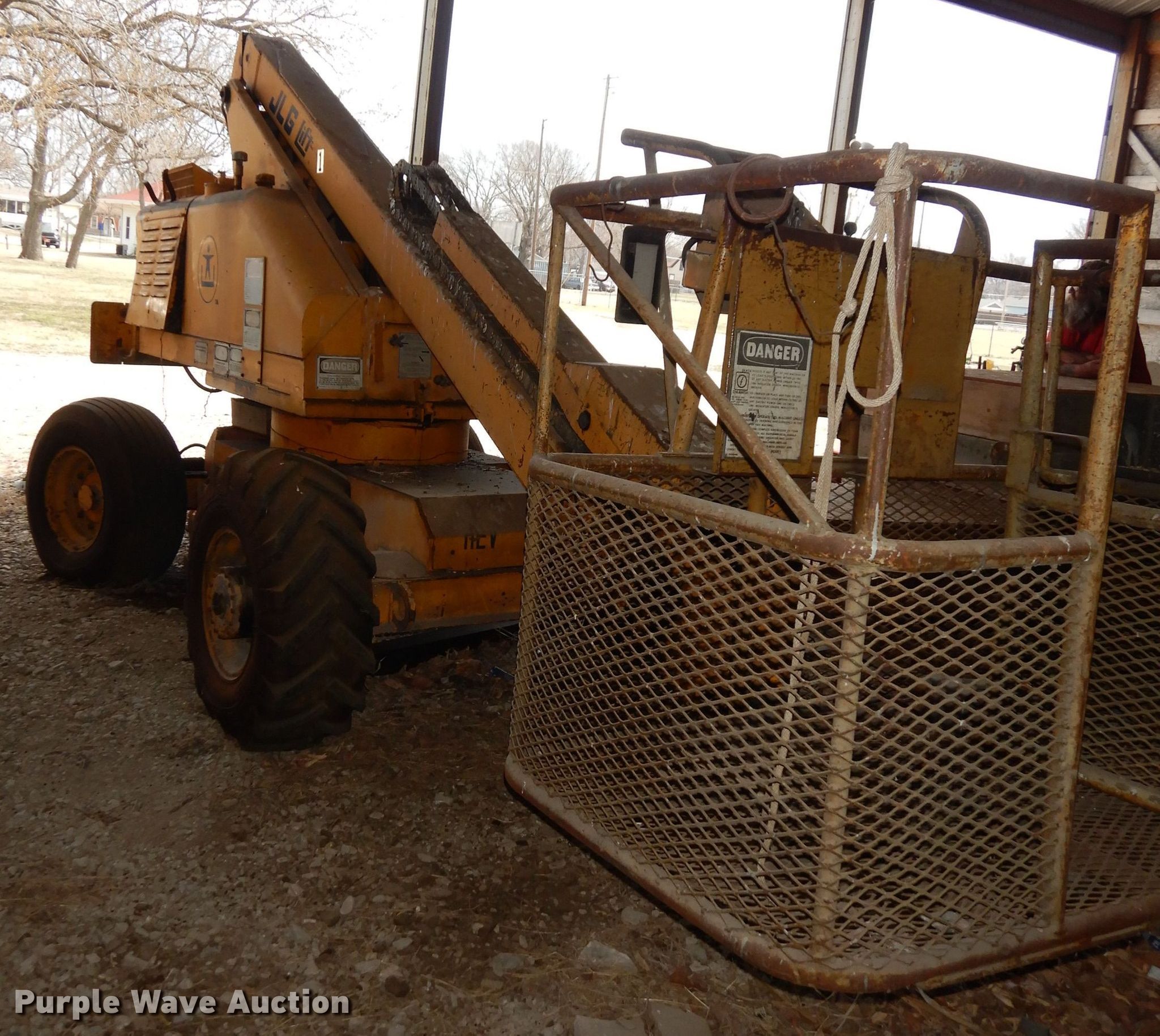 JLG 27FN boom lift. Hours: 893 on meter. Engine Wisconsin VH4D, Cylinders: 2, Fuel type: Gas. Features Tow behind, Platform: 60" L x 36" W, Controls: Platform. Tires Tire size: 12.5-15, Foam filled. Notes Oil leaks, Dead battery, Non-operational steering, Unknown operating condition. McFarland, KS 66501