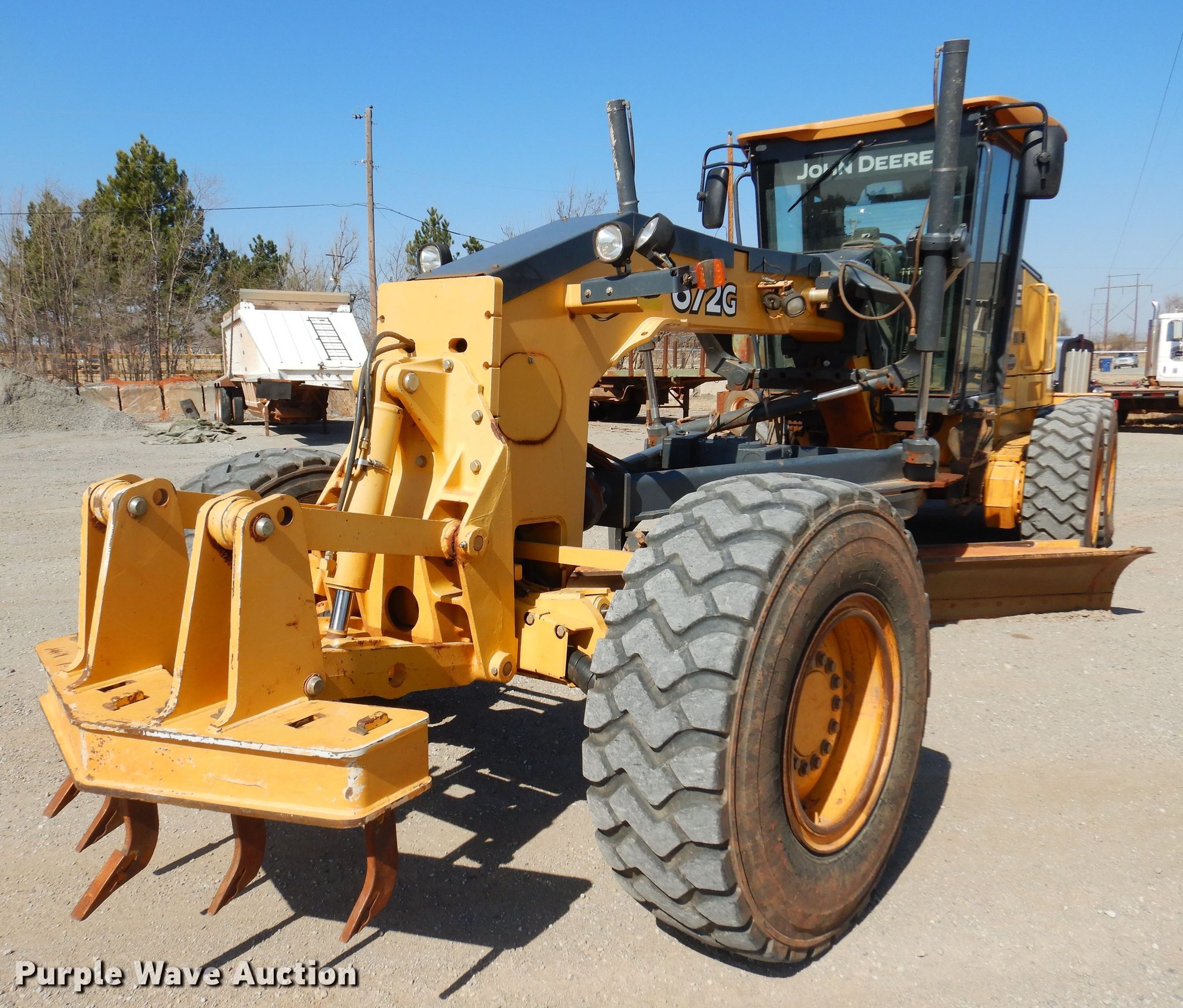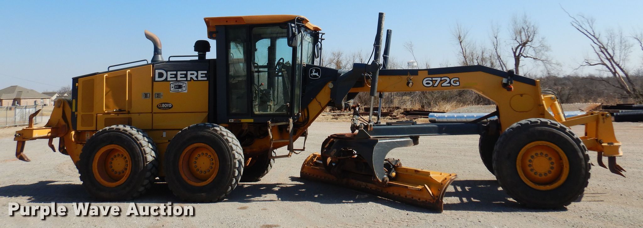 Purple Wave is selling a used Motor Grader in Oklahoma. This item is a 2012 John Deere 672G motor grader with the following: Hours: 10,543 on meter, Serial: 1DW672GXKCE643838