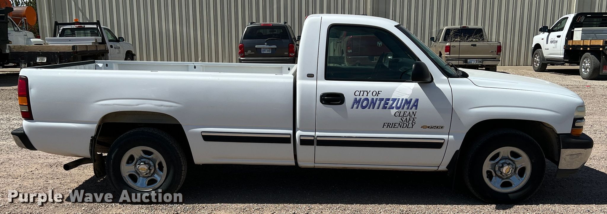 2000 Chevrolet Silverado 1500 pickup truck. Miles: 85,348 on odometer, VIN: 1GCEC14W2YZ105941. Engine Displacement: 4.3L V6 OHV 12V, Cylinders: 6, Fuel type: Gas. Transmission Automatic. Interior AC, Heat. Tires Size: 225/75R16. Notes Dash warning indicator: ABS, Brake, Battery drain issues. Kansas title. City of Montezuma. 300 W Geronimo Ave. Montezuma, KS 67867