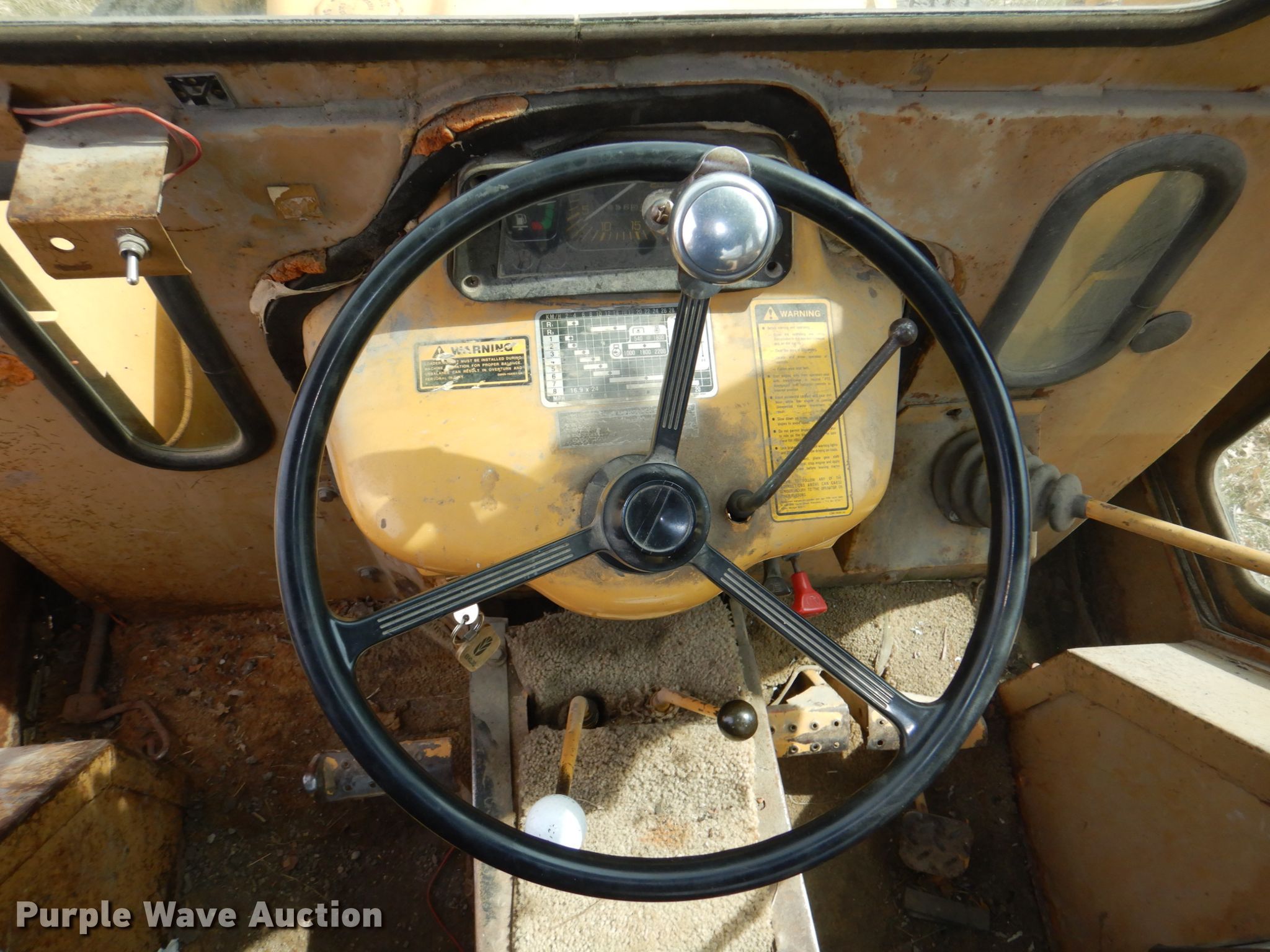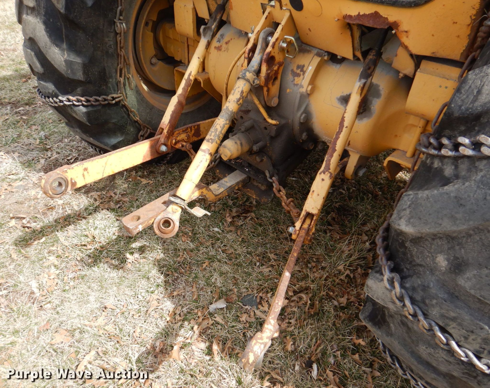 Ford 545A tractor. Hours: 3,457 on meter, Serial: C774208. Engine Cylinders: 3, Fuel type: Diesel. Transmission Manual, 8F - 2R. Operators station Heat. Features PTO: 540, Three point Top link, Loader Ford 745, Controls: Joystick, Bucket Width: 79".. Tires Front: 235/85R16, Rear: 16/9-24. Notes Glass cracked, Back glass cracked , Hydraulic oil leak. City of Elliott, IA. 409 Main St. Elliott, IA 51532
