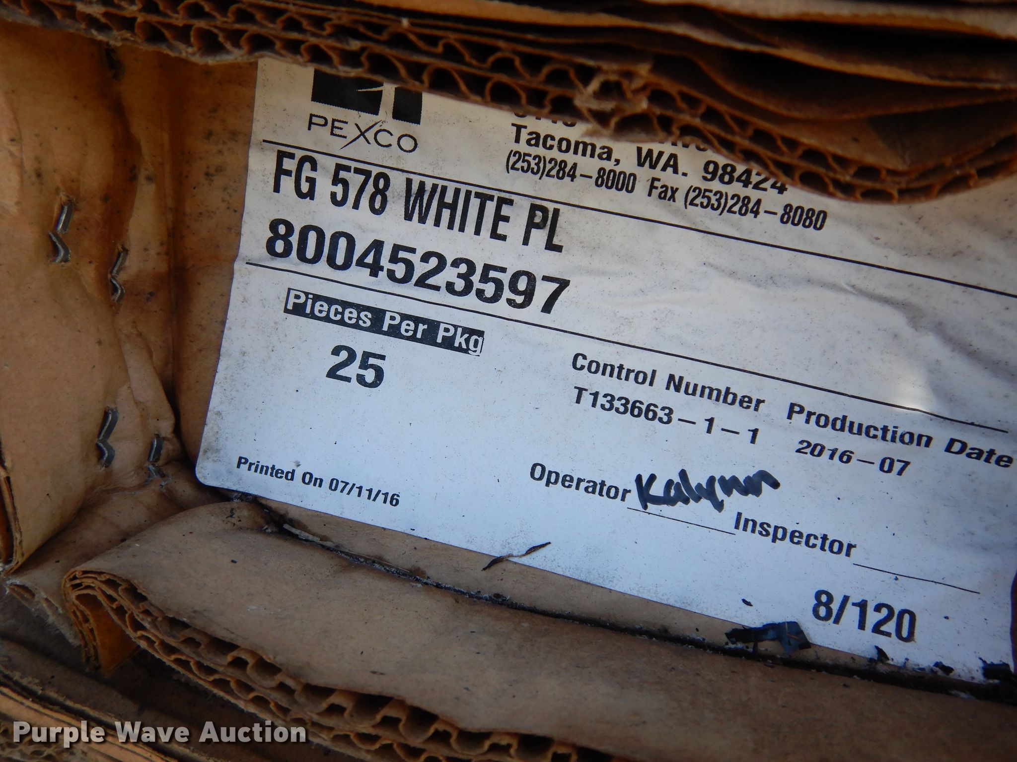 Approximately 1,250 Pexco FG578 White Pl reflectors has sold in Clifton, Texas for $66. Item EY9808 sold on April 26th, 2022.