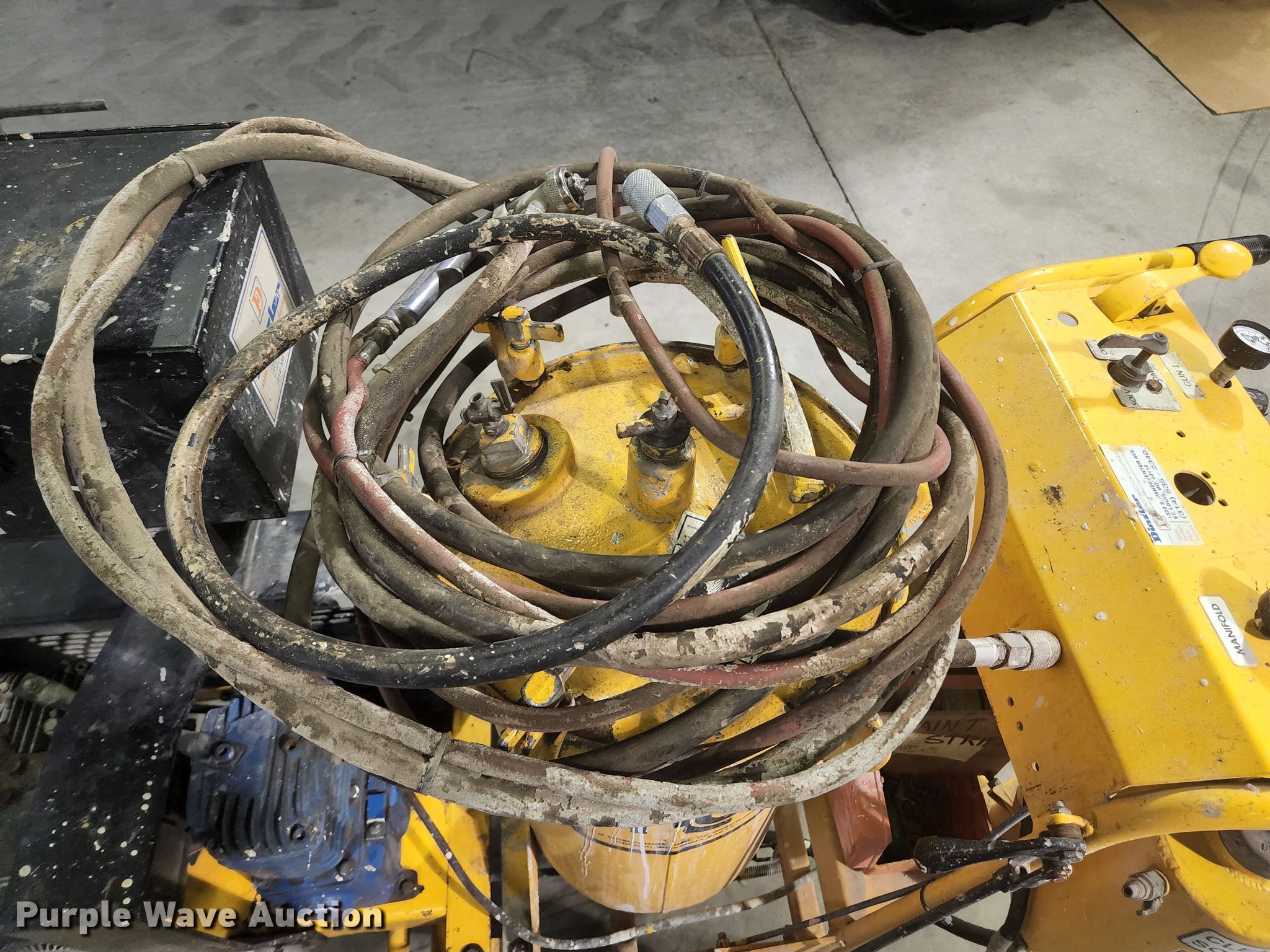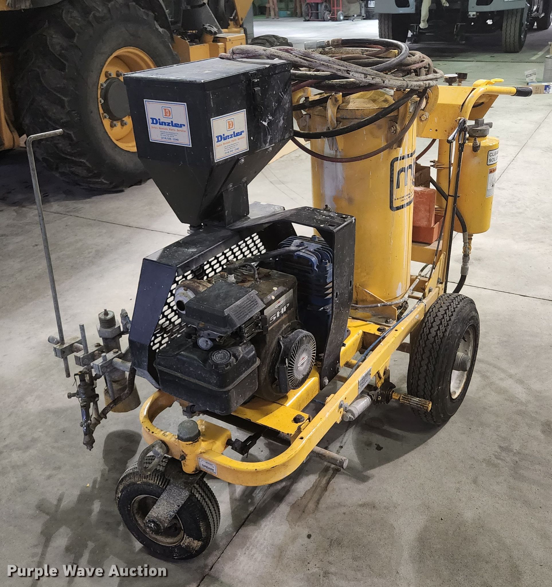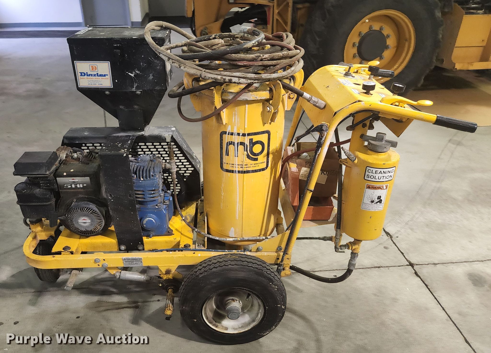Purple Wave is selling a used Tools in Illinois. This item is a M-B Company paint striper with the following: Serial: 300101295, Briggs & Stratton gas engine, 5 HP, Air compressor