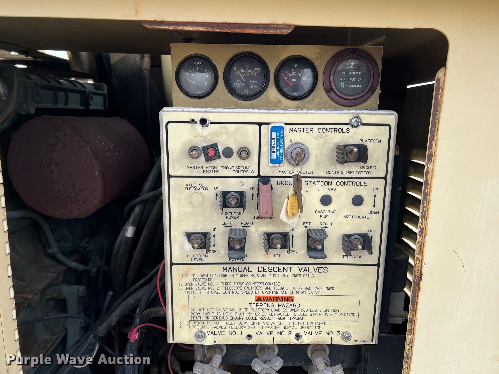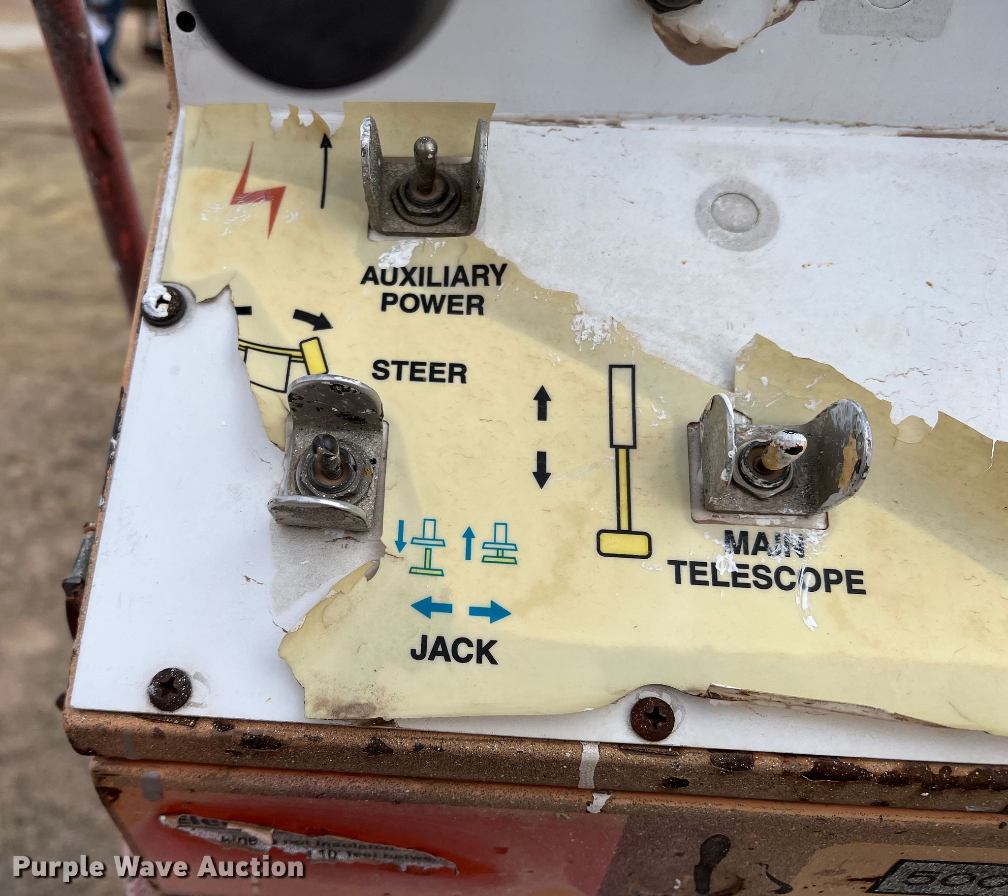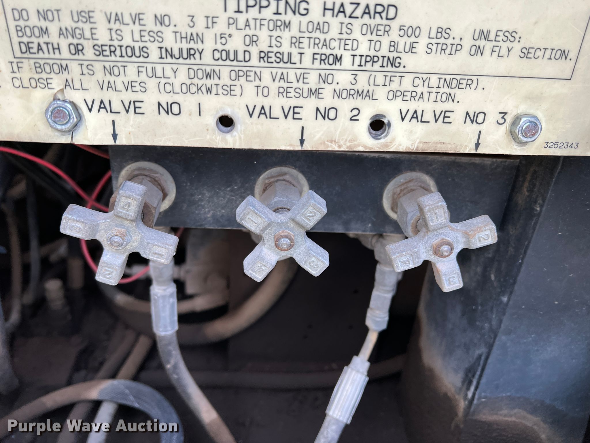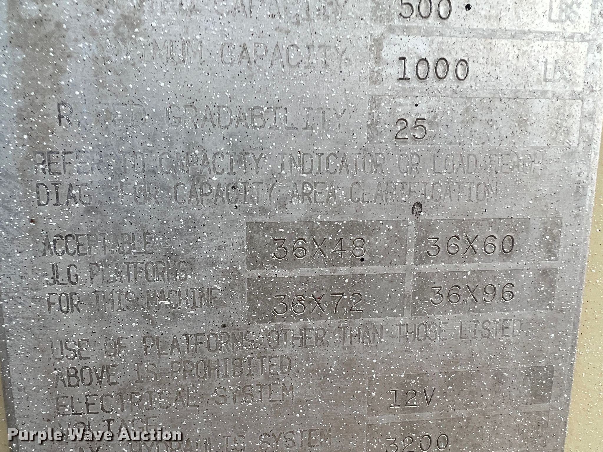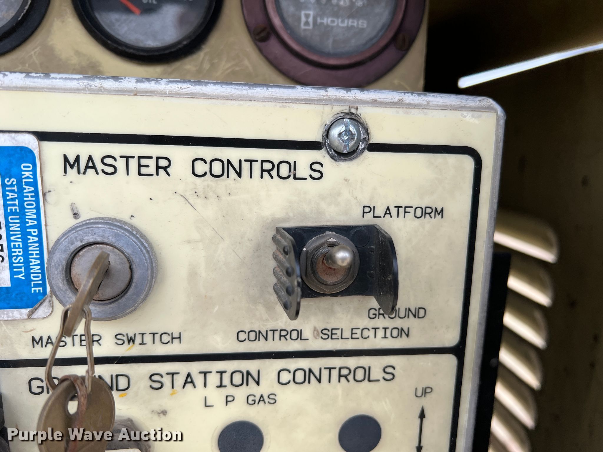 1997 JLG 40H boom lift. Hours: 3,690, Serial: 035496-0300027621. Engine Cylinders: 3, Fuel type: Diesel. Operational Rough terrain, Maximum lift capacity: 1,000 lbs, Maximum reach length: 33', Maximum lift height: 40', Platform: 35" L x 59" W, Controls: Platform, Ground. Tires Tire size: 12.5-15. Notes Unknown operating condition. 323 Eagle Blvd. Goodwell, OK 73939