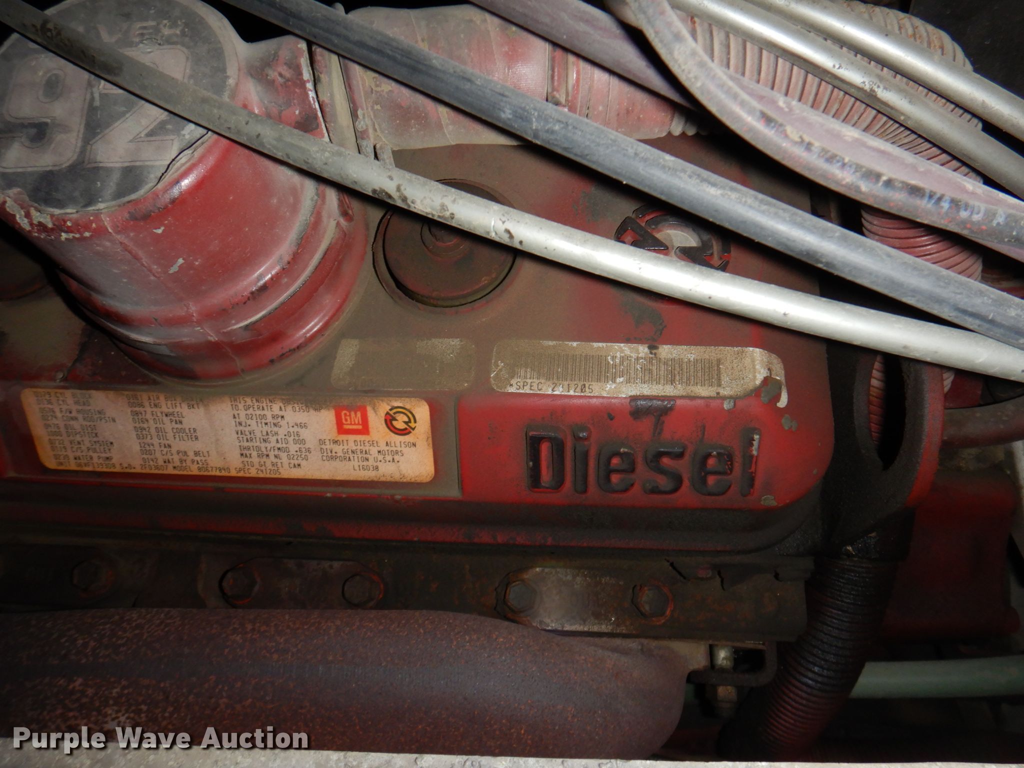 1986 Hale pumper fire truck. Miles: 75,653 on odometer, Hours: 3,556 on meter, VIN: 1F9BBAA85G1037520. Engine Detroit Diesel, Cylinders: 8, Fuel type: Diesel, HP: 350. Transmission Automatic. Chassis Axles: Single, Suspension: Spring, Brakes: Air, Wheelbase: 192". Interior Heat. Features Fire truck body Pump 1,500 gpm.. Tires Size: 11R22.5. Notes Emergency light bar will be removed prior to auction. Missouri title. Worth County Fire Protection Dist.. 408 S High St. Grant City, MO 64456