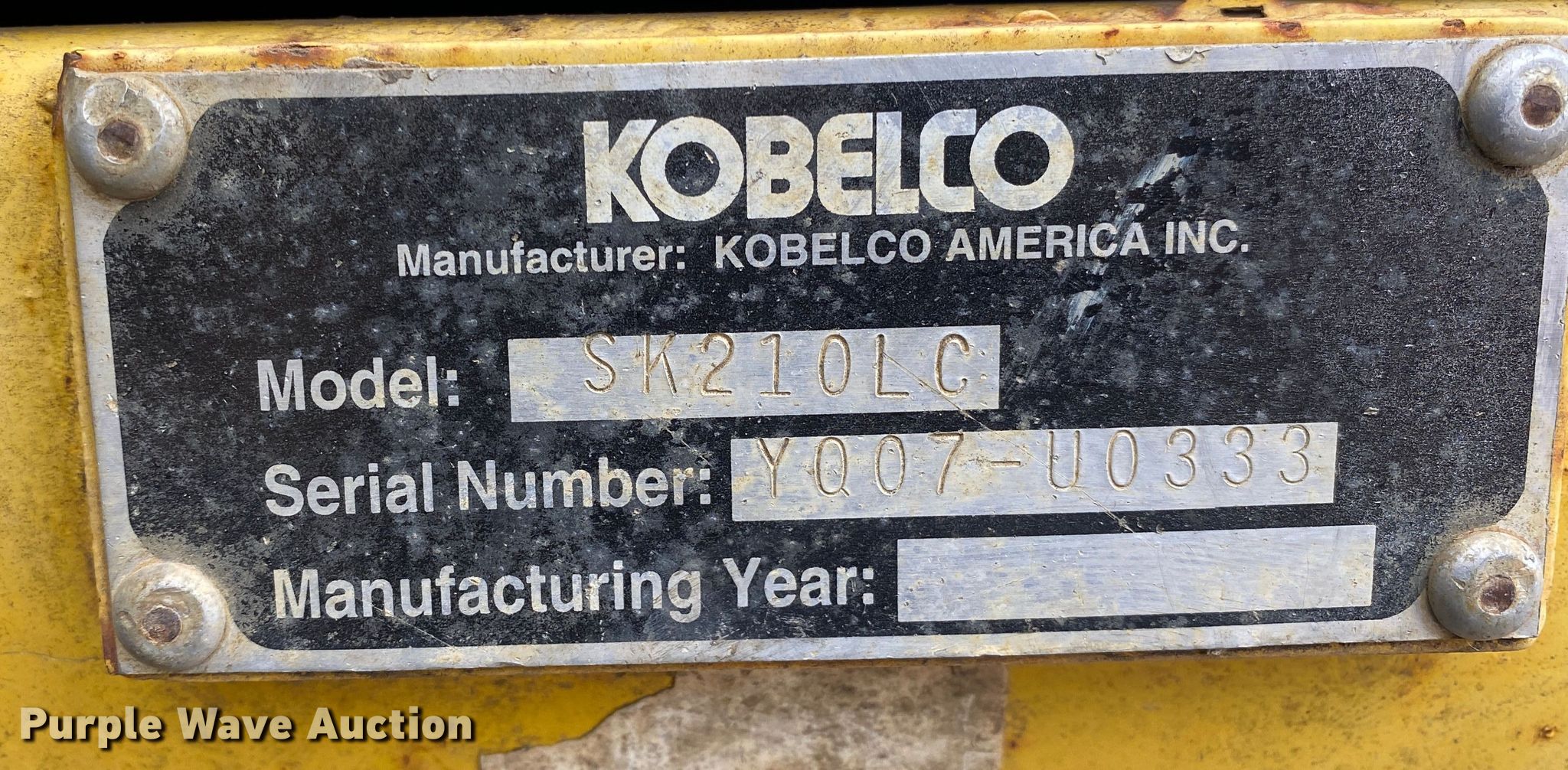 Purple Wave is selling a used Hydraulic Excavator in Oklahoma. This item is a 2000 Kobelco SK210LC excavator with the following: Hours: 7,128 on meter, Serial: YQ07-U0333