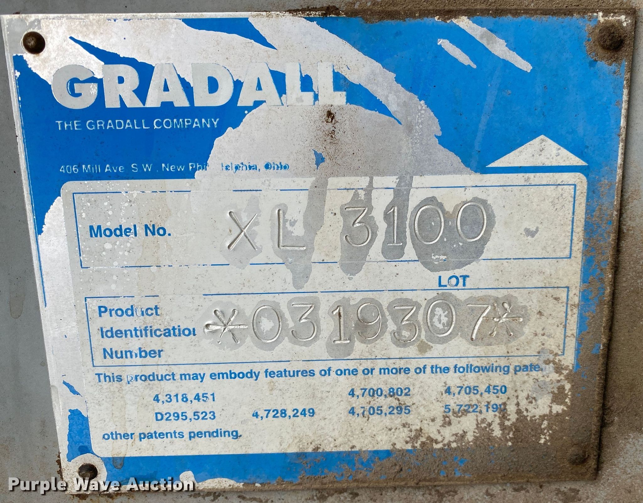 Purple Wave is selling a used Wheeled Excavator in Oklahoma. This item is a 2003 Gradall XL3100 wheeled excavator with the following: Hours: 5,296 on meter, Serial: 0319307