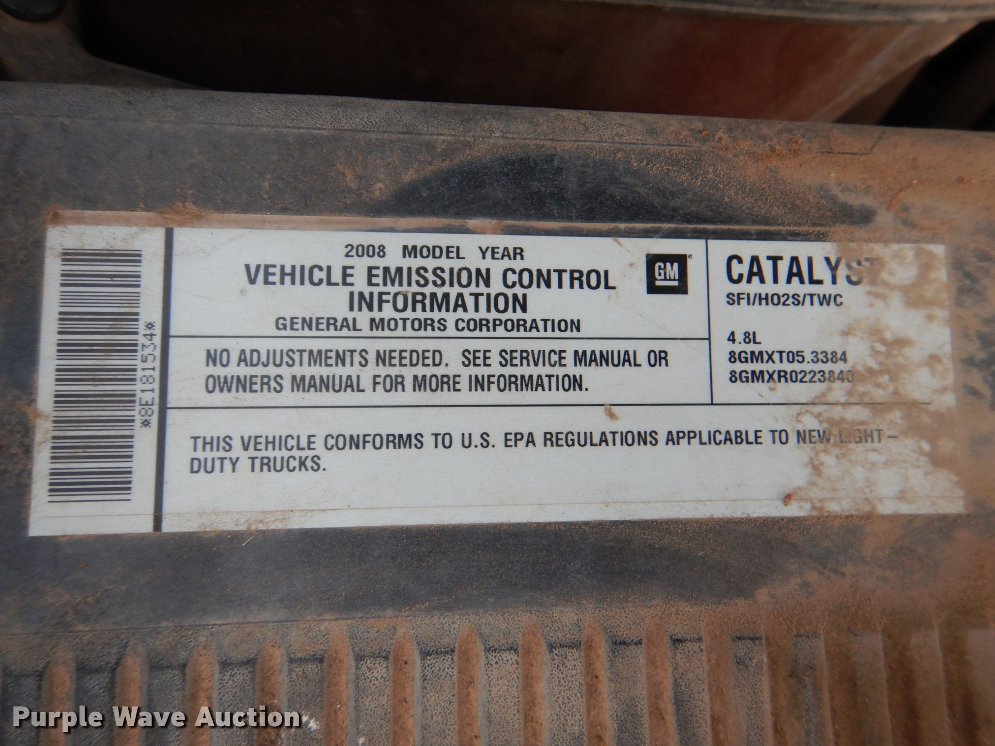 2008 Chevrolet Silverado 1500 pickup truck. Miles: 105,686 on odometer, VIN: 1GCEC14CX8E181534. Engine Displacement: 4.8L V8 OHV 16V, Cylinders: 8, Fuel type: Gas. Transmission Automatic. Interior AC, Heat, Cruise control. Tires Size: LT245/70R17. Notes Dash warning indicator: Check engine, Air bag. Oklahoma title. Town of Ryan. 614 Washington St. Ryan, OK 73565