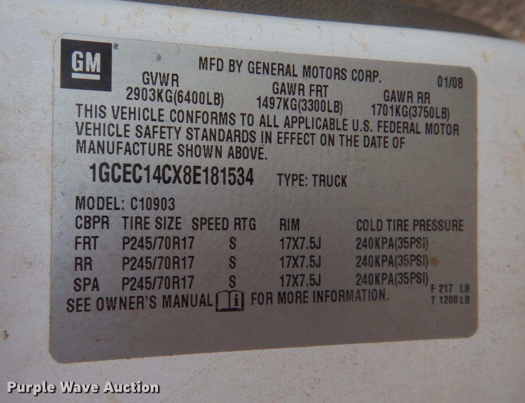 Purple Wave is selling a used 1/2 Ton Pickup or Van in Oklahoma. This item is a 2008 Chevrolet Silverado 1500 pickup truck with the following: Miles: 105,686 on odometer, VIN: 1GCEC14CX8E181534