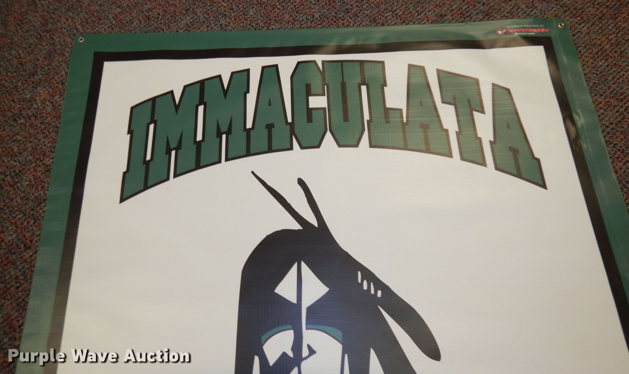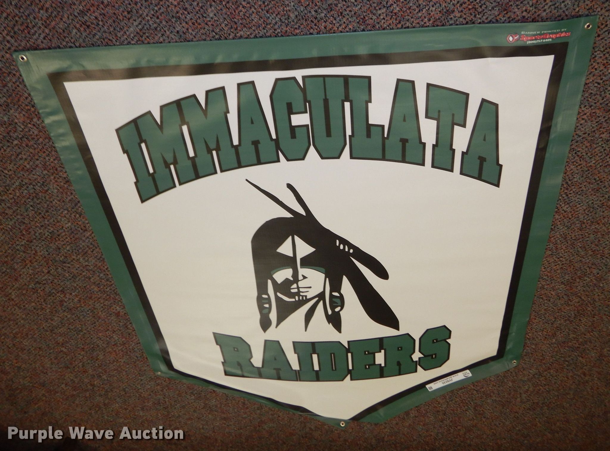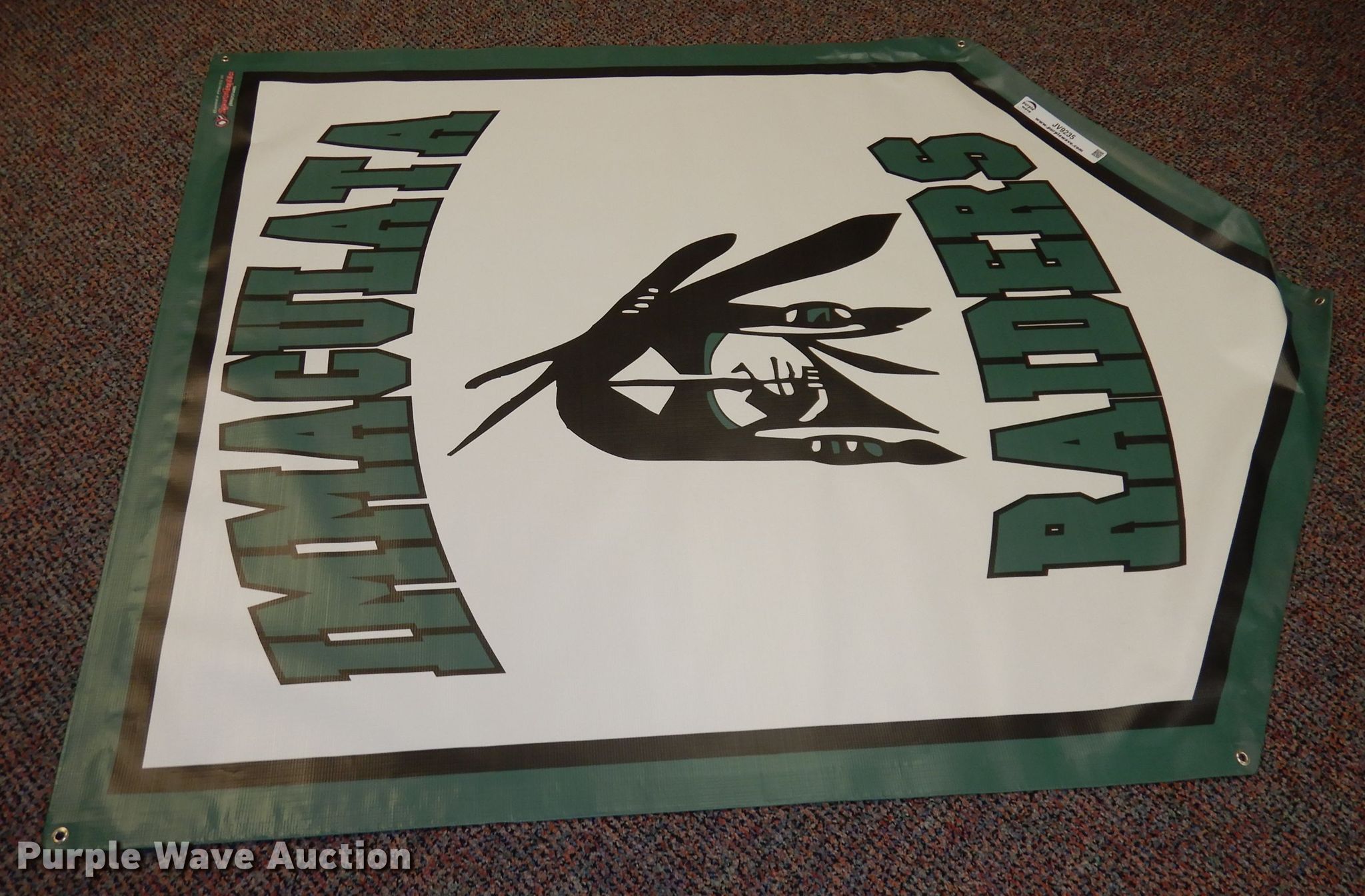Purple Wave is selling a used All Other Household Items in Kansas. This item is a Immaculata Raiders vinyl banner with the following: 45" x 57"