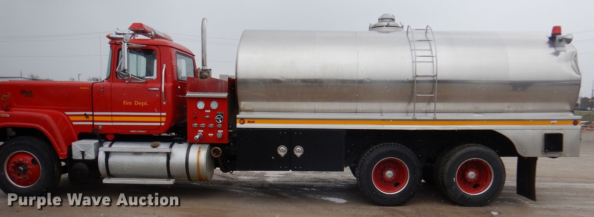Purple Wave is selling a used Fire Truck or Emergency Vehicle in Arkansas. This item is a 1988 Mack RW613 tanker truck with the following: Miles: 546,692 on odometer, VIN: 1M2AY03Y2JM003406