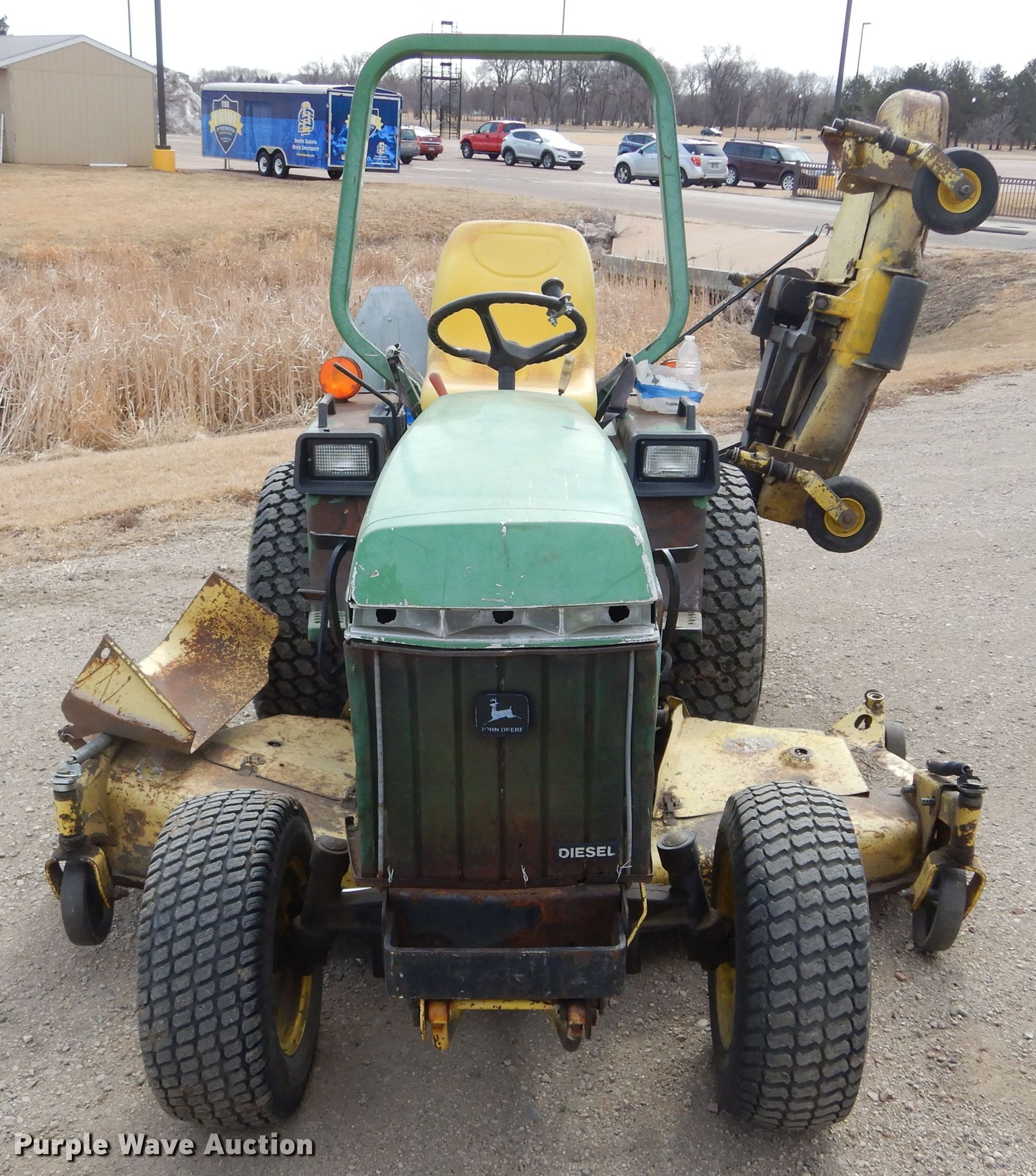 John Deere 855 tractor. Hours: 5,063 on meter, Unit #: D20821. Engine John Deere, Cylinders: 3, Fuel type: Diesel. Transmission Hydrostatic. Features PTO: 540, Three point, Mid mounted mower Width: 72", Rear mower Width: 52". Tires Front: 23x8.50-12, Rear: 33x12.50-15. Notes Three point arms missing. 1525 Stadium Rd. Brookings, SD 57006