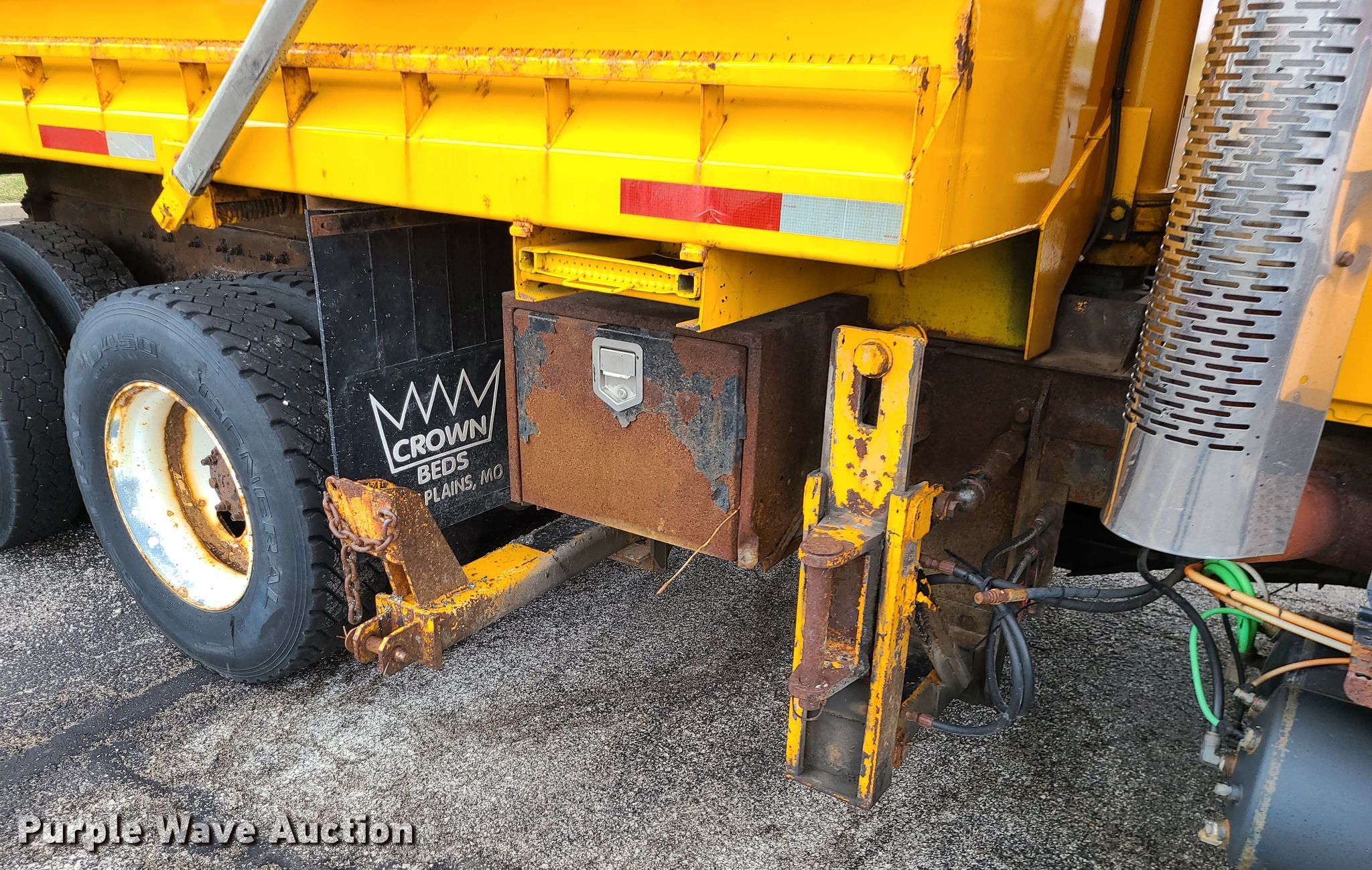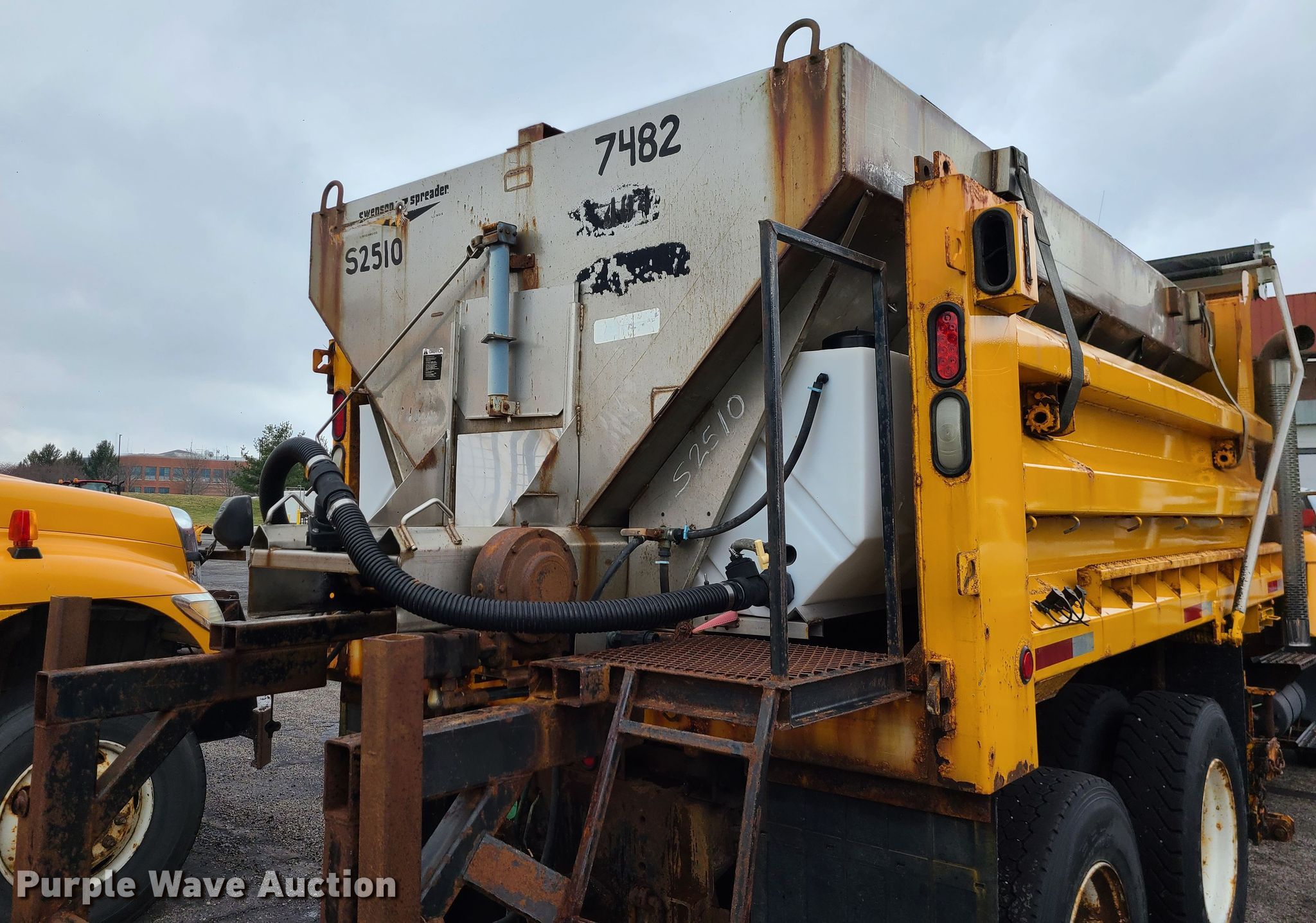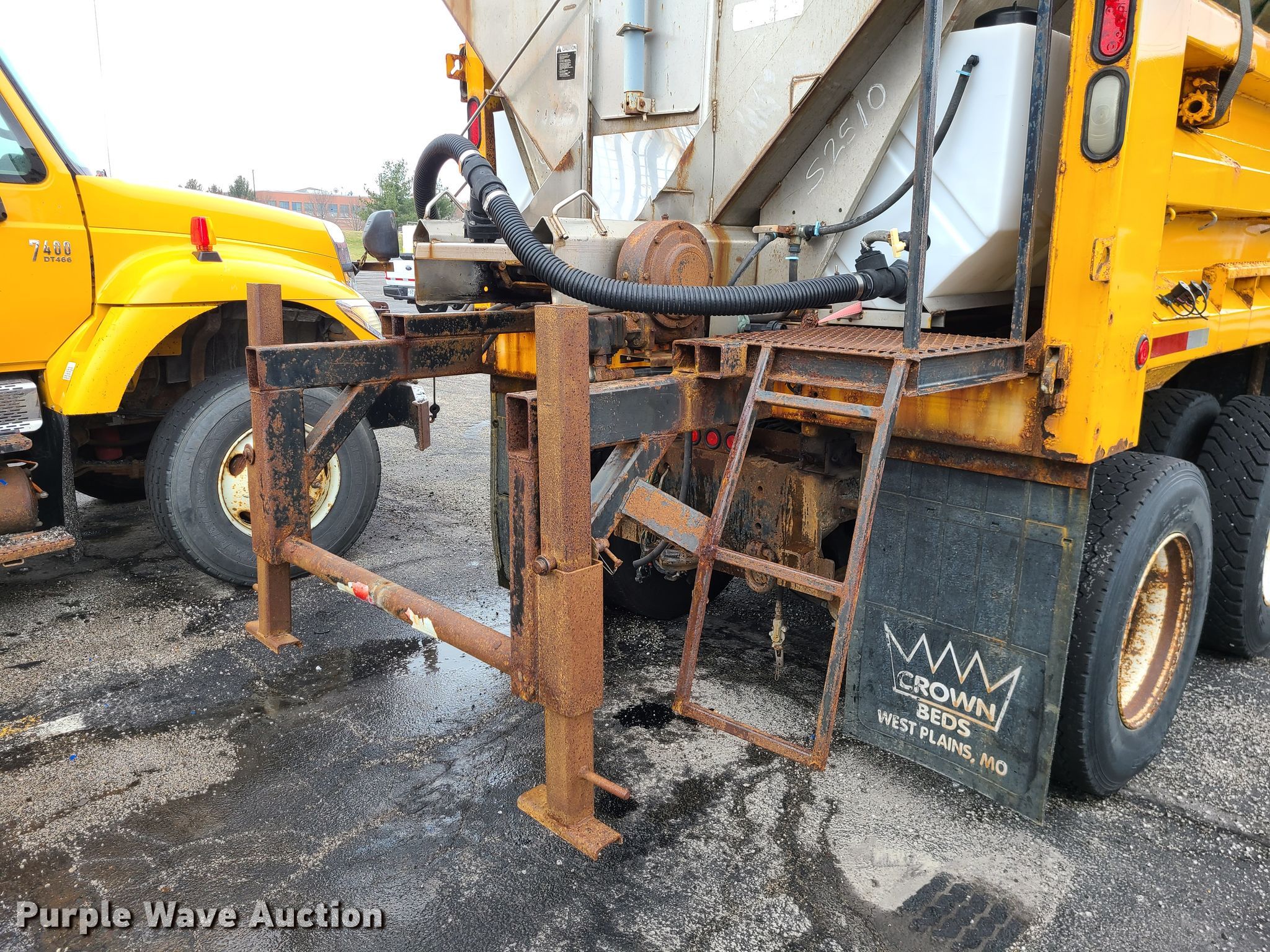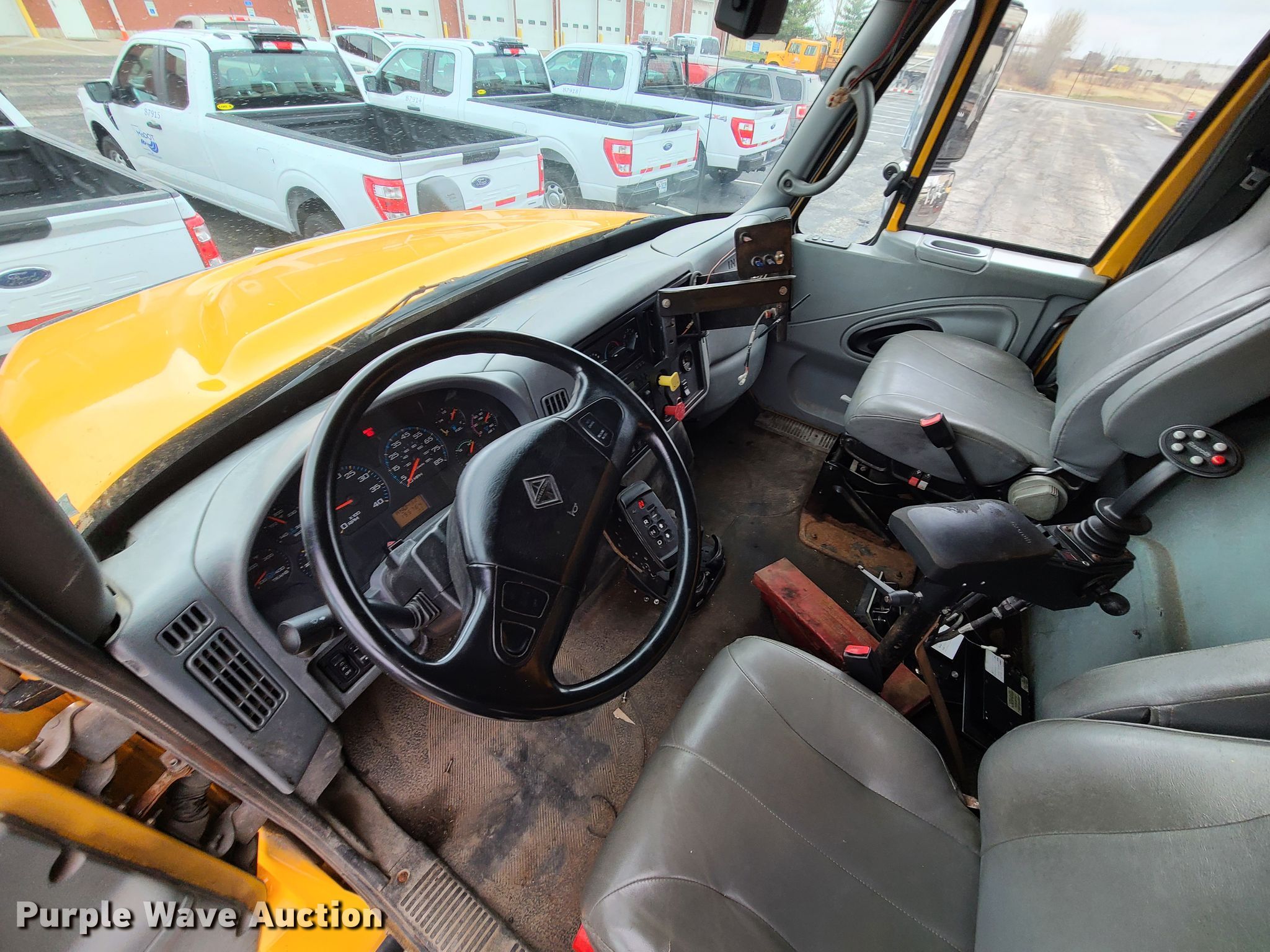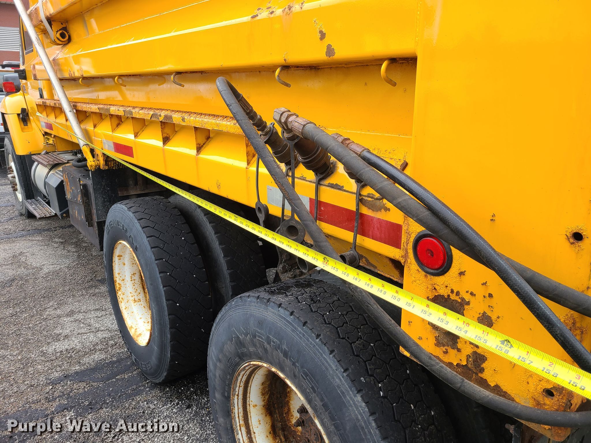 2006 International 7400 dump truck. Miles: 195,764 on odometer, VIN: 1HTWHAZT16J244011. Engine International 570, Displacement: 9.3L, Cylinders: 6, Fuel type: Diesel. Transmission Automatic. Chassis Axles: Tandem, Suspension: Walking beam, Brakes: Air, PTO. Interior AC, Heat, Power windows, Cruise control. Features Dump bed 13' x 96" W, Side height: 32", Bed type: Steel, Roll tarp, Ram: Single , End gate: Air operated, Spreader Swenson spreader. Tires Front: 315/80R22.5, Rear: 11R22.5. Notes End gate missing. Missouri title. Missouri Department of Transportation (MODOT). 600 NE Colbern Rd. Lees Summit, MO 64086