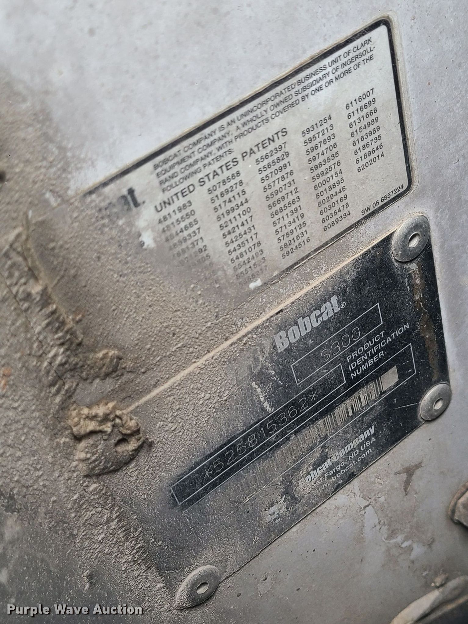 2005 Bobcat S300 skid steer loader. Hours: 2,525 on meter, Serial: 525815362. Engine Cylinders: 4, Fuel type: Diesel. Transmission Hydrostatic, Two speed travel. Operators station Enclosed cab, AC, Heat, Bucket control: Selectable, Pattern changer. Features Auxiliary hydraulics, Quick coupler: Hydraulic, Bucket Width: 74", Bobcat cold planer Width: 24", Bobcat broom Width: 60". Tires Size: 12-16.5. Notes Non-operational blower motor. Missouri Department of Transportation (MODOT). 600 NE Colbern Rd. Lees Summit, MO 64086