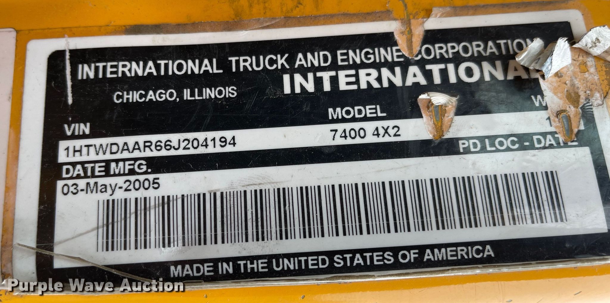 Purple Wave is selling a used Construction Dump Truck in Missouri. This item is a 2006 International 7400 dump truck with the following: Miles: 197,611 on odometer, Hours: 14,832 on meter, VIN: 1HTWDAAR66J204194, Unit #: 7506
