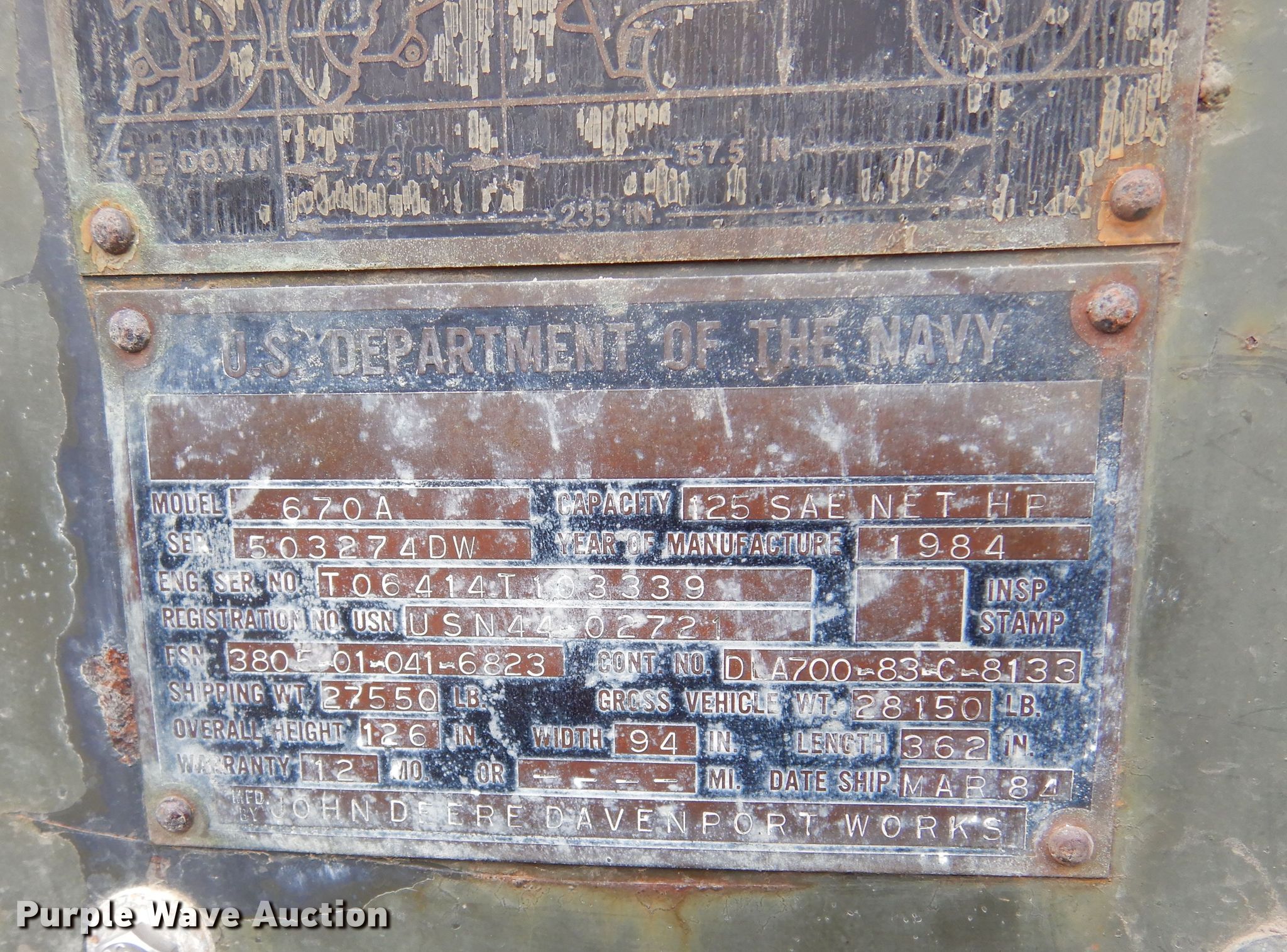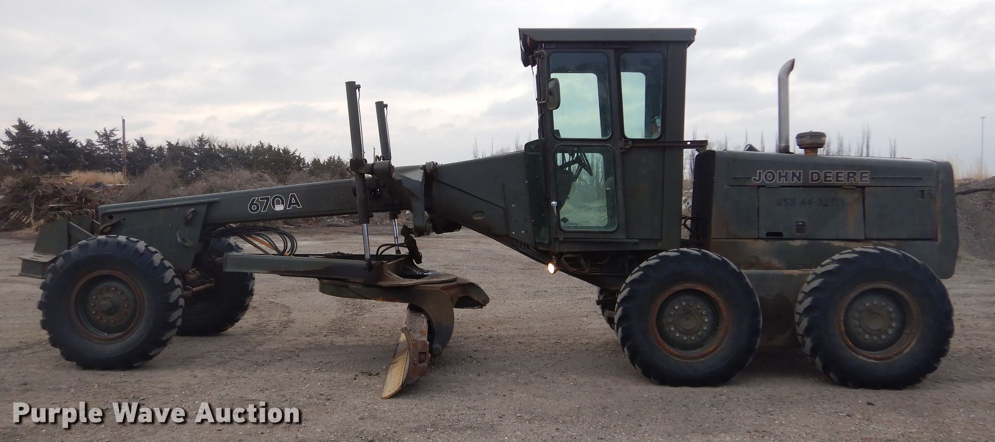 Purple Wave is selling a used Motor Grader in South Dakota. This item is a 1984 John Deere 670A motor grader with the following: Hours: 2,023 on meter, Serial: 503274DW