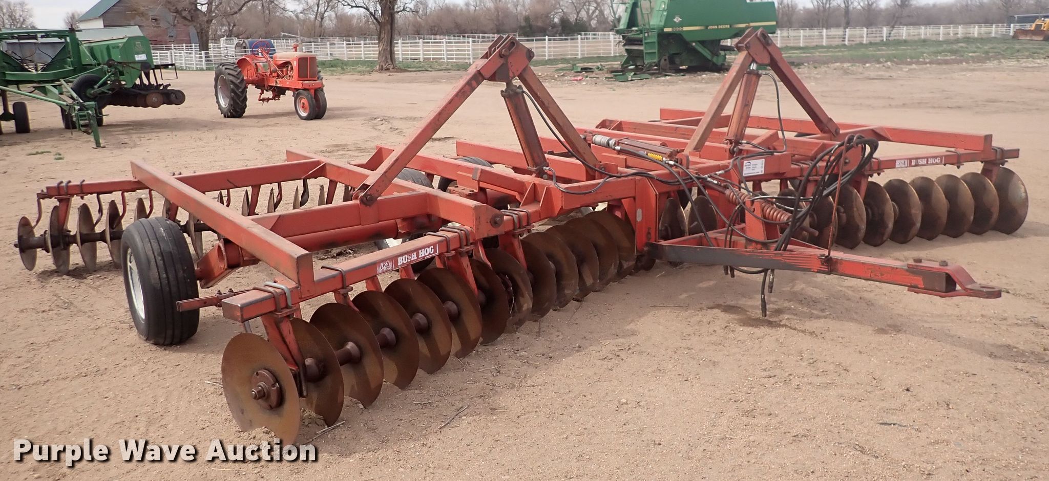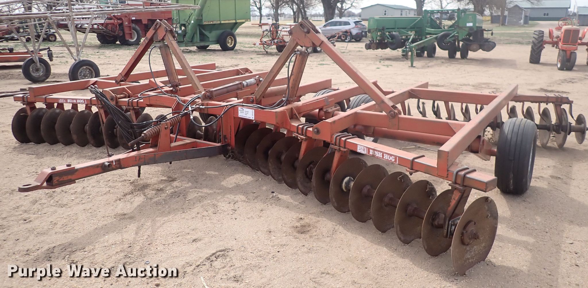 Purple Wave is selling a used Disk in Kansas. This item is a Bush Hog 1440 tandem disk with the following: Overall width: 22', Serial: 5041