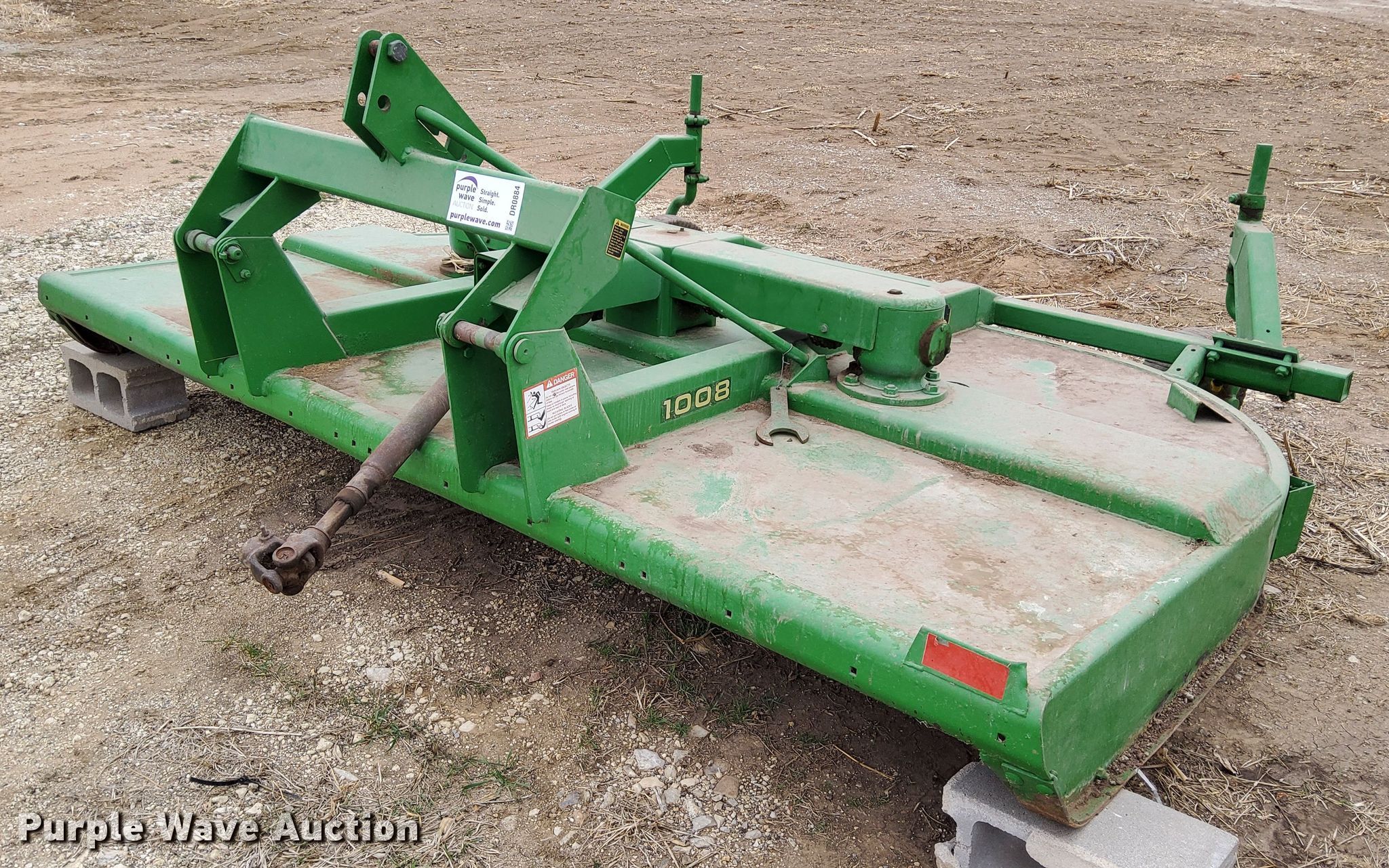 John Deere 1008 rotary mower. Serial: W01008D009660. Features Width: 10' 8", PTO: 1000, Hitch: Three point. Bramhall Dozer Service. Vermillion, KS 66544