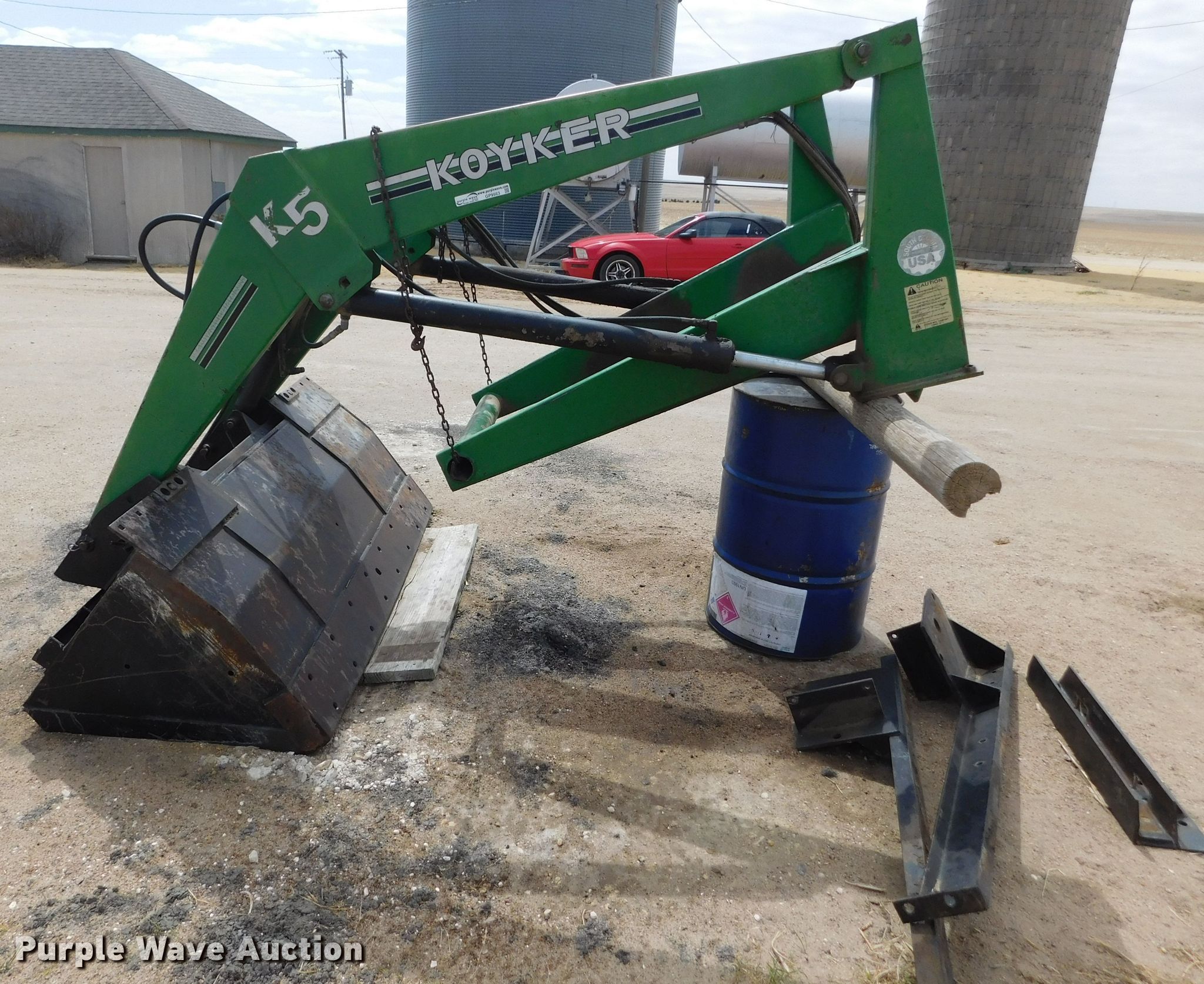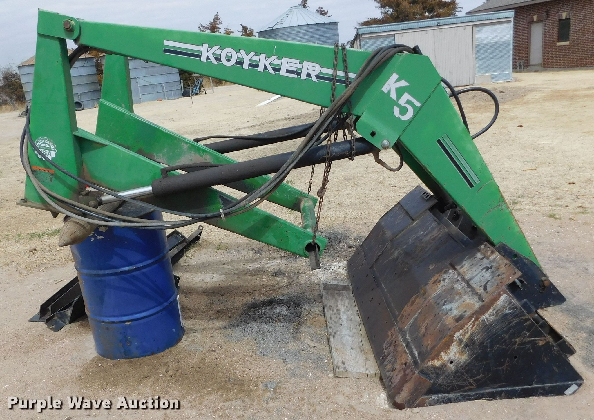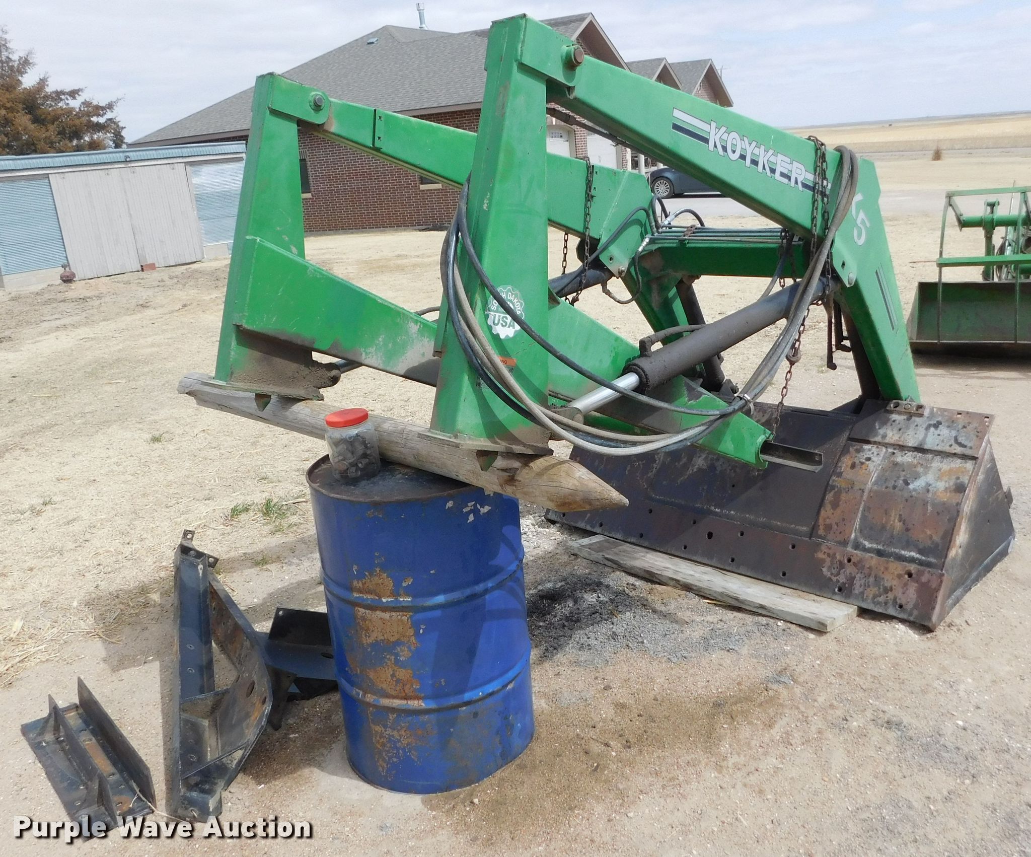 Purple Wave is selling a used Ag Tractor Loader or Attach. in Kansas. This item is a Koyker K5 loader with the following: Bucket, Width: 73", Mounting brackets, Fits John Deere 30, 40, and 50 series tractors