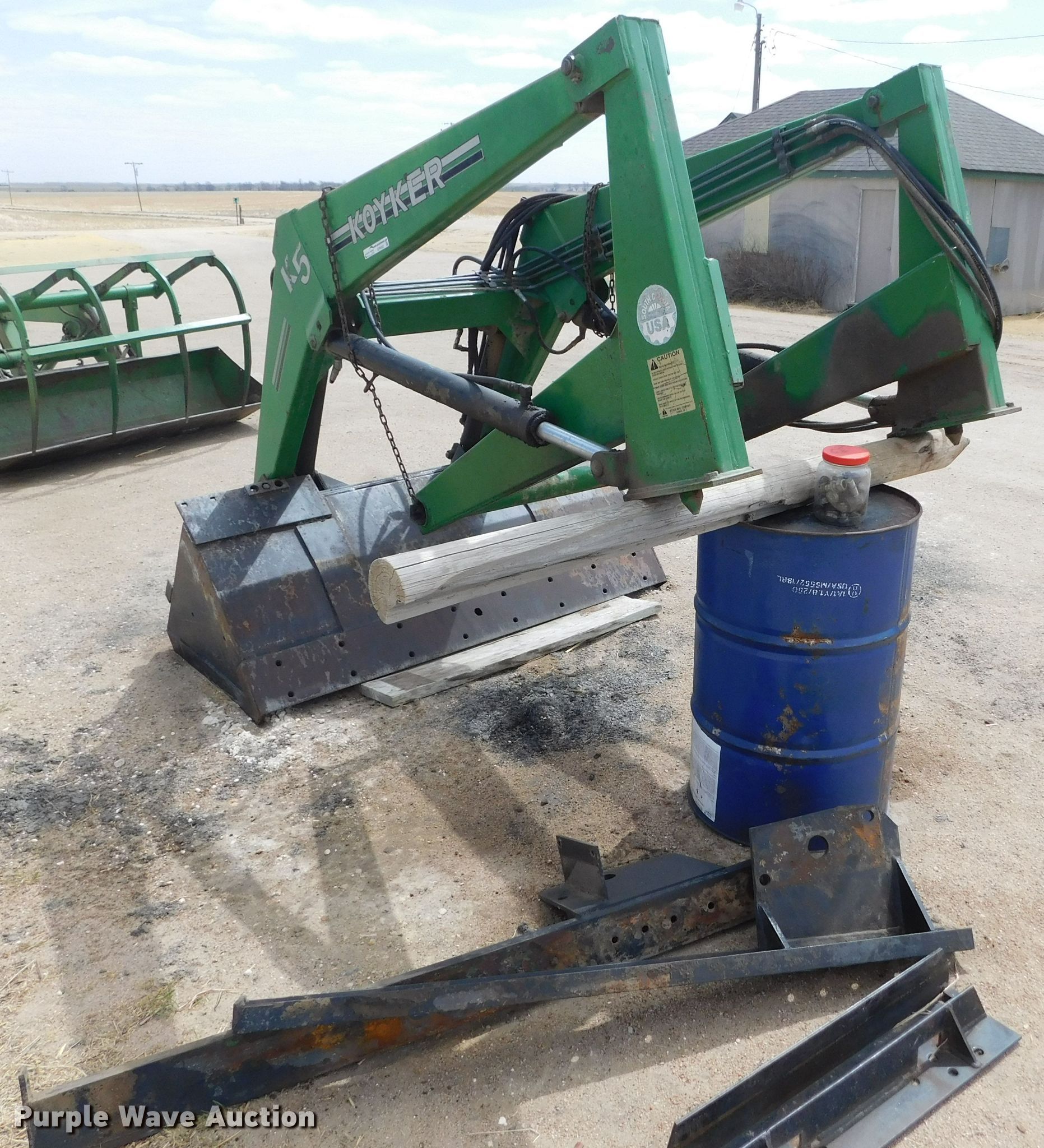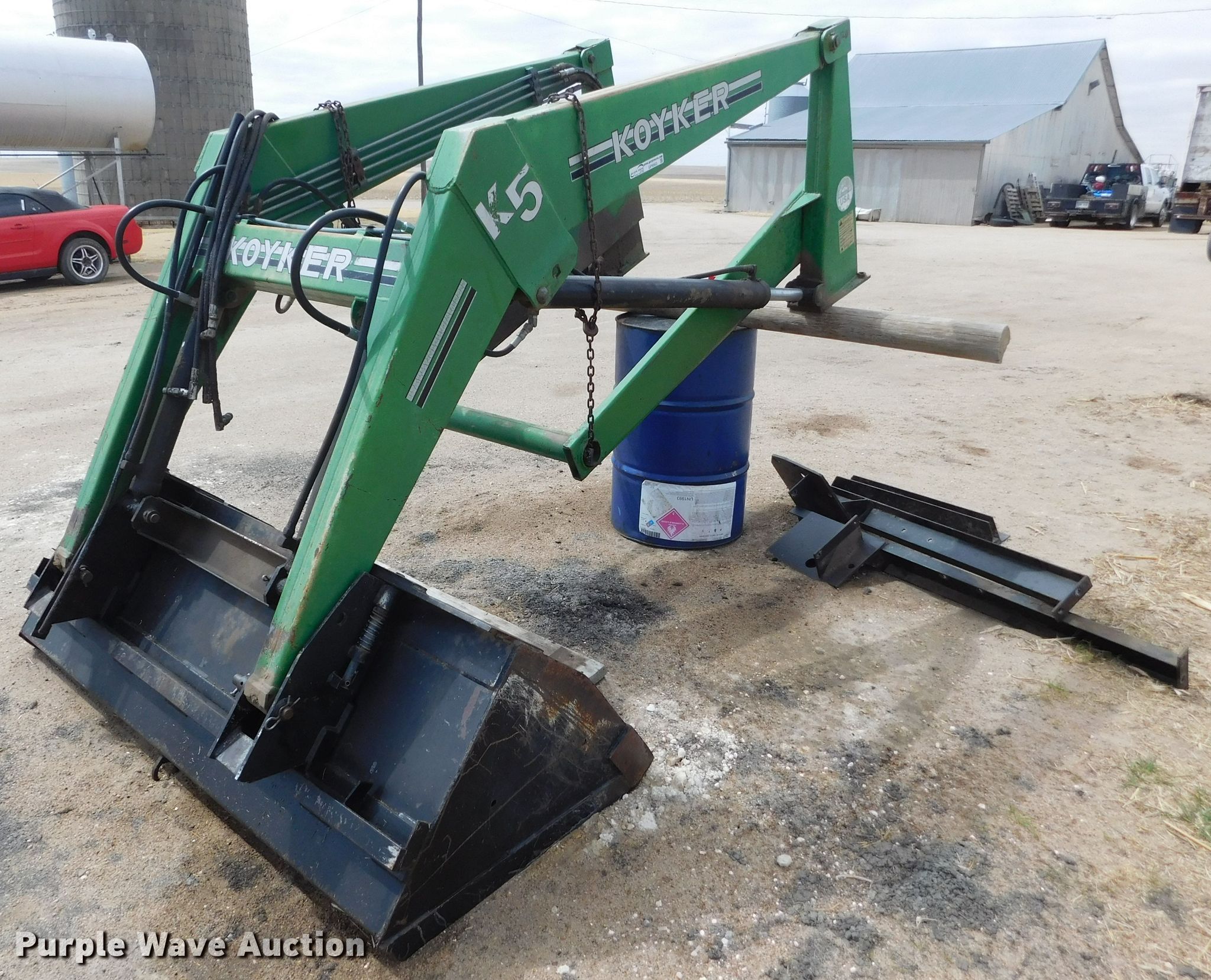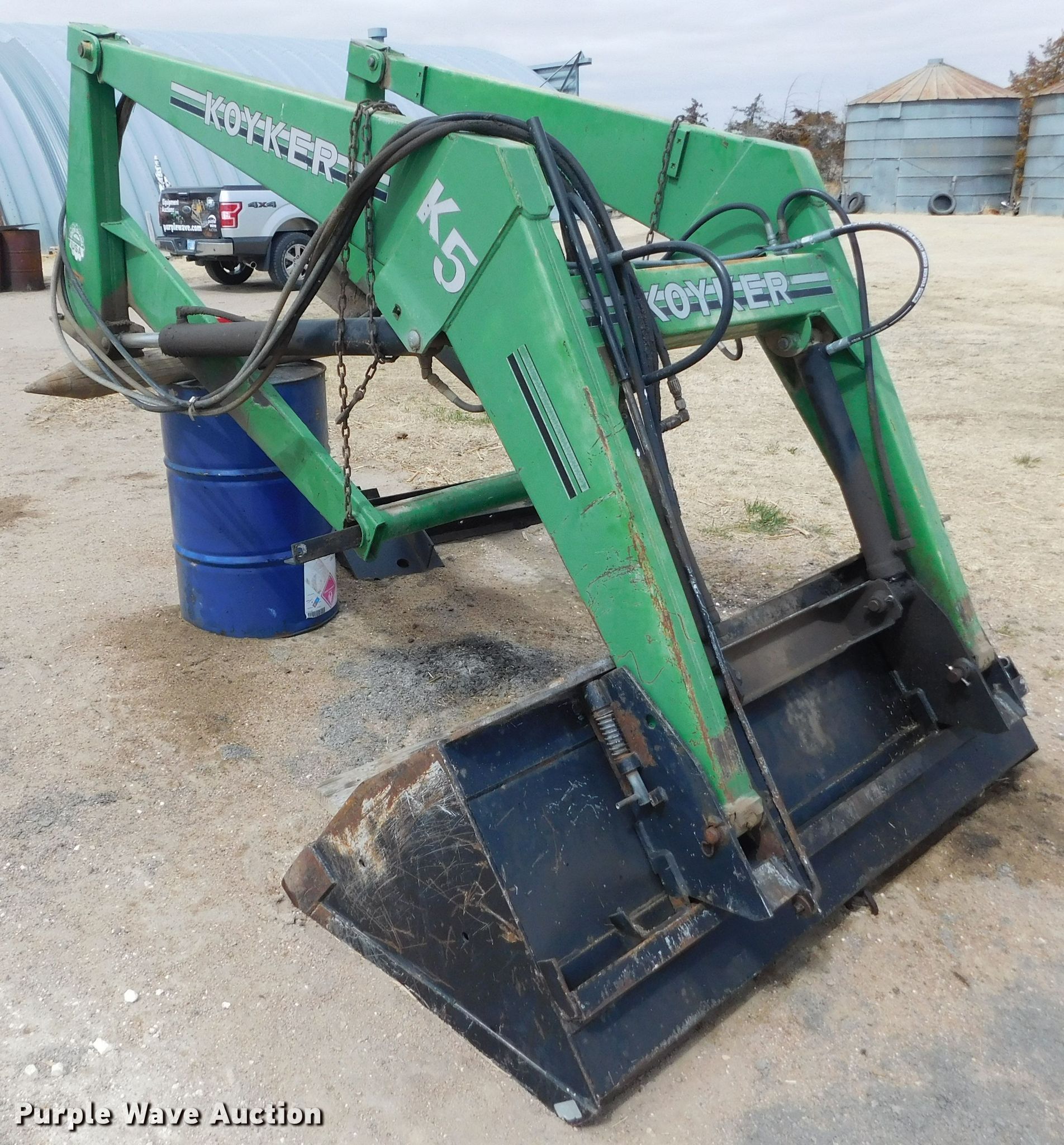 Purple Wave is selling a used Ag Tractor Loader or Attach. in Kansas. This item is a Koyker K5 loader with the following: Bucket, Width: 73", Mounting brackets, Fits John Deere 30, 40, and 50 series tractors