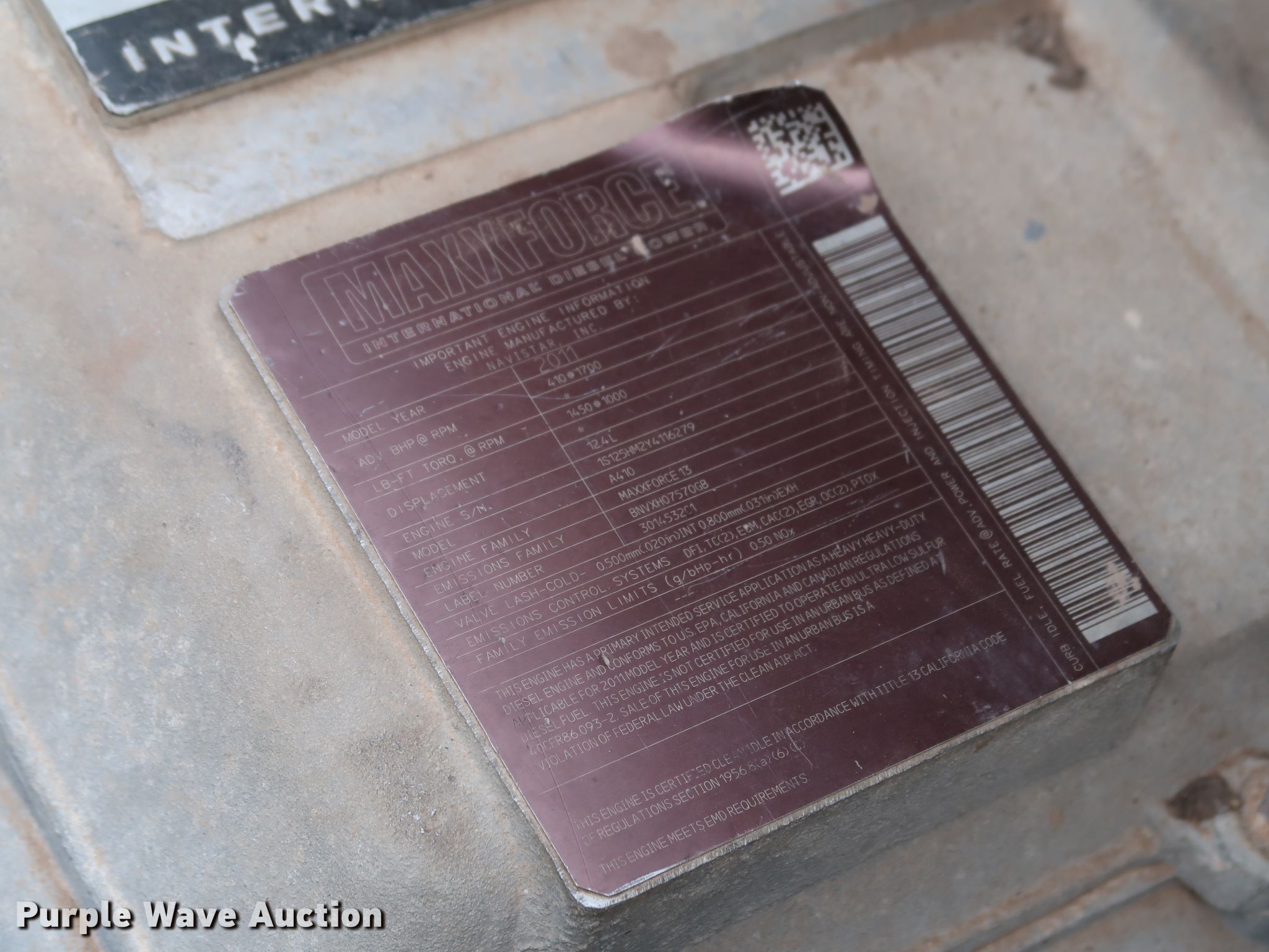 2012 International TranStar 8600 semi truck. Miles: 325,827 on odometer, Hours: 7,994 on meter, VIN: 1HSHXSJR2CJ597942, Unit #: HT7942. Engine International MaxxForce 13, Serial: 1S125HM2Y4116279, Displacement: 13.0L, Cylinders: 6, Fuel type: Diesel, HP: 410. Transmission Eaton Fuller, Manual, Speed: 10. Chassis Axles: Tandem, Differential lock: Inter-axle, Suspension: Air, Brakes: Air, GVWR: 52,000 lbs FAWR: 12,000 lbs, IAWR: 20,000 lbs, RAWR: 20,000 lbs, Wheelbase: 168". Interior AC, Heat, Cruise control, Air ride cab. Features Deck plate: Aluminum, Fifth wheel type: Air operated, Sliding, Fuel tank: Dual. Tires Size: 295/75R22.5. Notes Dash warning indicator: Check engine, ABS, Traction Control. Oklahoma title. Title distribution may be delayed up to 30 days from verification of funds. B & H Construction, LLC. 301 James Dean Dr. Norman, OK 73072