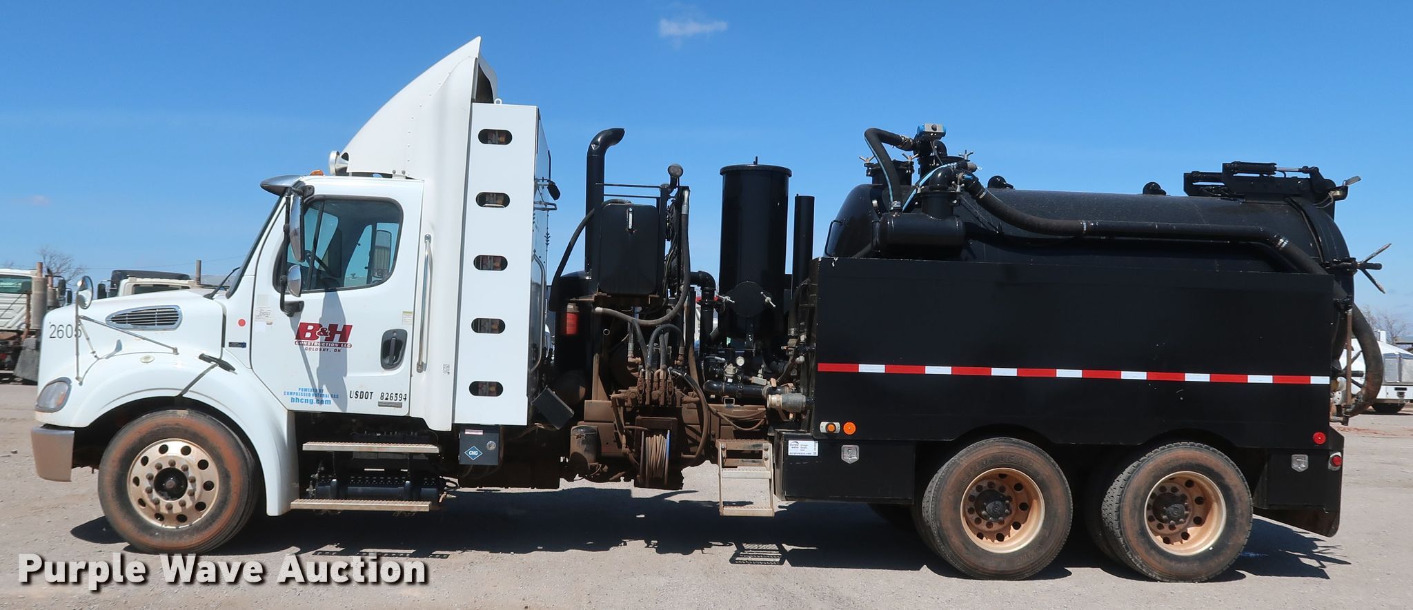 Purple Wave is selling a used Vacuum Truck in Oklahoma. This item is a 2011 Freightliner Business Class M2 112 vacuum truck with the following: Miles: 115,542 on odometer, Hours: 5,686 on meter, VIN: 1FUJC5DX9BHA96467, Unit #: 2605