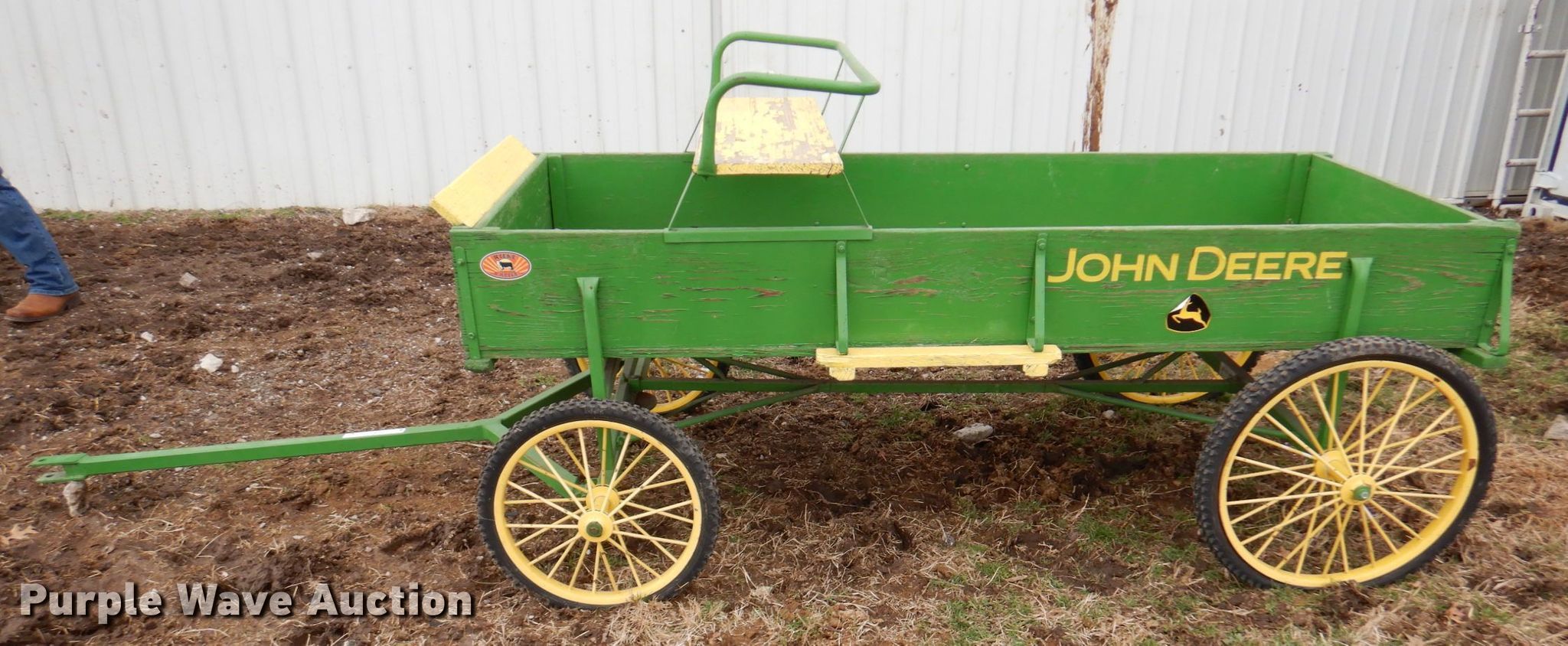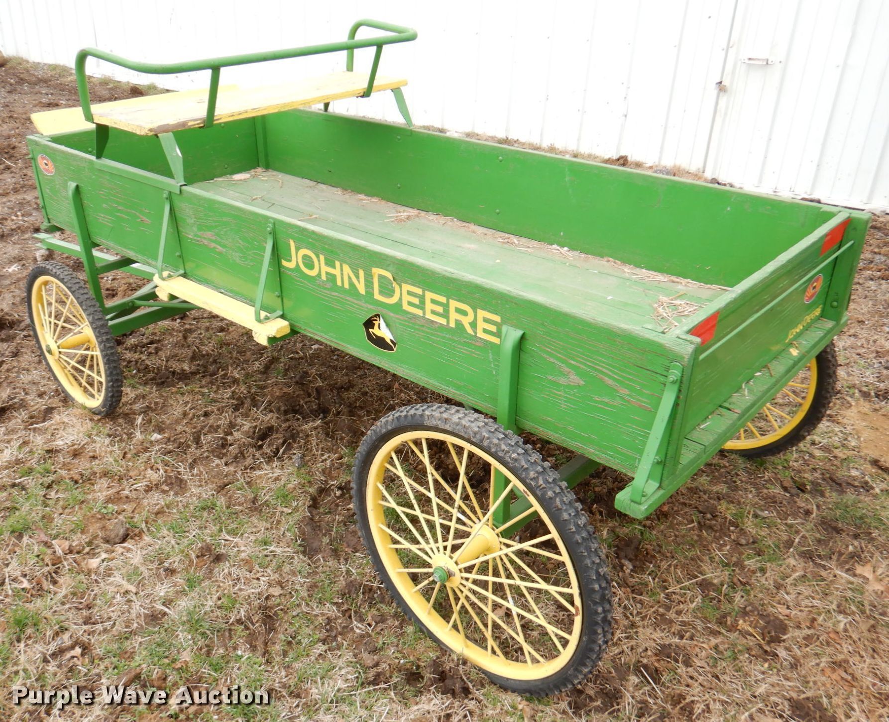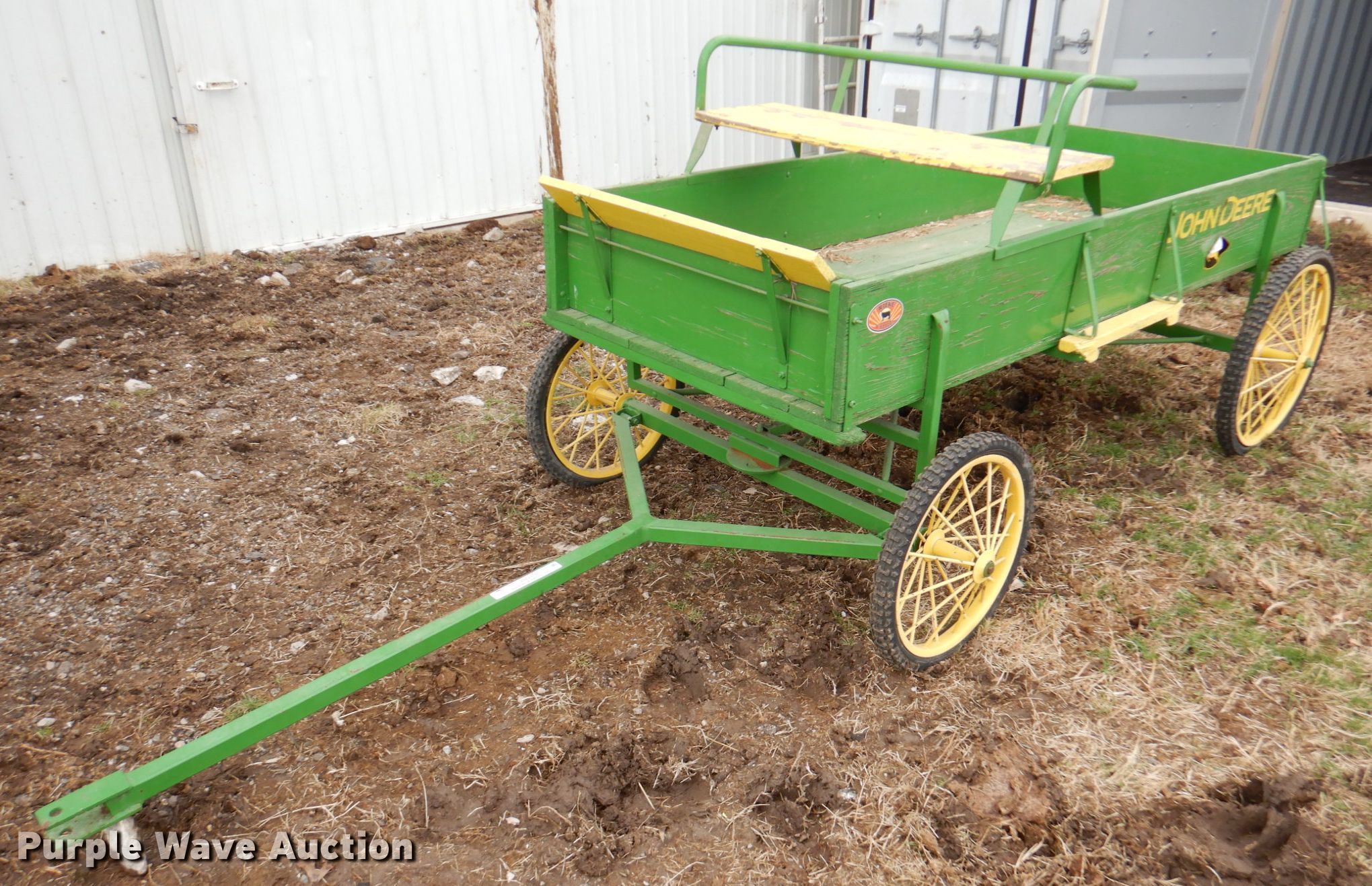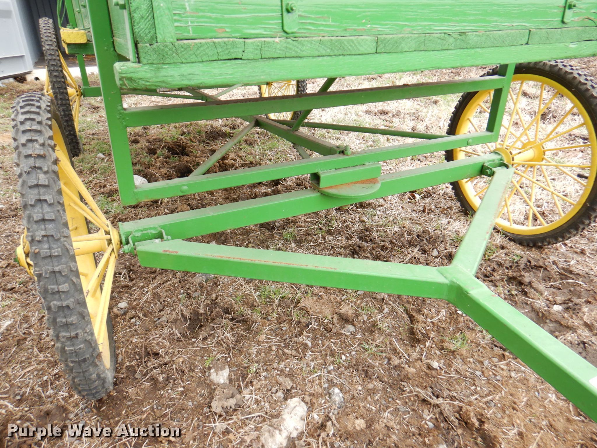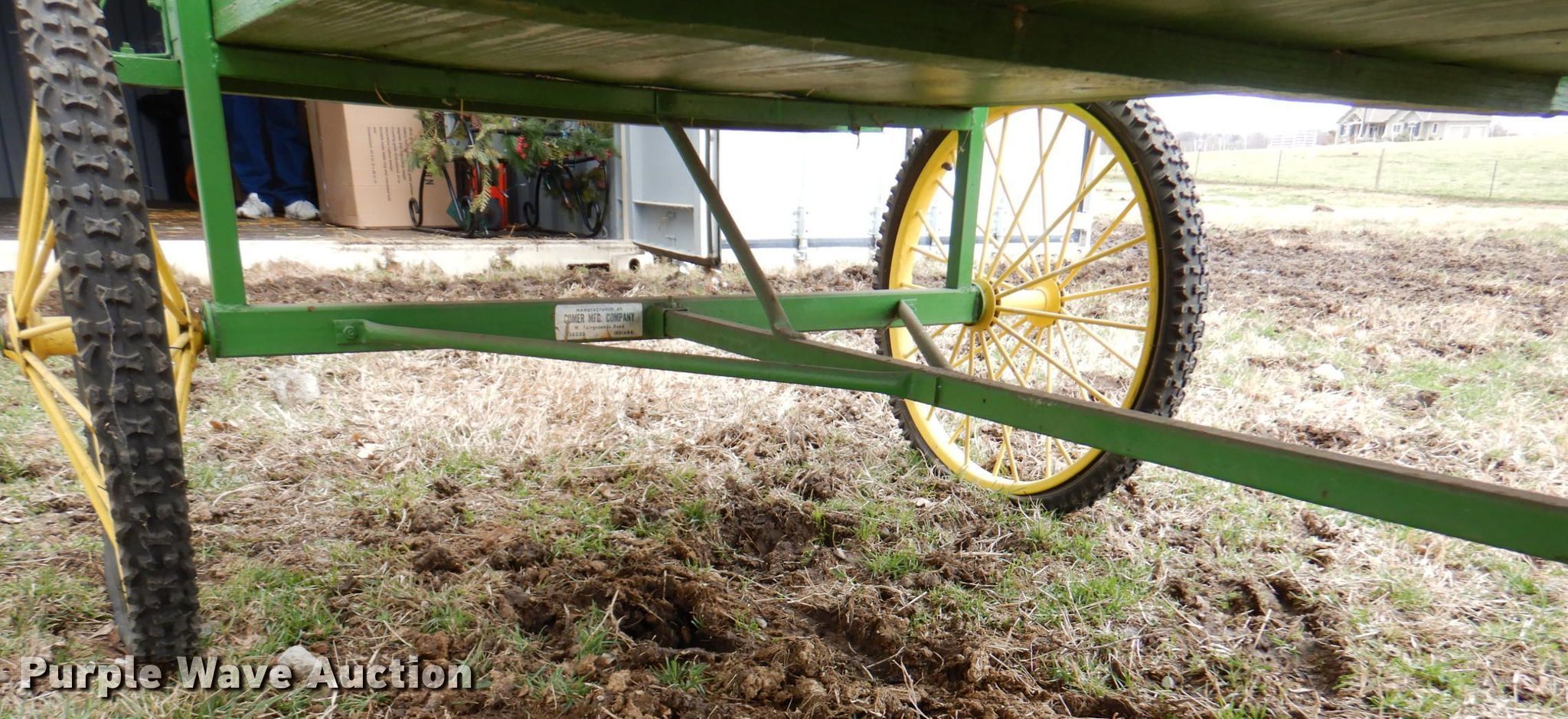 Purple Wave is selling a used Livestock Equip. in Kansas. This item is a Comer Mfg horse carriage with the following: Box: 32" x 80", Buck board seat, Hitch: Pin, Tires, Front: 20x2.00, Rear: 24x2.10