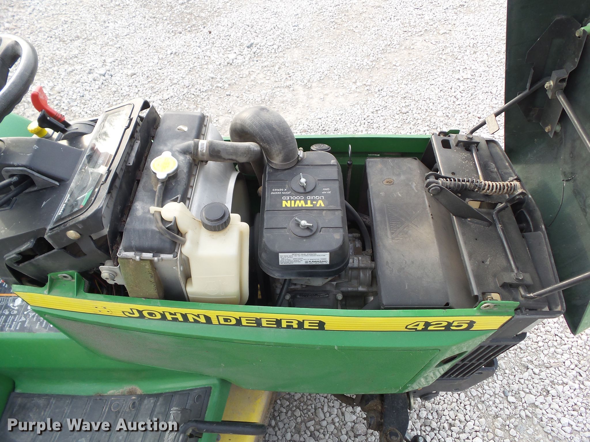 Purple Wave is selling a used Lawn Mower in Iowa. This item is a John Deere 425 lawn mower with the following: Hours: 1,613 on meter, Cutting width: 54", Serial: M00425A051669