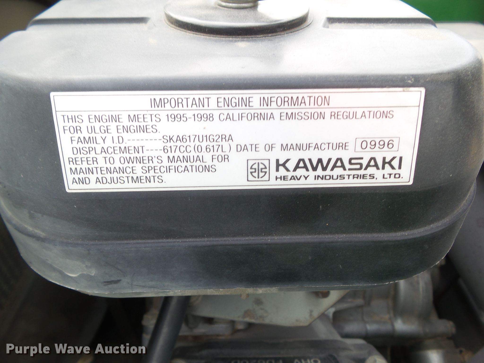 John Deere 425 lawn mower. Hours: 1,613 on meter, Cutting width: 54", Serial: M00425A051669. Engine Kawasaki, Displacement: 617 cc, Cylinders: 2, Fuel type: Gas, HP: 20. Transmission Hydrostatic. Tires Front: 16x7.50-8, Rear: 23x10.50-12. Midwest Services. 1001 E Court Ave. Winterset, IA 50273