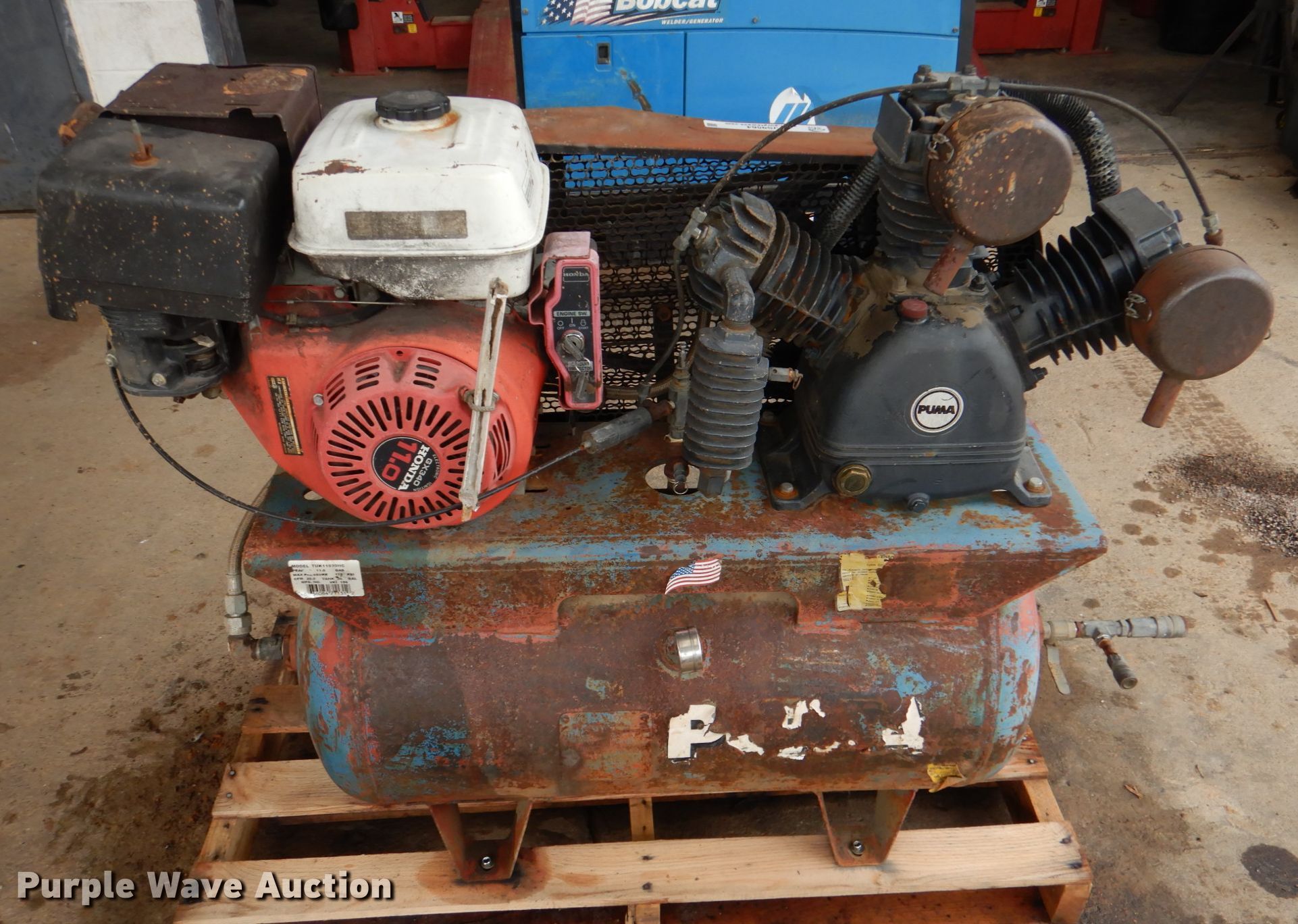 Air compressor. Engine. Honda GX340, Cylinders: 1, Fuel type: Gas, HP: 11. Features Air compressor Puma, CFM: 20, PSI: 175, Tank capacity: 30 gallons. 1033 N 4250 Rd. Hugo, OK 74743