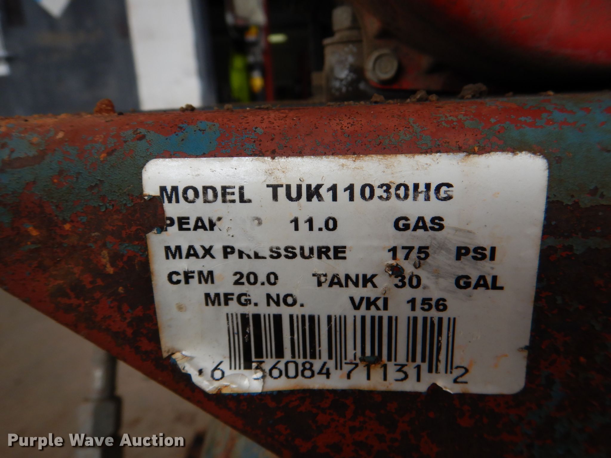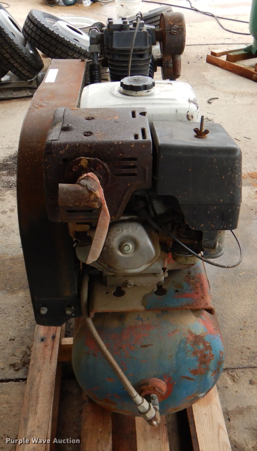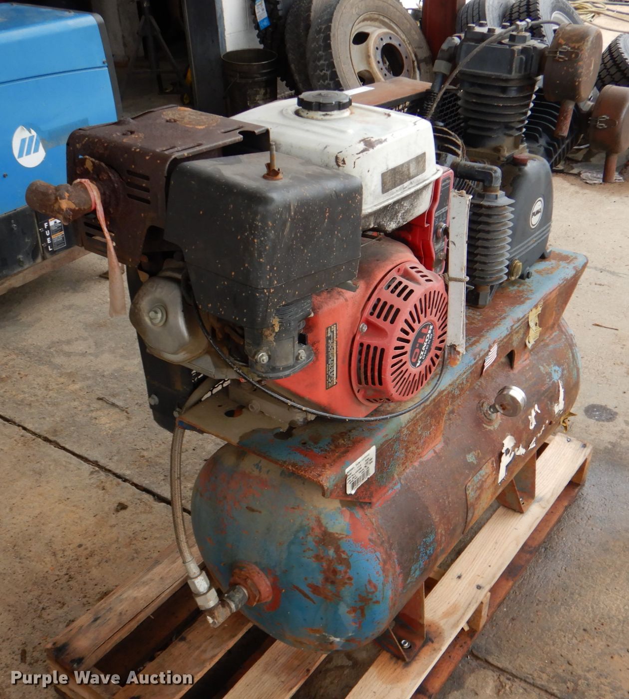 Purple Wave is selling a used Air Compressor in Oklahoma. This item is a Air compressor with the following: Honda GX340, Cylinders: 1, Fuel type: Gas, HP: 11